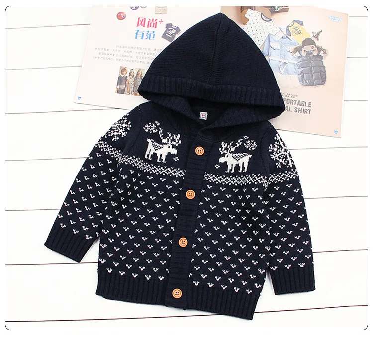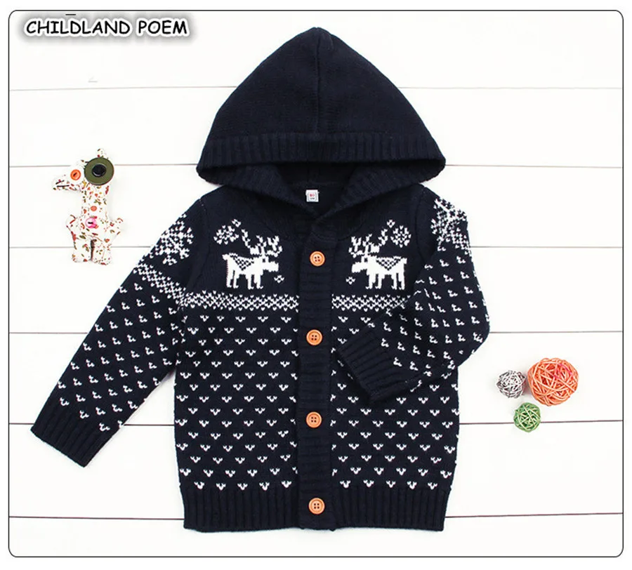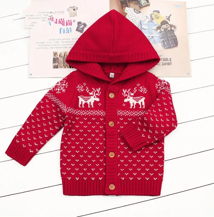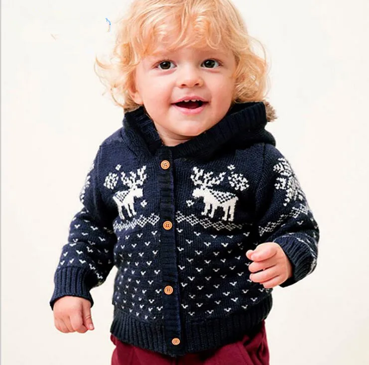 Knitted Boys Sweater Autumn Winter Christmas Infant Toddler Girls Cardigan Hooded Baby Jacket for Boy Deer Knitting Baby Clothes