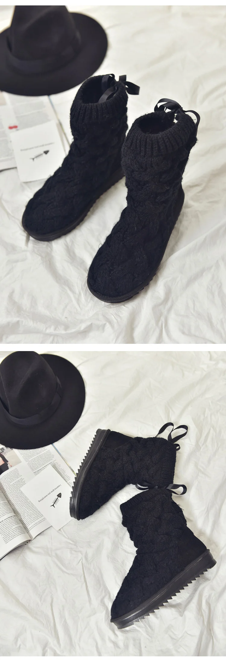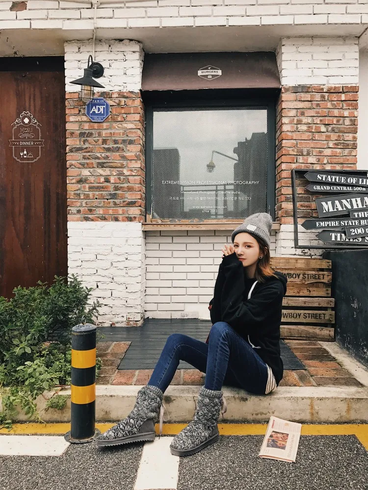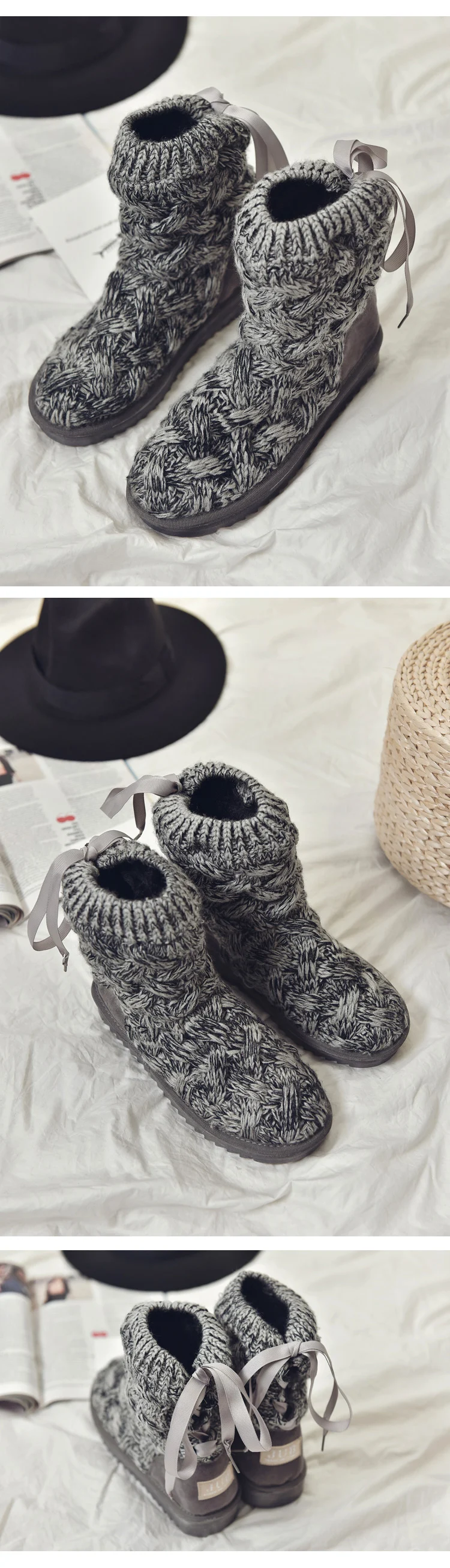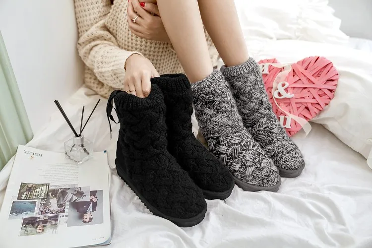Knitted winter women boots fashion warm snow boots winter ankle boots for women shoes botas femininas de inverno
