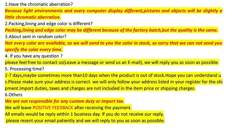 • If you did not receive the product within the guaranteed time( 45 days not including 2-5 day processing) you can request a refund or a reshipment.