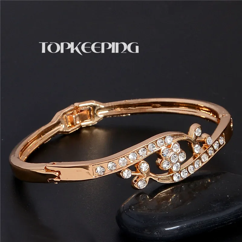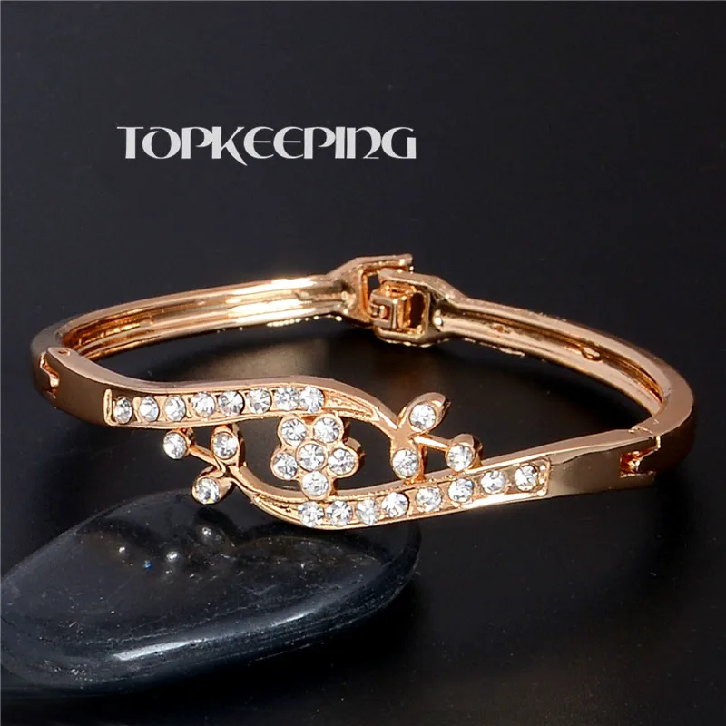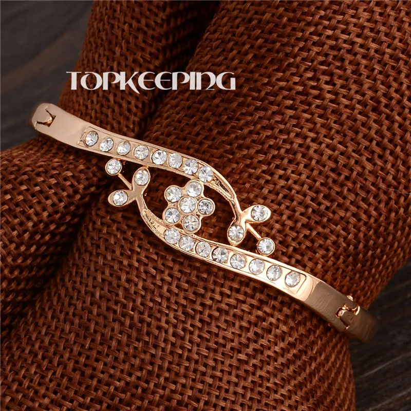 Korea Flower Brazalete Pulseras Fashion Sweet Hollow Out Exquisite Crystal Rhinestone Bangles Bracelet for Women Wholesale