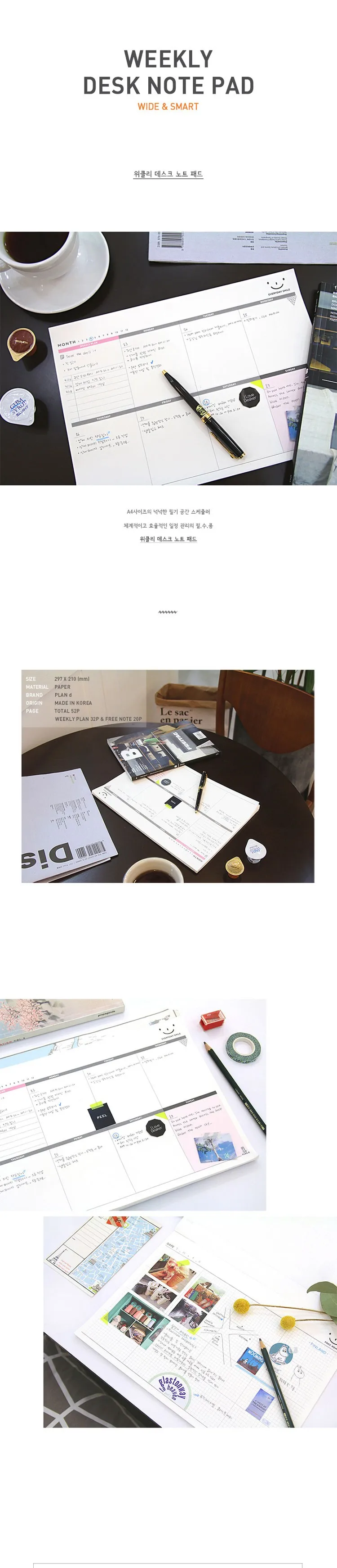 Korea Stationery Office Desk Week Plan. Can tear working memo. A4 large schedule this. Notepad