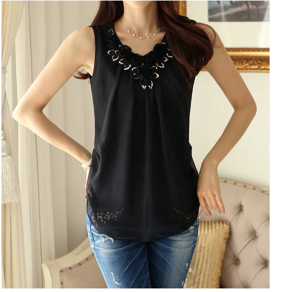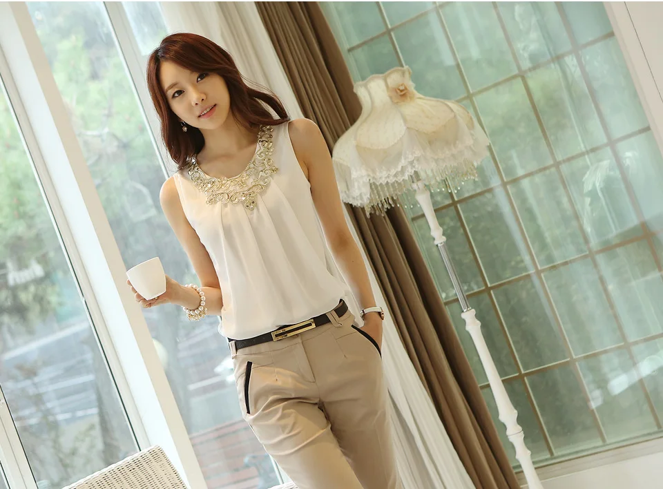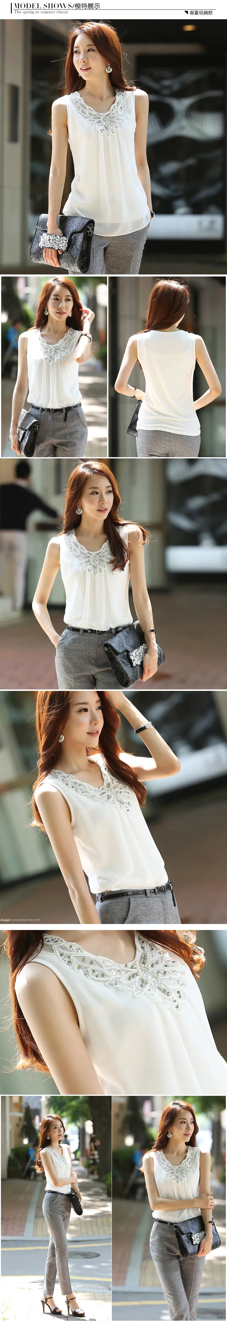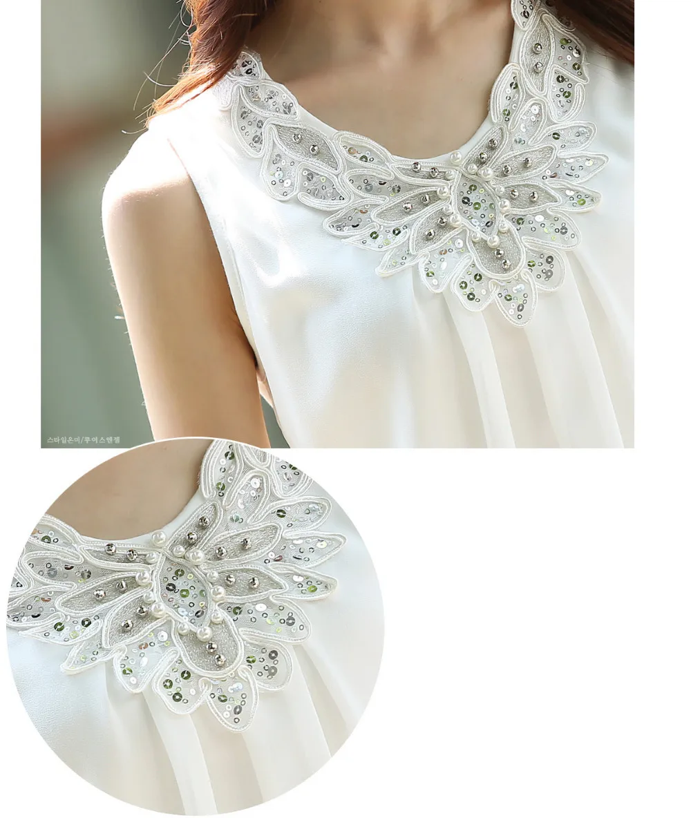 Korean Fashion Clothing New Women Chiffon Blouse Fold Sleeveless White Shirt Office Blouse For Work Plus Size S-6XL