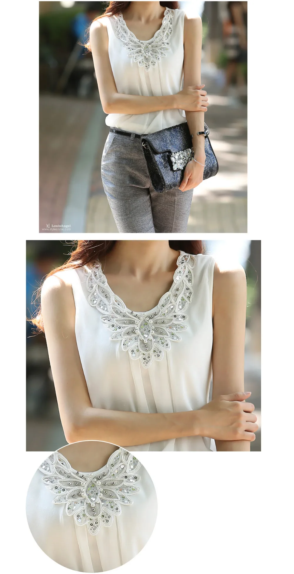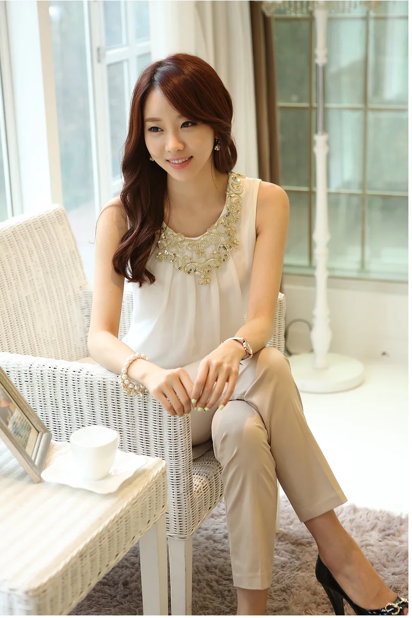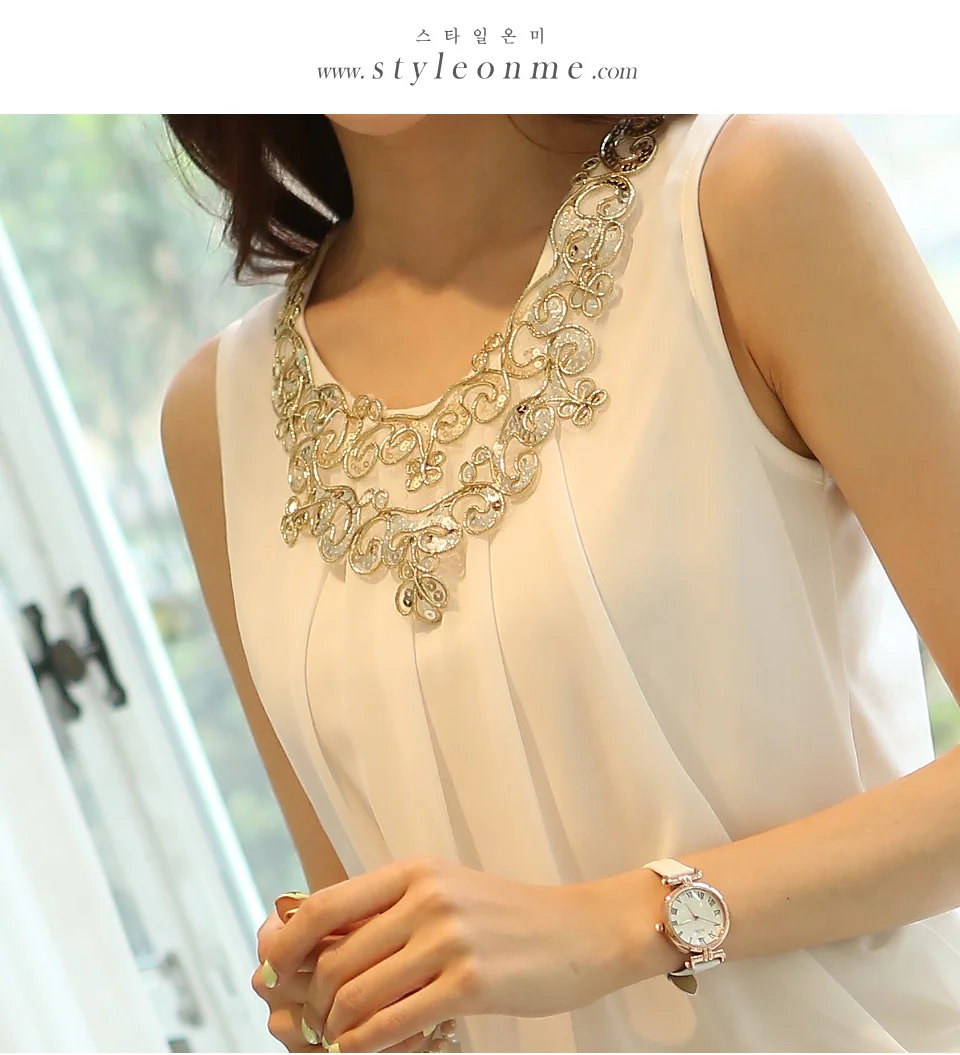 Korean Fashion Clothing New Women Chiffon Blouse Fold Sleeveless White Shirt Office Blouse For Work Plus Size S-6XL