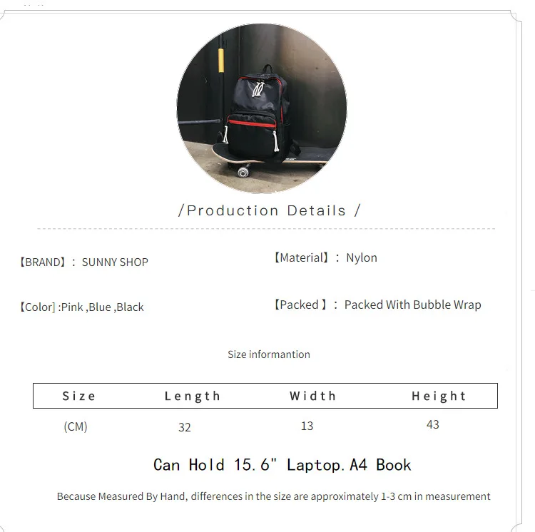Korean Fashion Nylon Bagpack Women Men College School Backpack Fit For 15.6″ Laptop A4 Book Bag Big Travel Backpack Rucksack