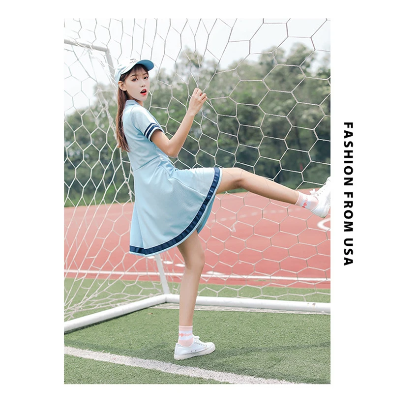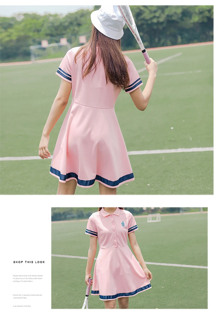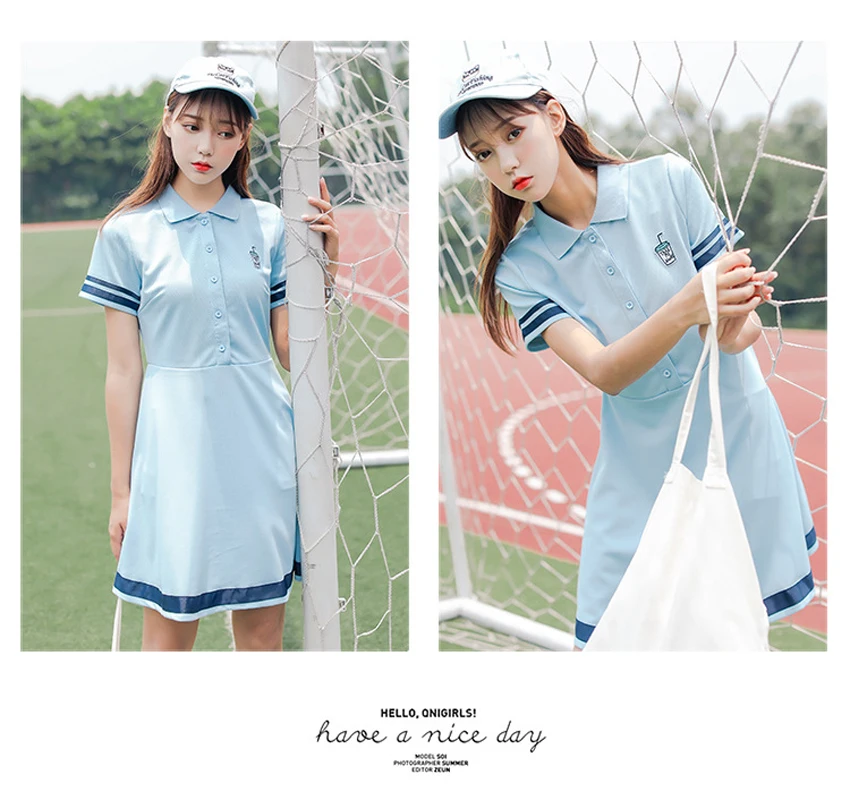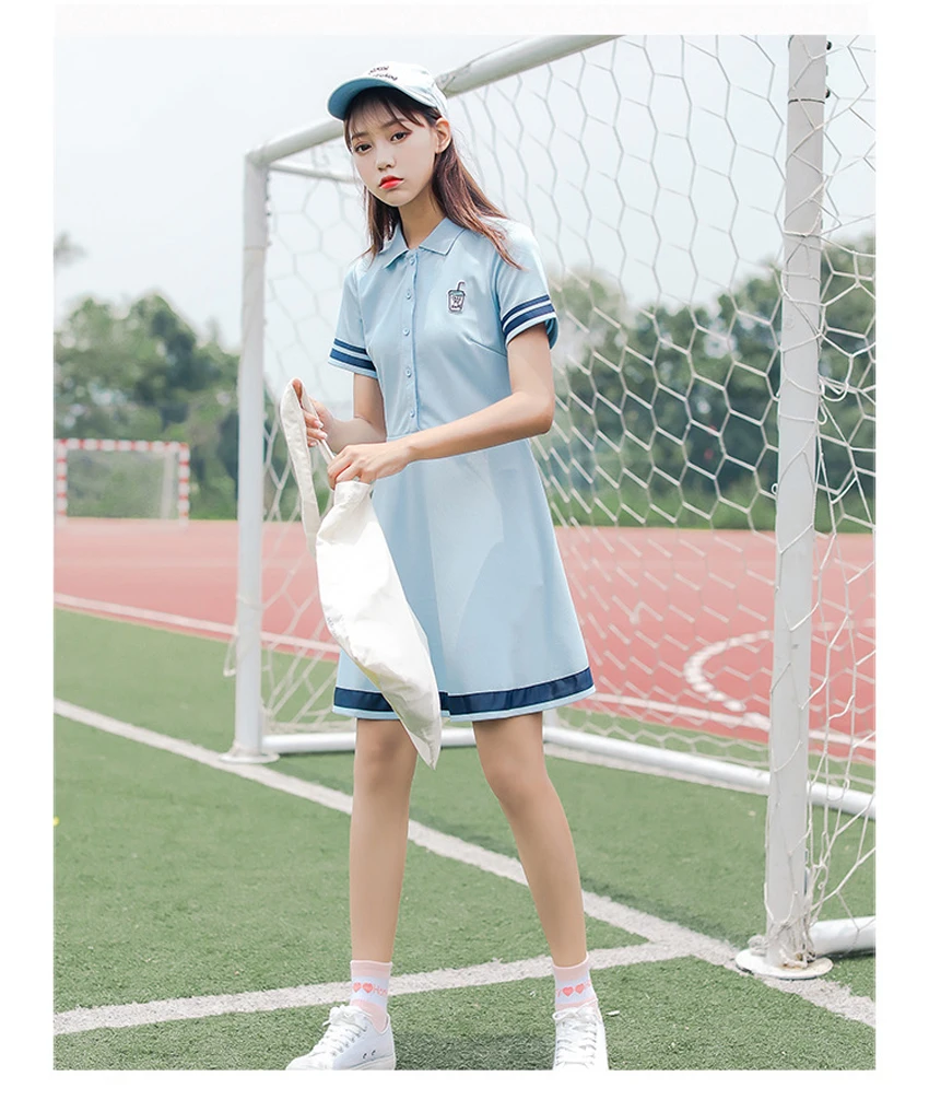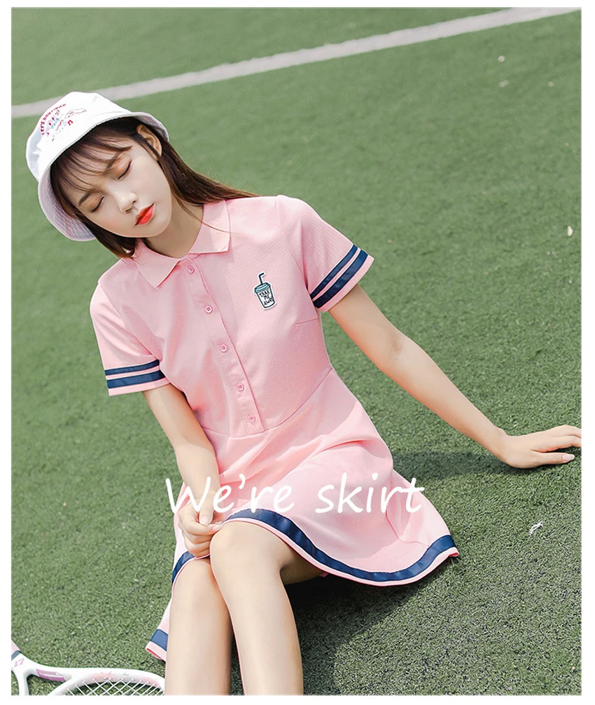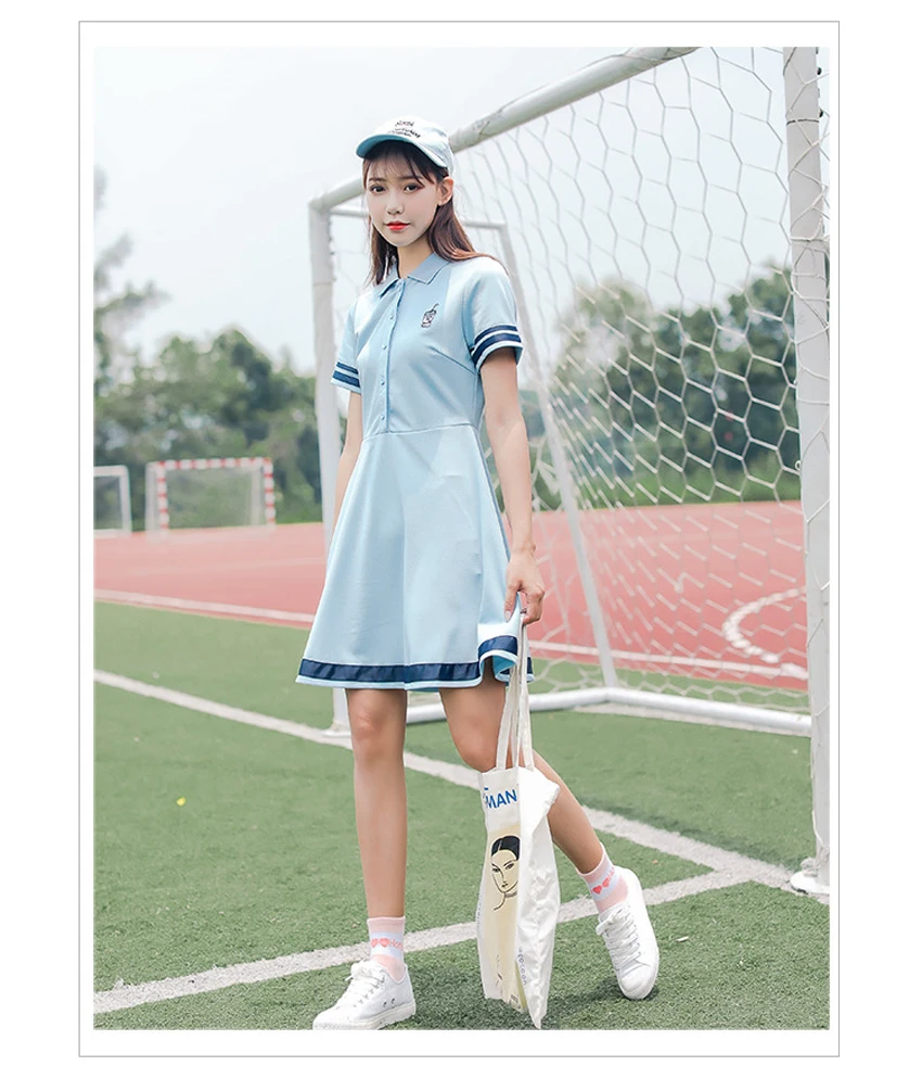 Korean Sports Dress Button Collar Cotton Striped Badminton Polo T-Shirt Female Summer Girls High School Student Tennis Dresses