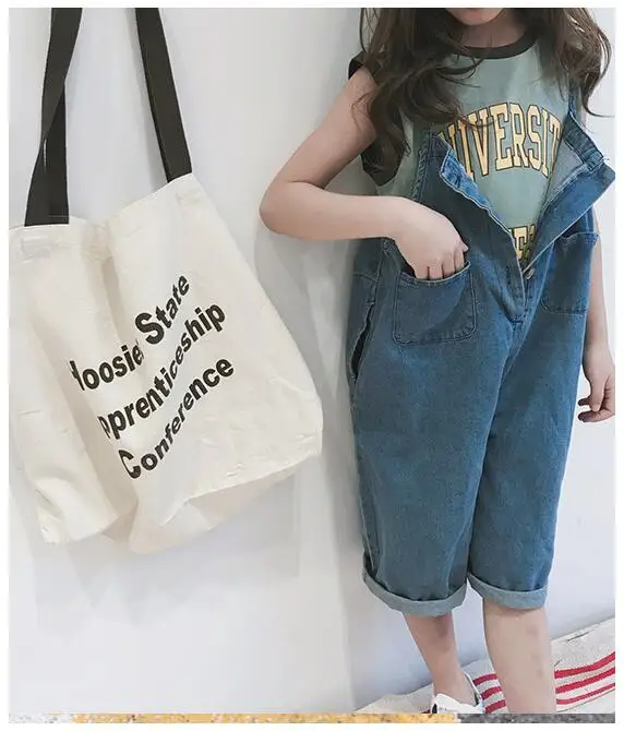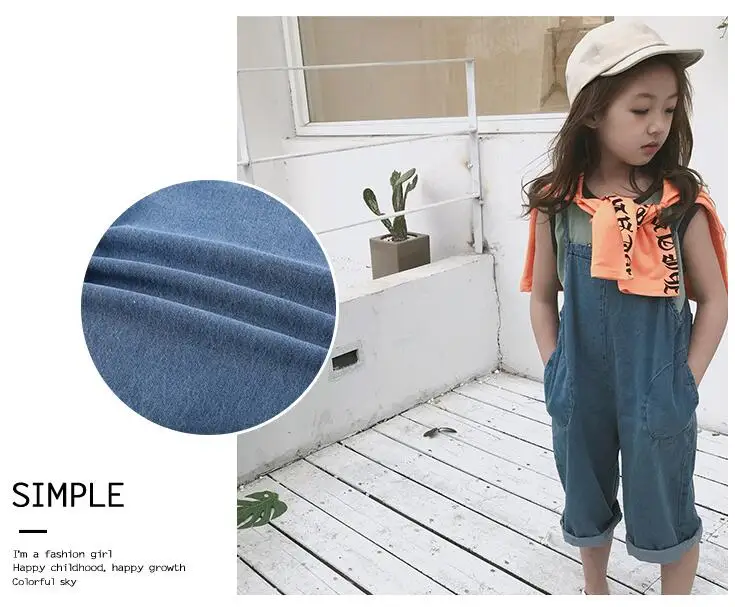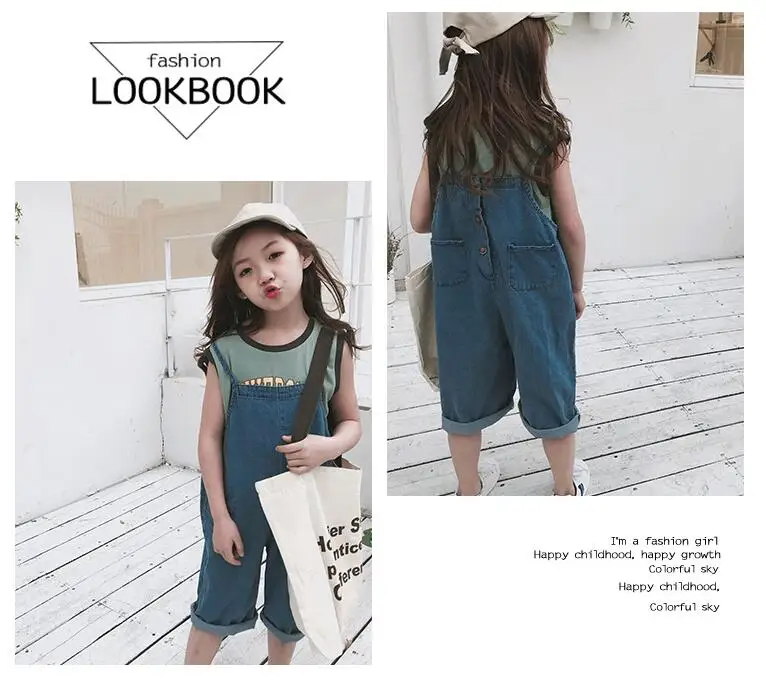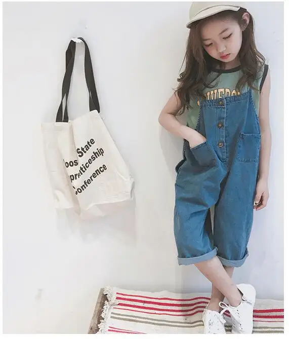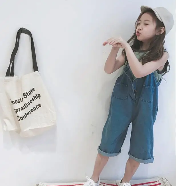 Korean styel Summer teenage girls thin loose denim Jumpsuits fashion children pro and con wear overalls suspender trousers 4-10Y