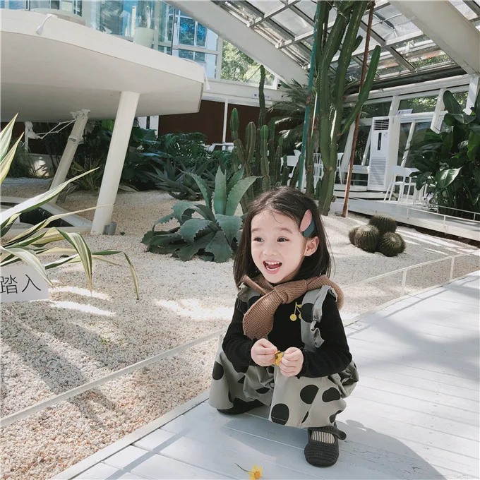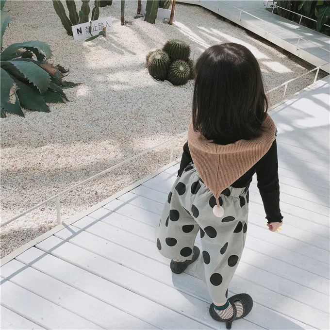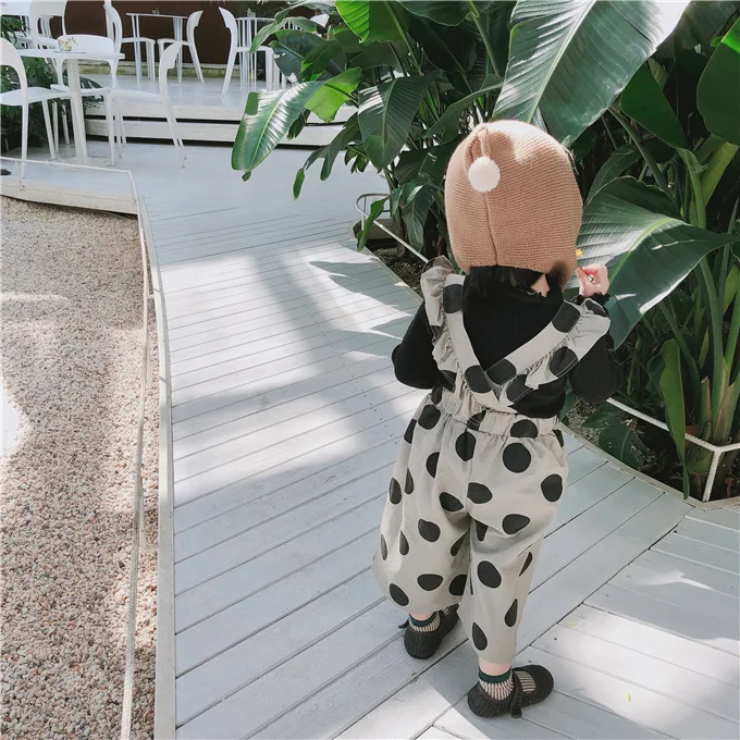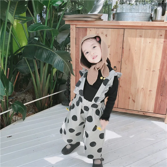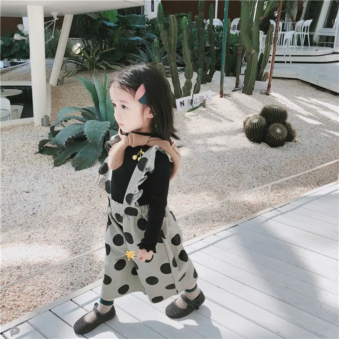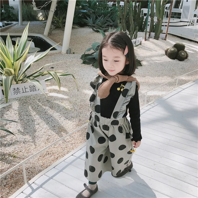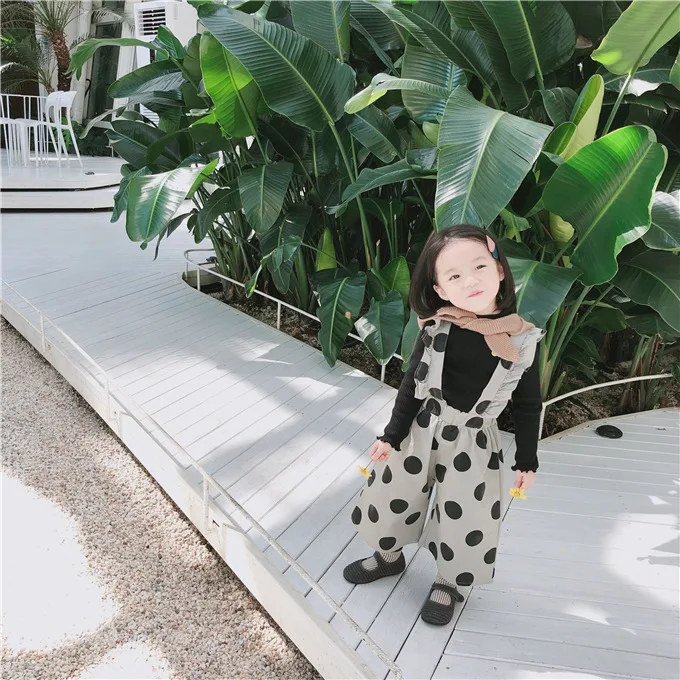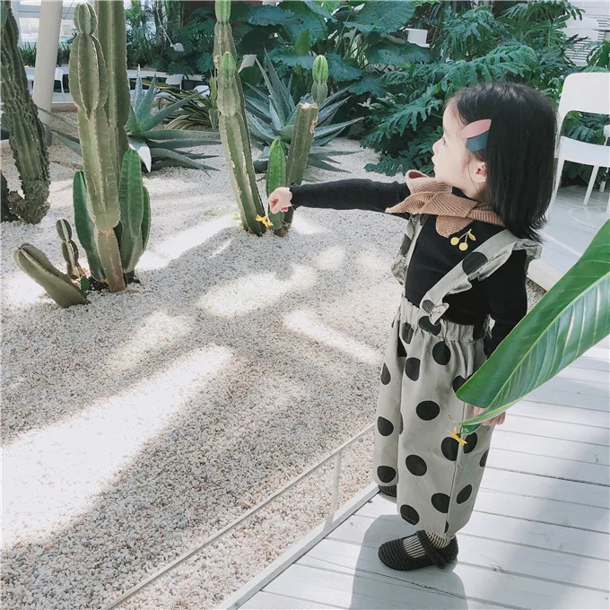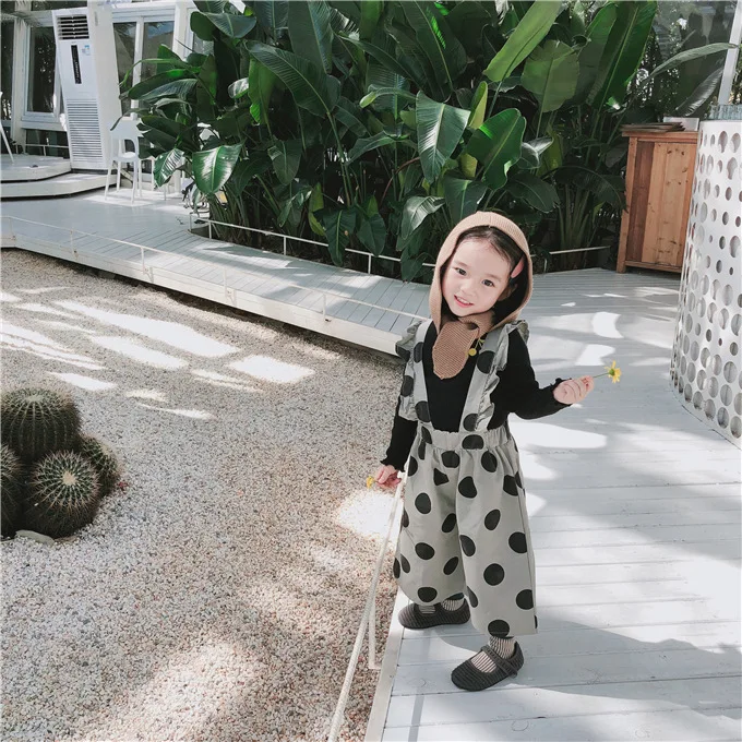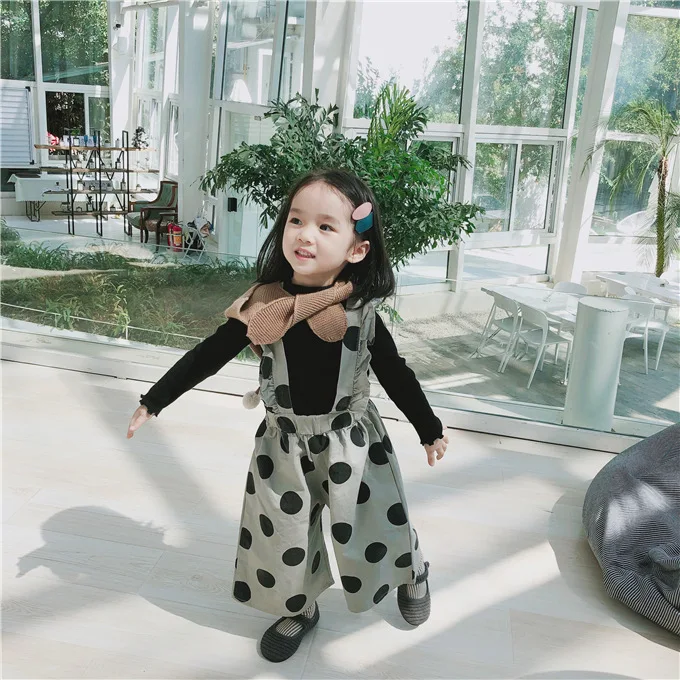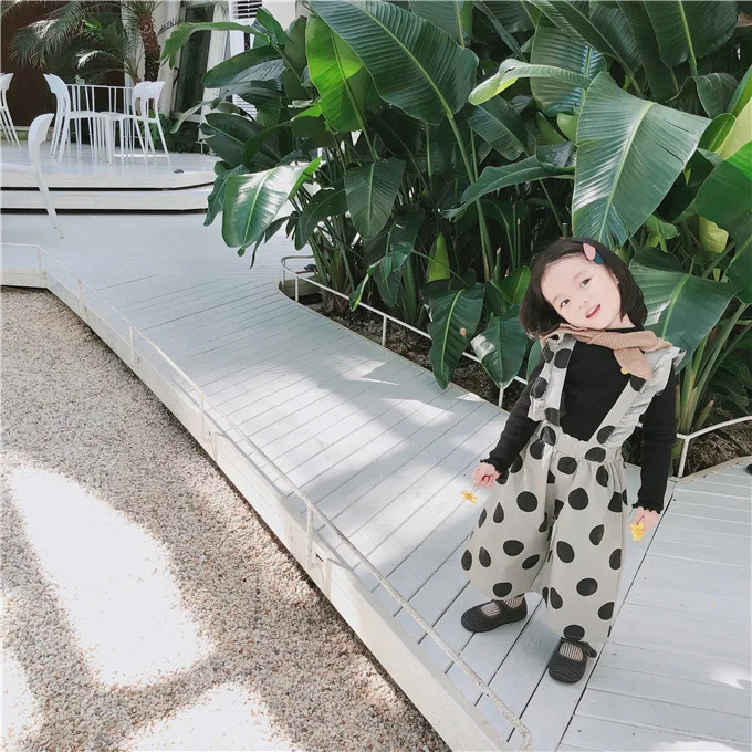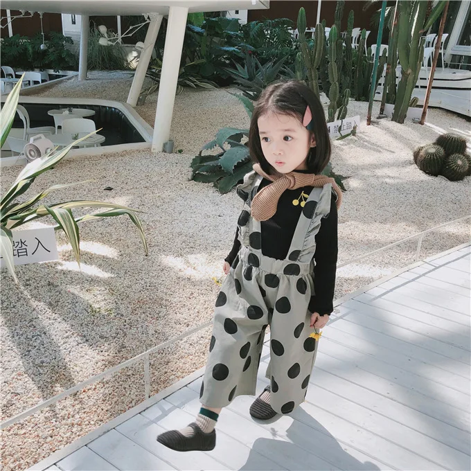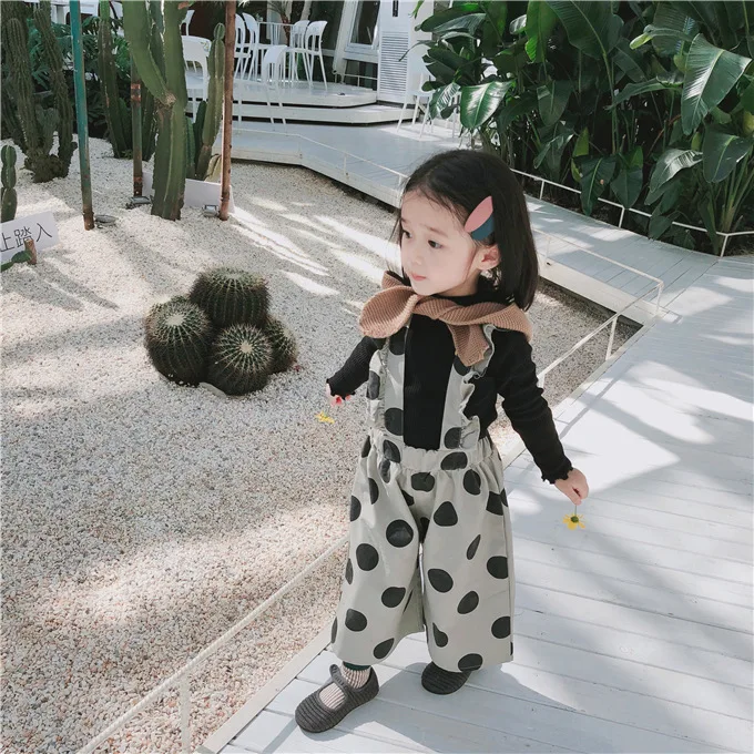 Korean style Autumn baby girls fashion laciness dot printed overalls 1-6 years kids Wide leg pants children suspender trousers