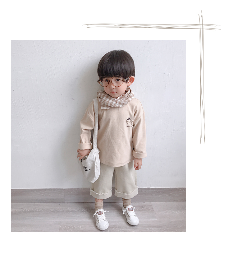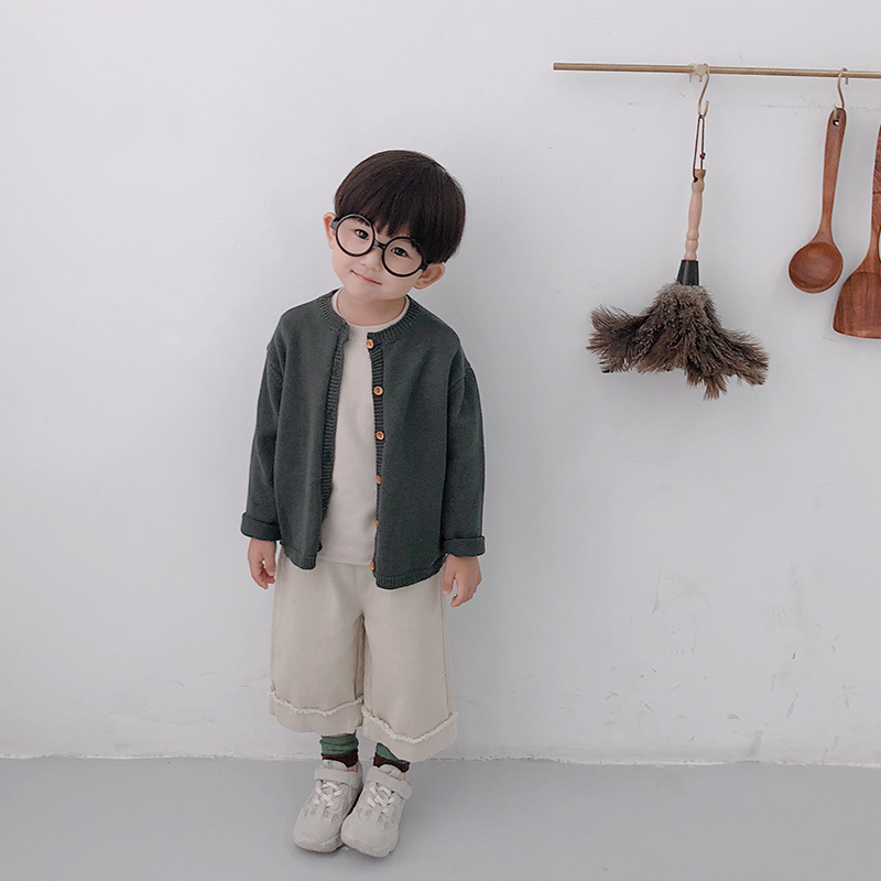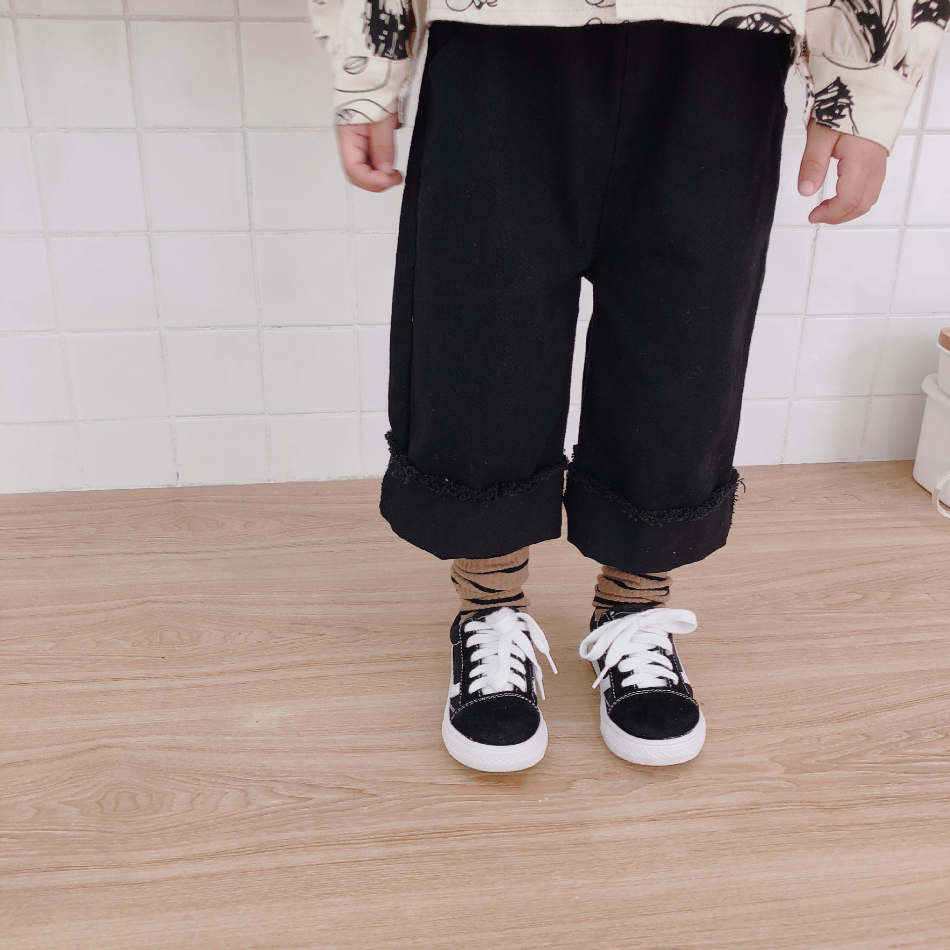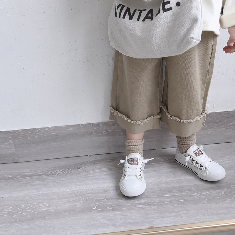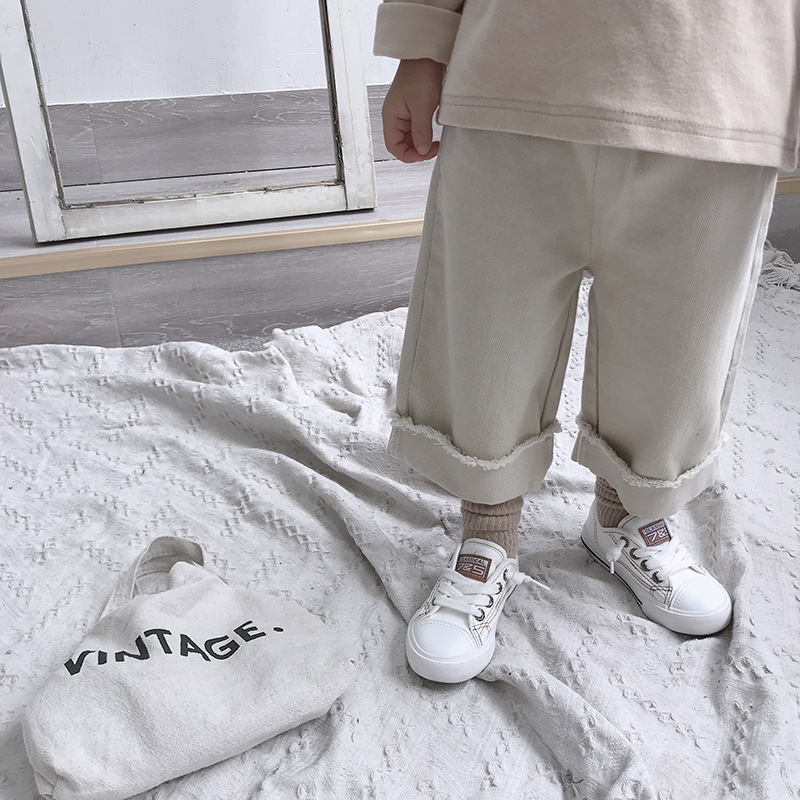 Korean style Spring autumn boys girls cotton fashion cuffed wide leg pants kids all-match loose casual trousers 0-6Y