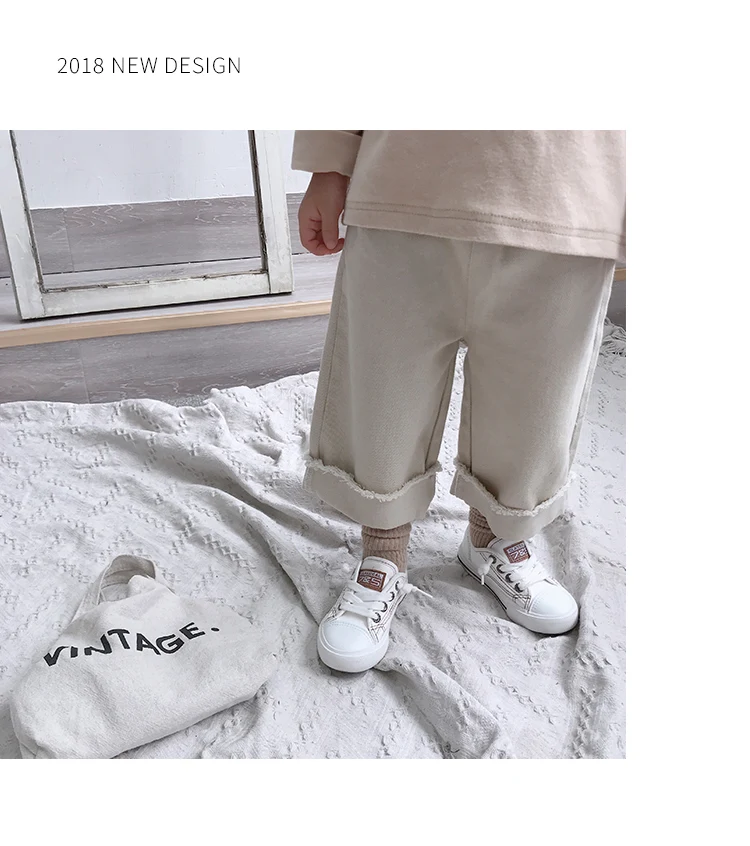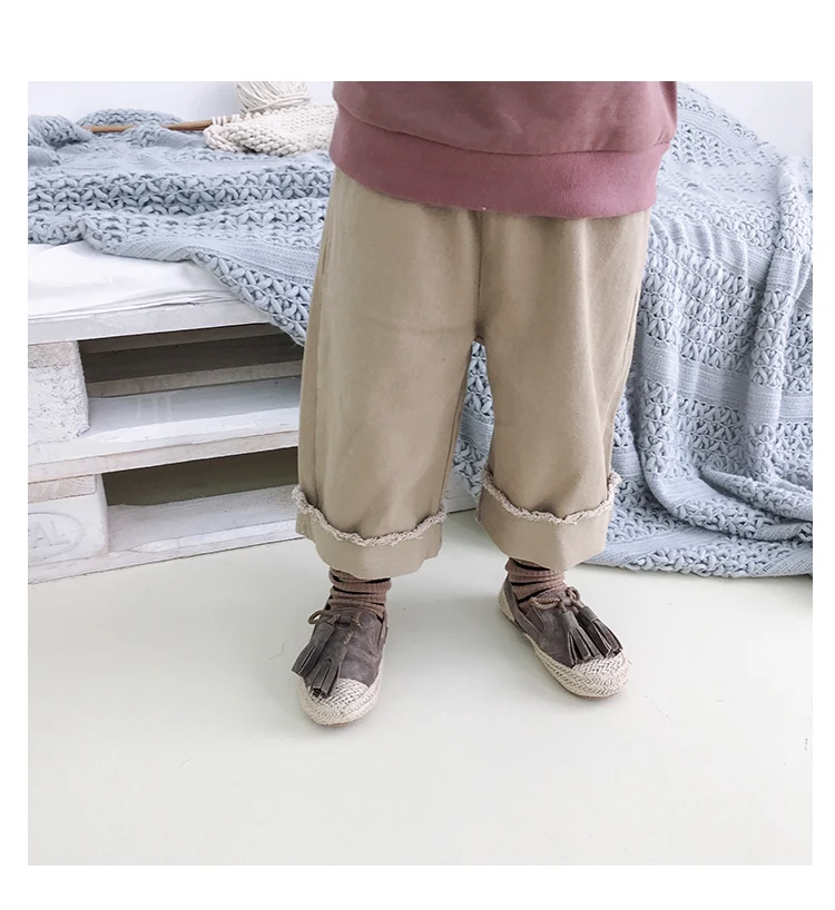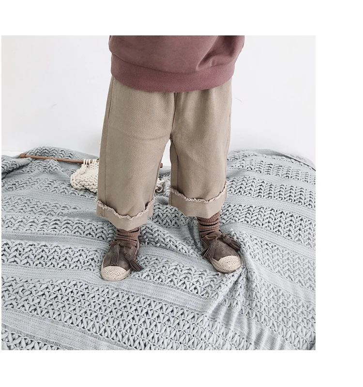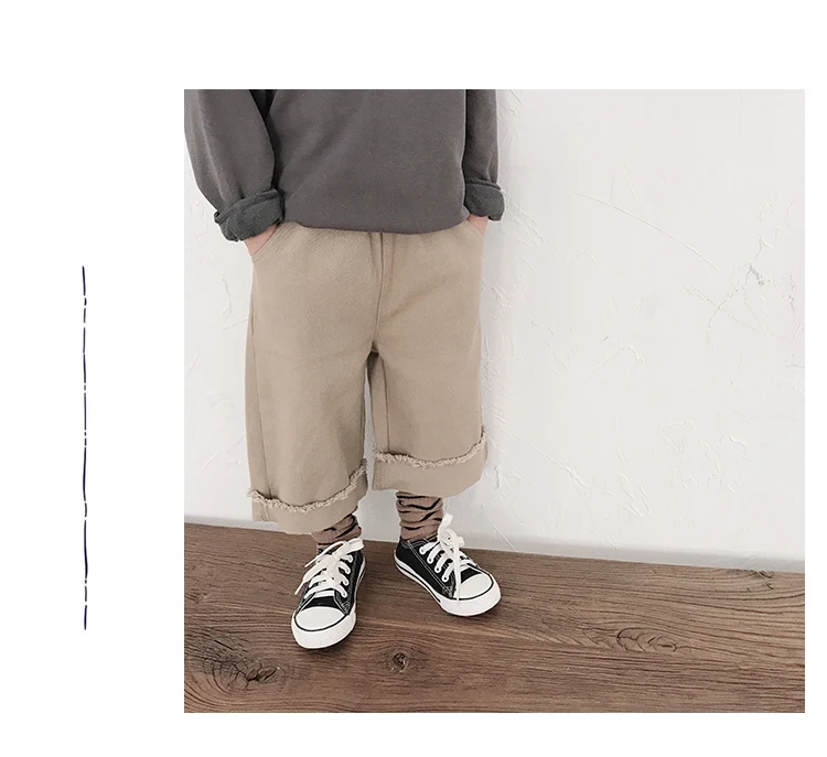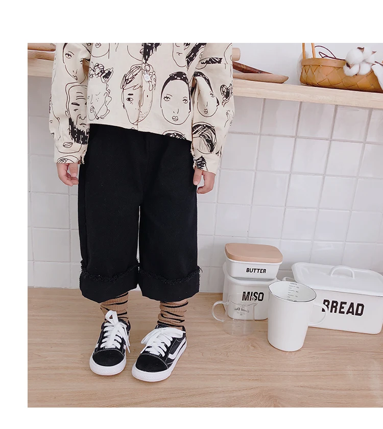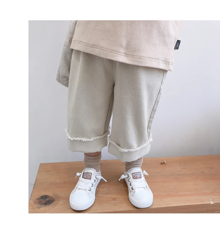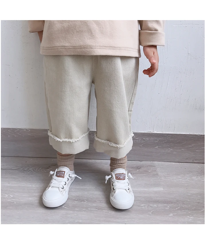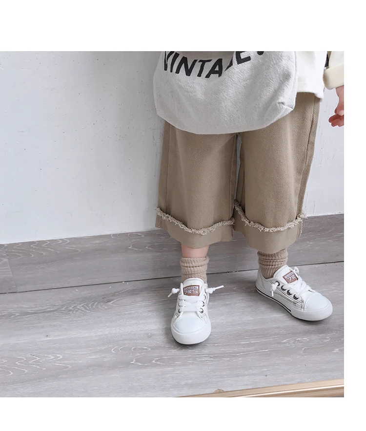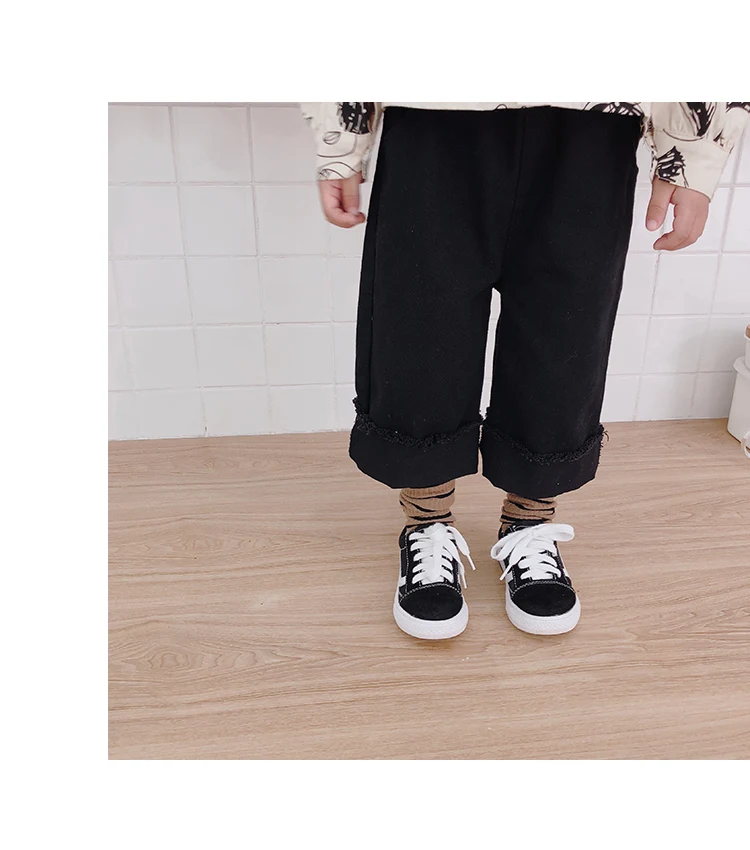 Korean style Spring autumn boys girls cotton fashion cuffed wide leg pants kids all-match loose casual trousers 0-6Y