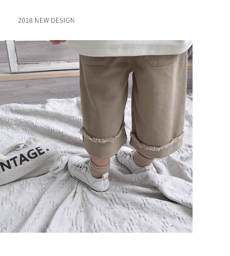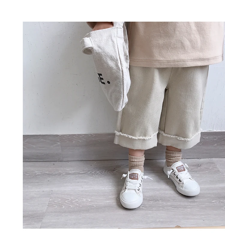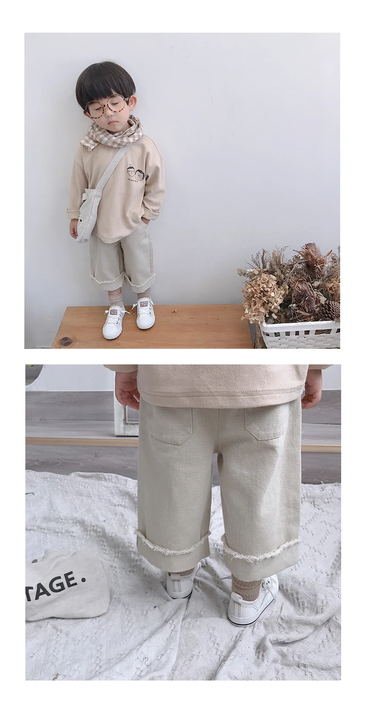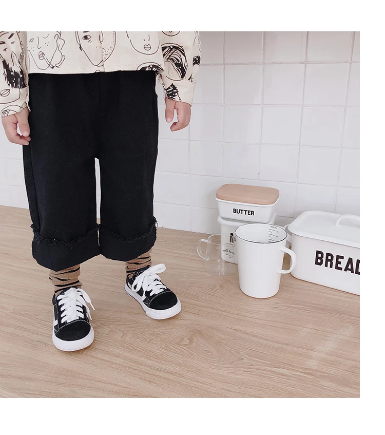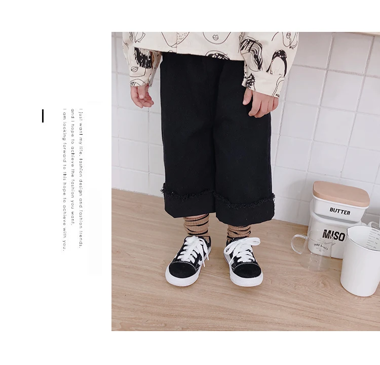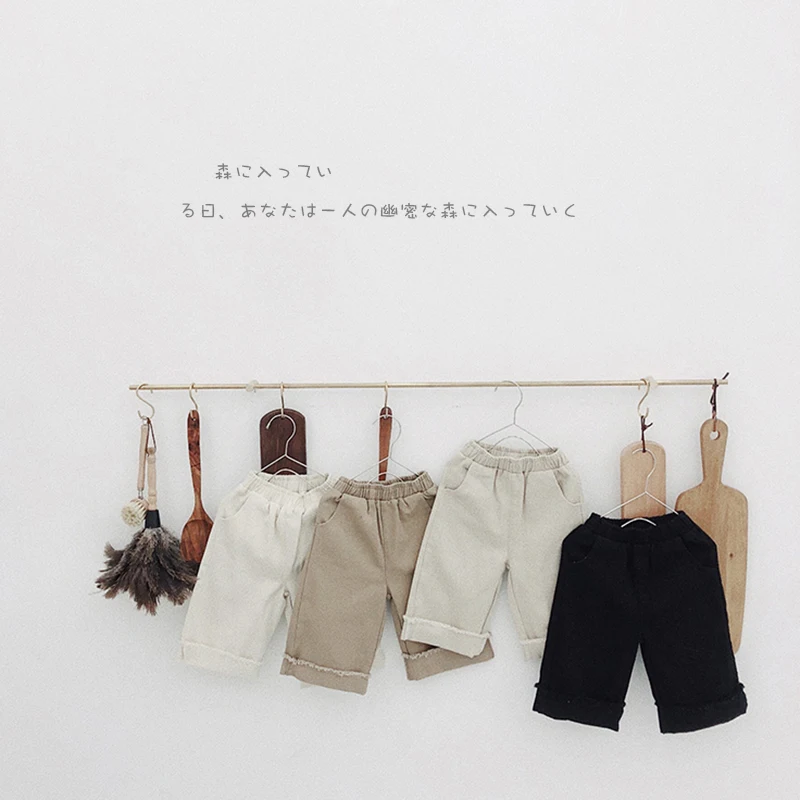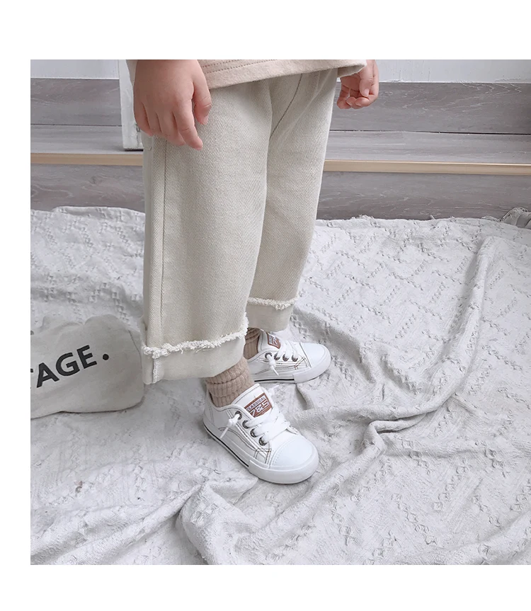 Korean style Spring autumn boys girls cotton fashion cuffed wide leg pants kids all-match loose casual trousers 0-6Y