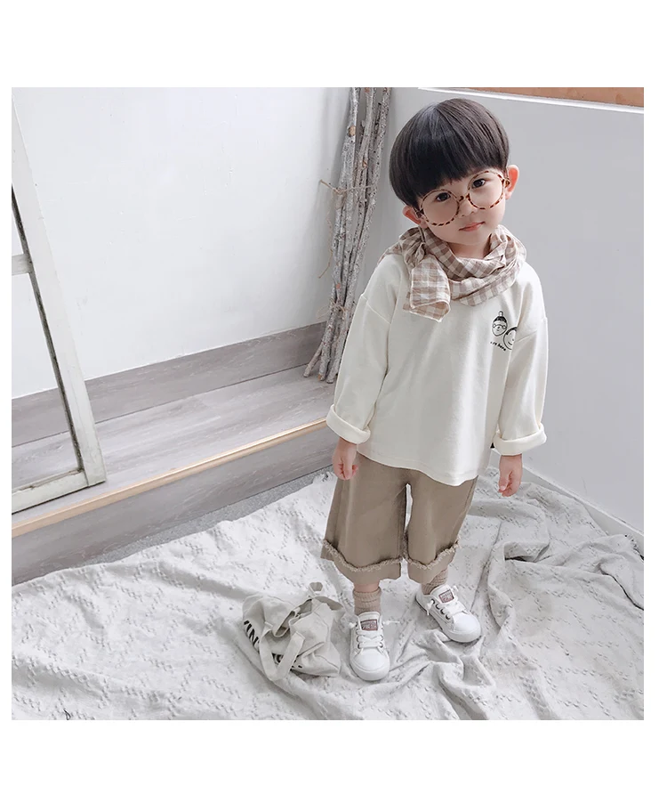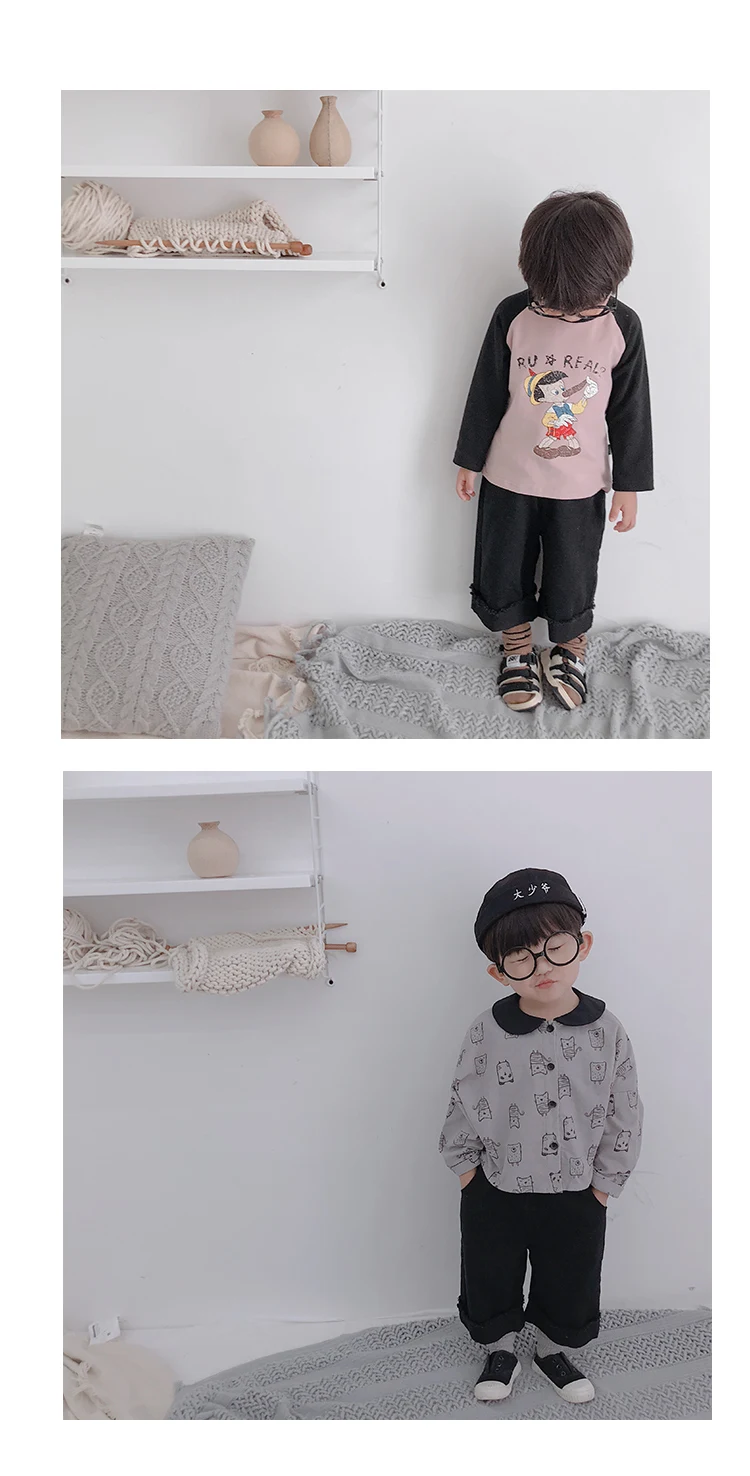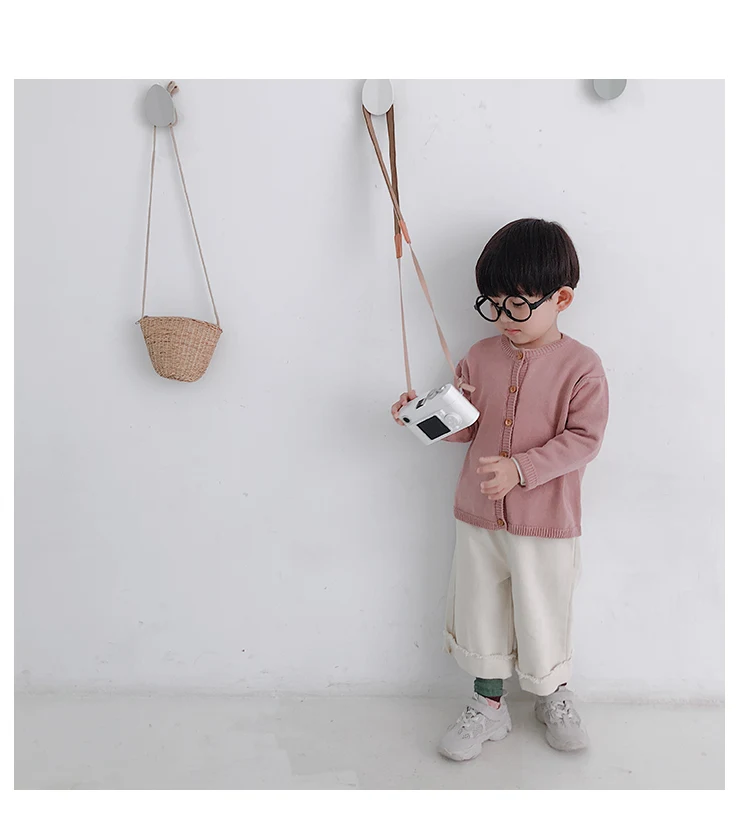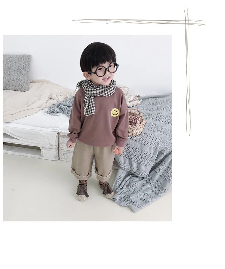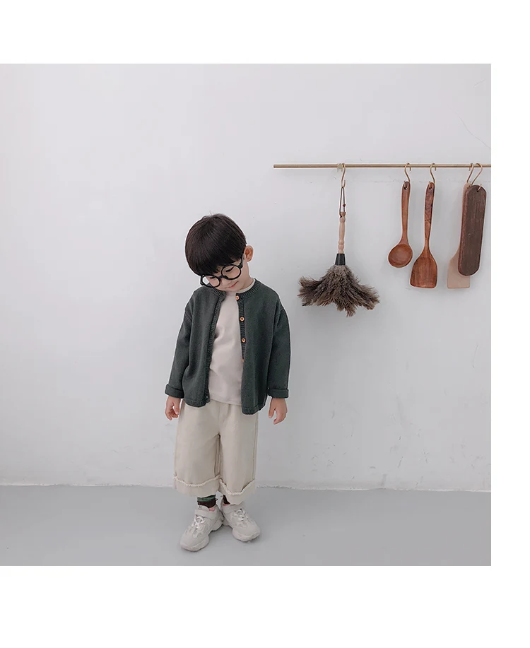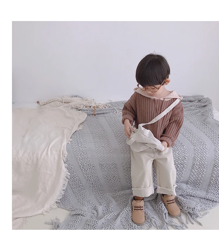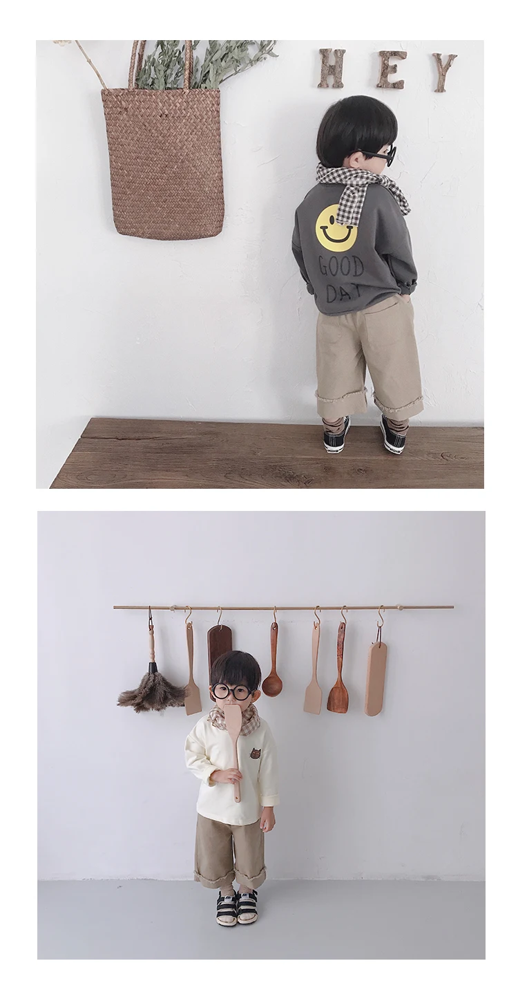 Korean style Spring autumn boys girls cotton fashion cuffed wide leg pants kids all-match loose casual trousers 0-6Y