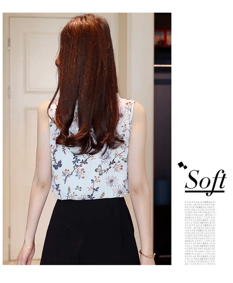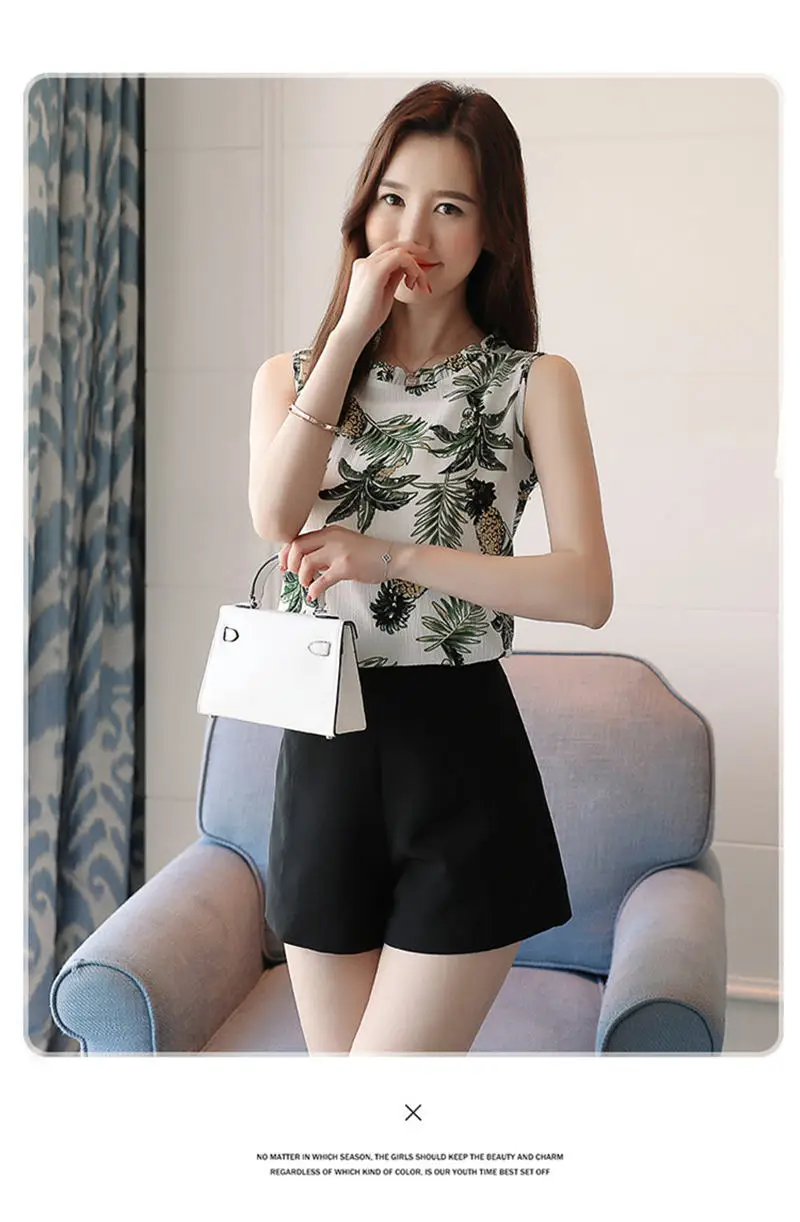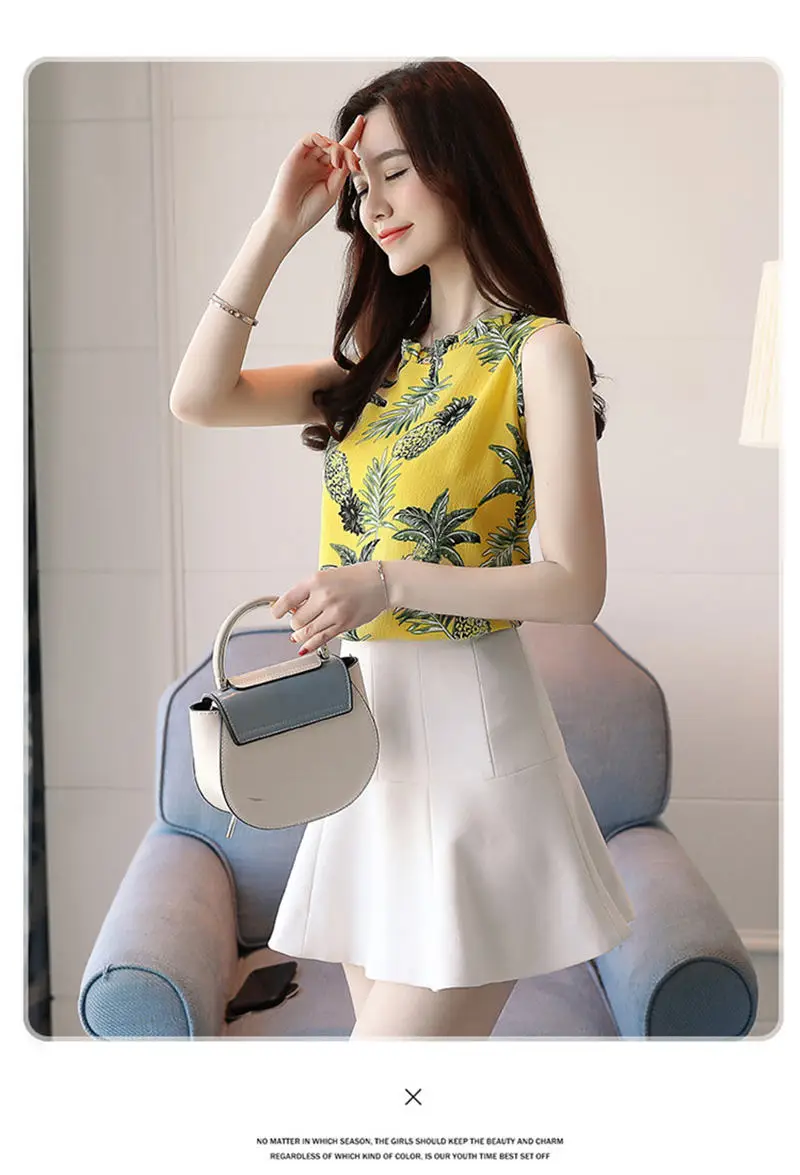 Korobov Sleeveless Shirt Floral Pineapple Printed Blouse 2018 Summer Tops O-neck Blouses Woman Elegant Chiffon Shirts 35378