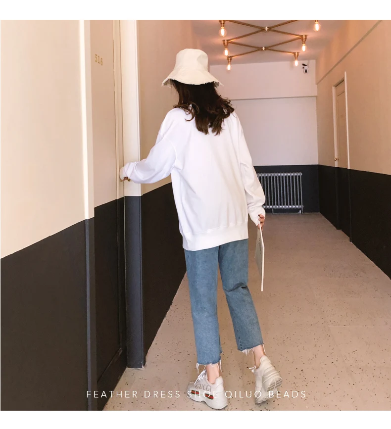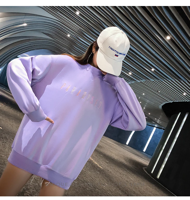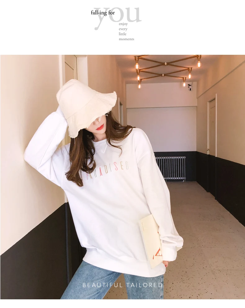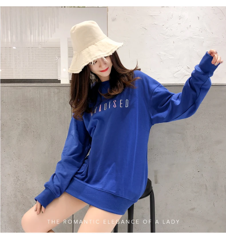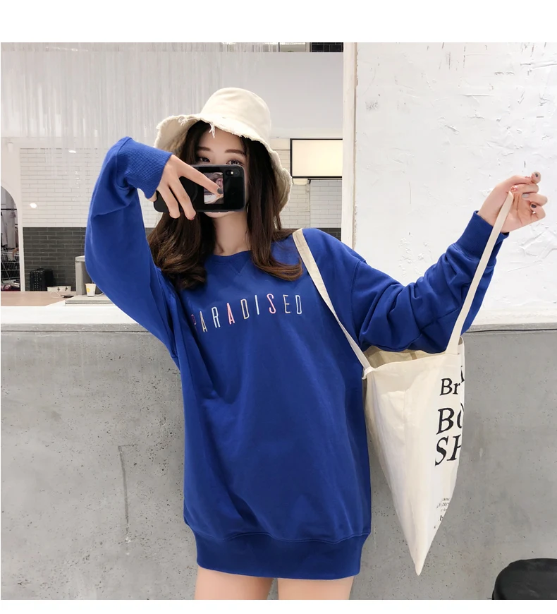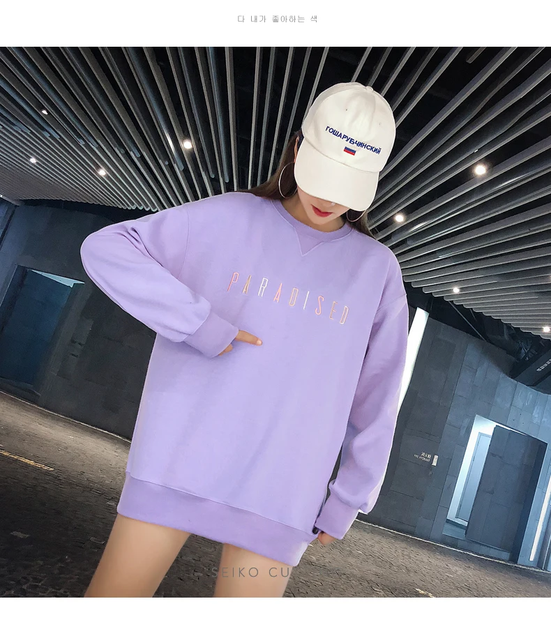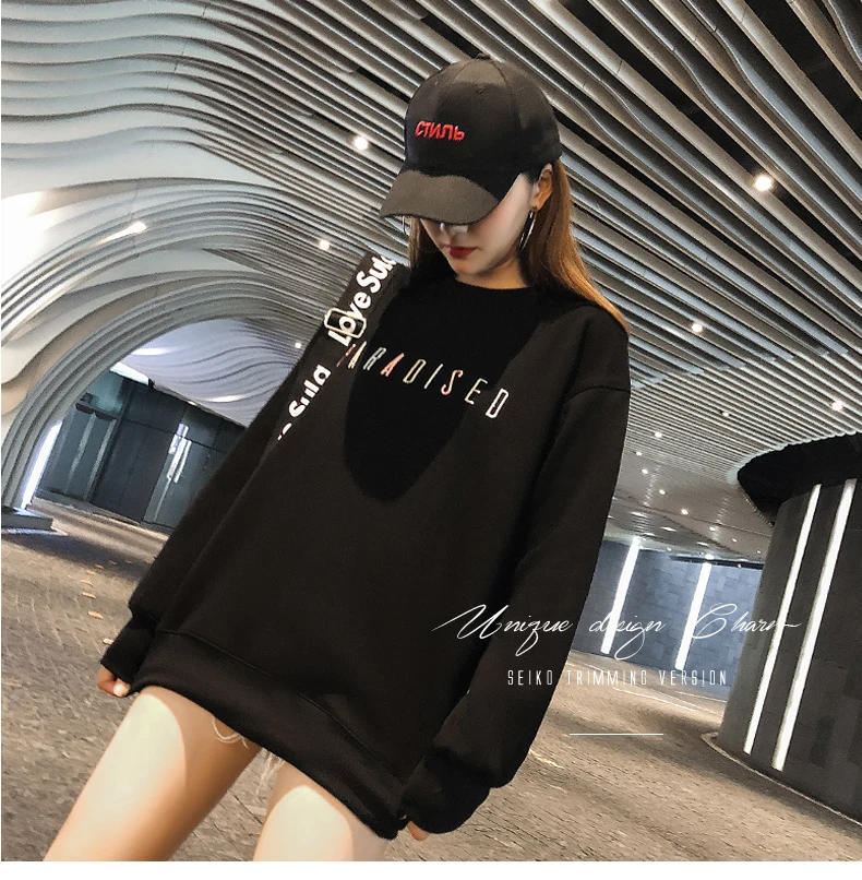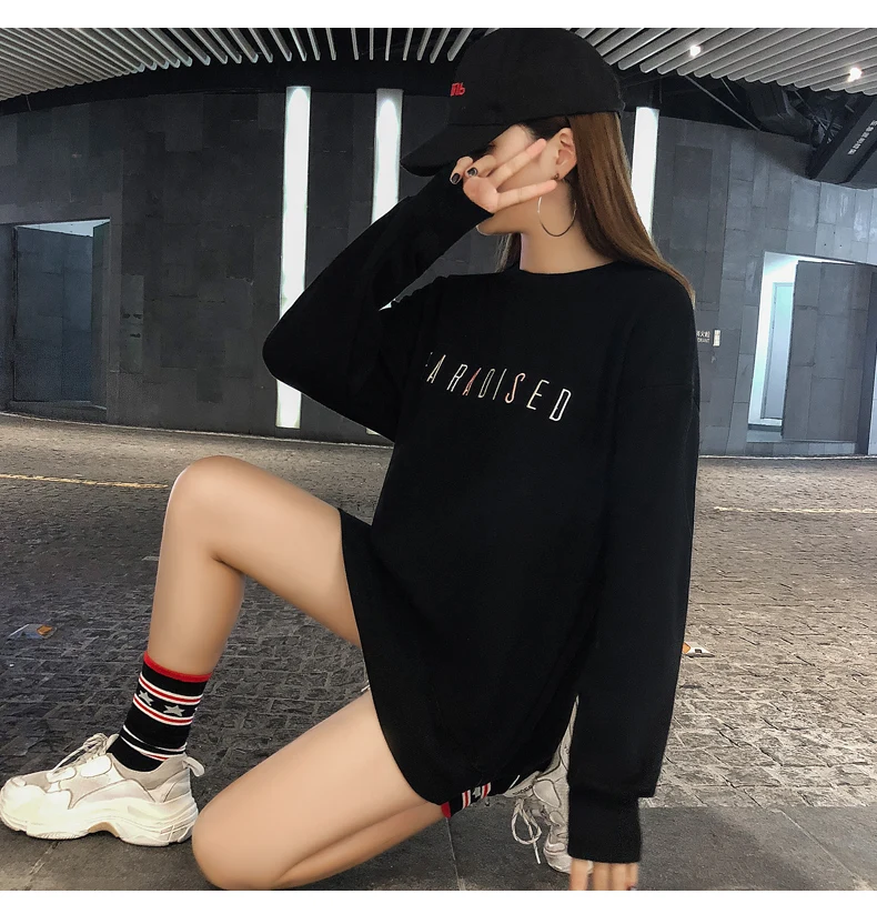 Kpop Street Style Long Sweatshirt Woman Clothes Autumn Harajuku Lolita Loose Letter Stitch Pullover Sweatshirt Tops Women Tumblr