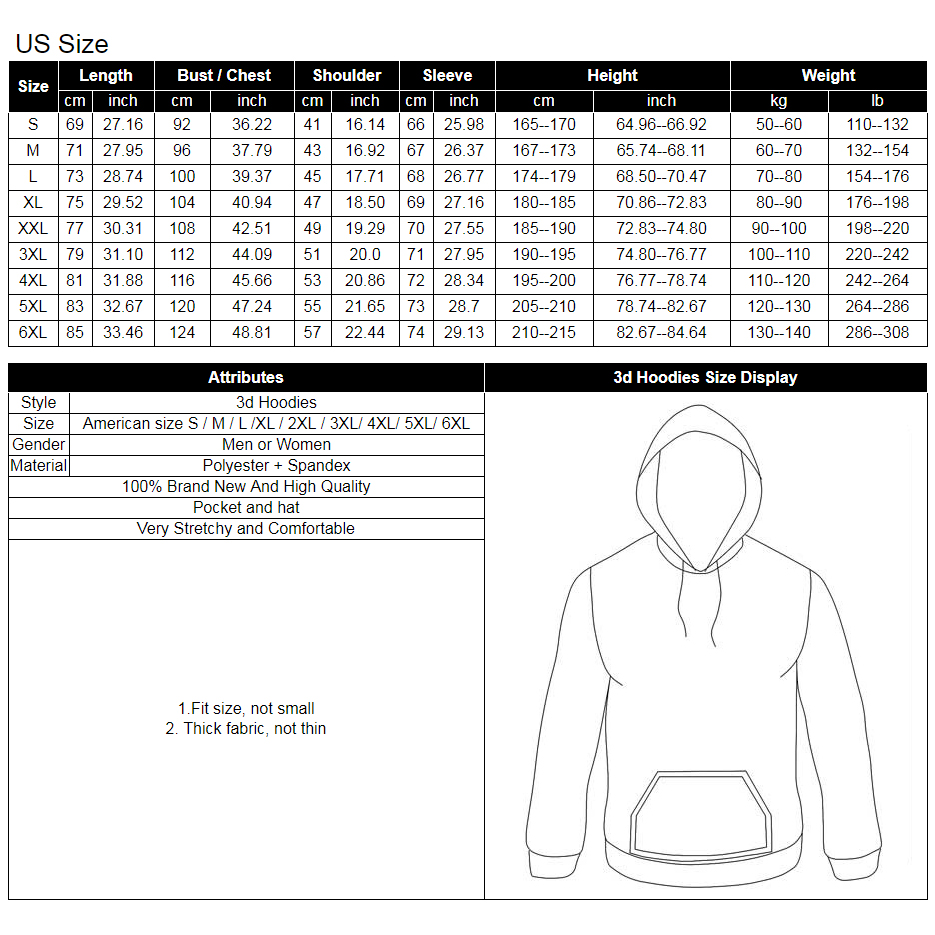 | Attributes | 3d Hoodies Size Display | ||
