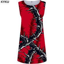 KYKU Red Dress Women Thorn Office Dress Party Gothic Branch 3d Print Sundress Sexy Vintage Womens Clothing Summer Ladies Dresses