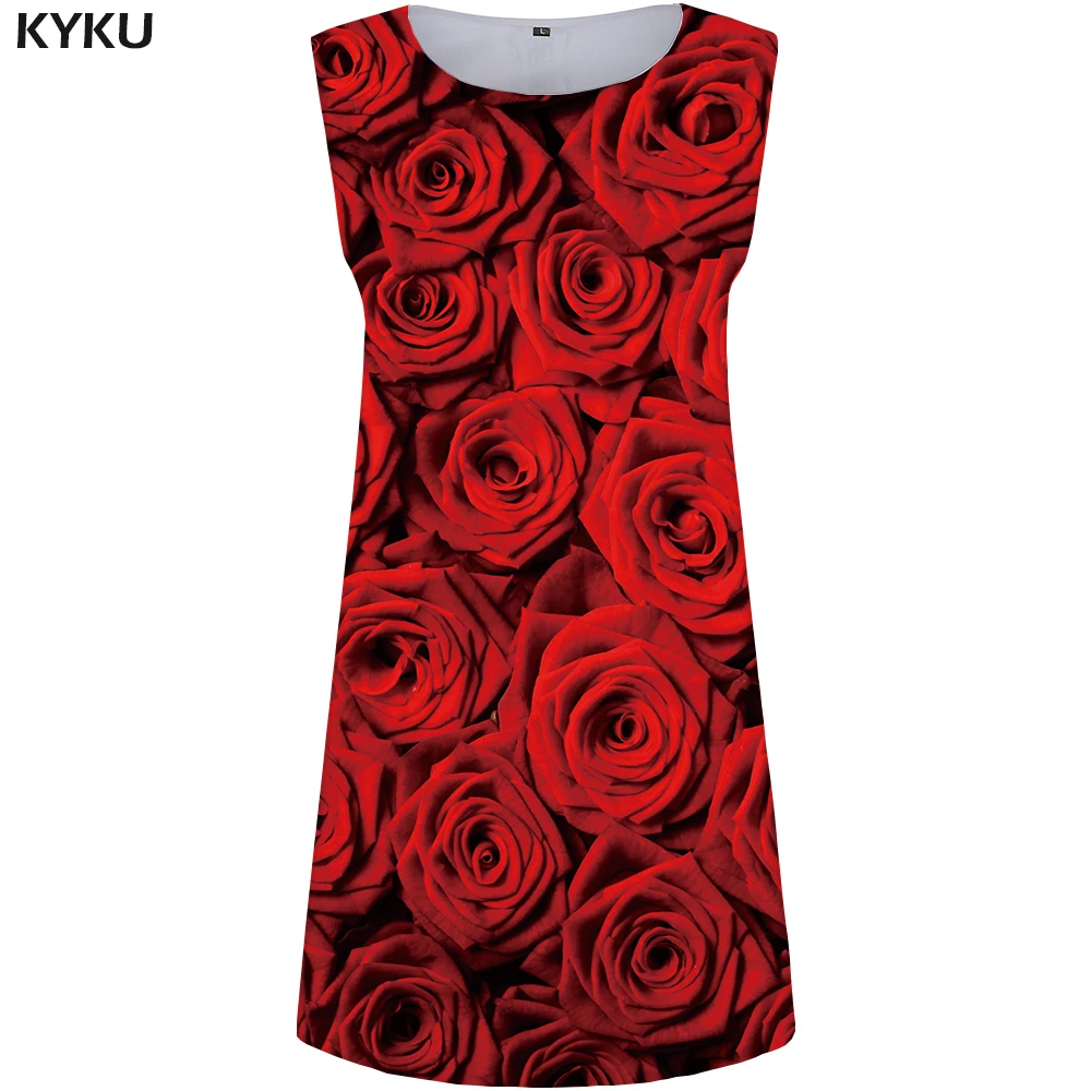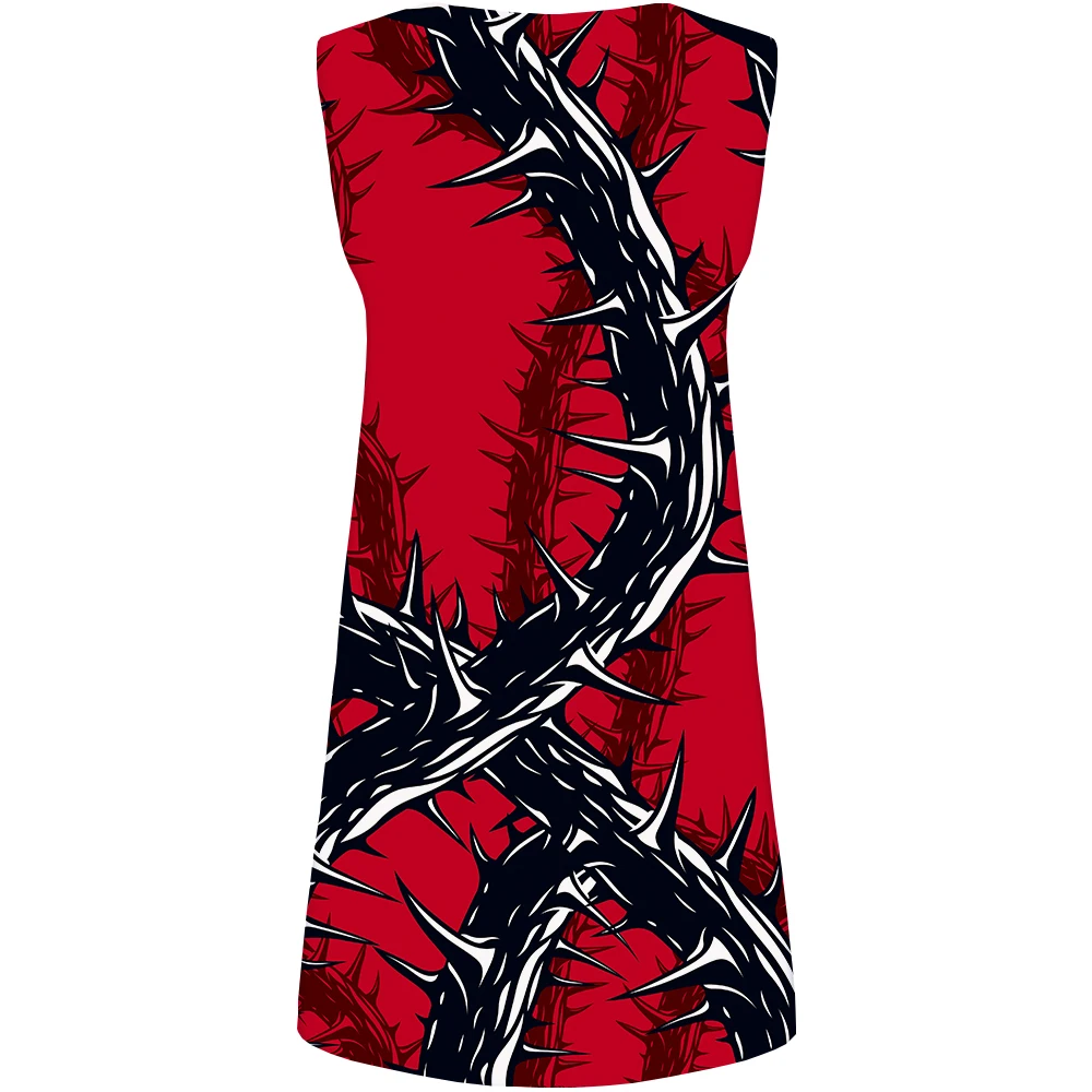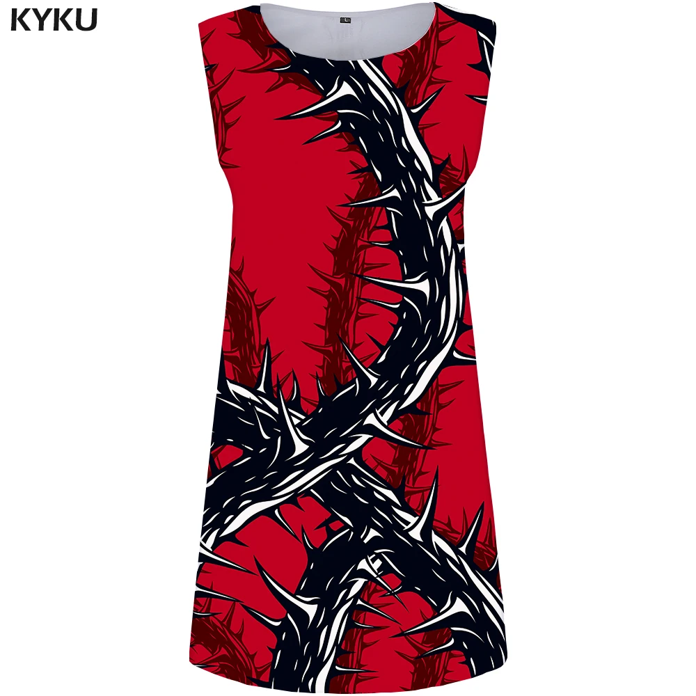 KYKU Red Dress Women Thorn Office Dress Party Gothic Branch 3d Print Sundress Sexy Vintage Womens Clothing Summer Ladies Dresses