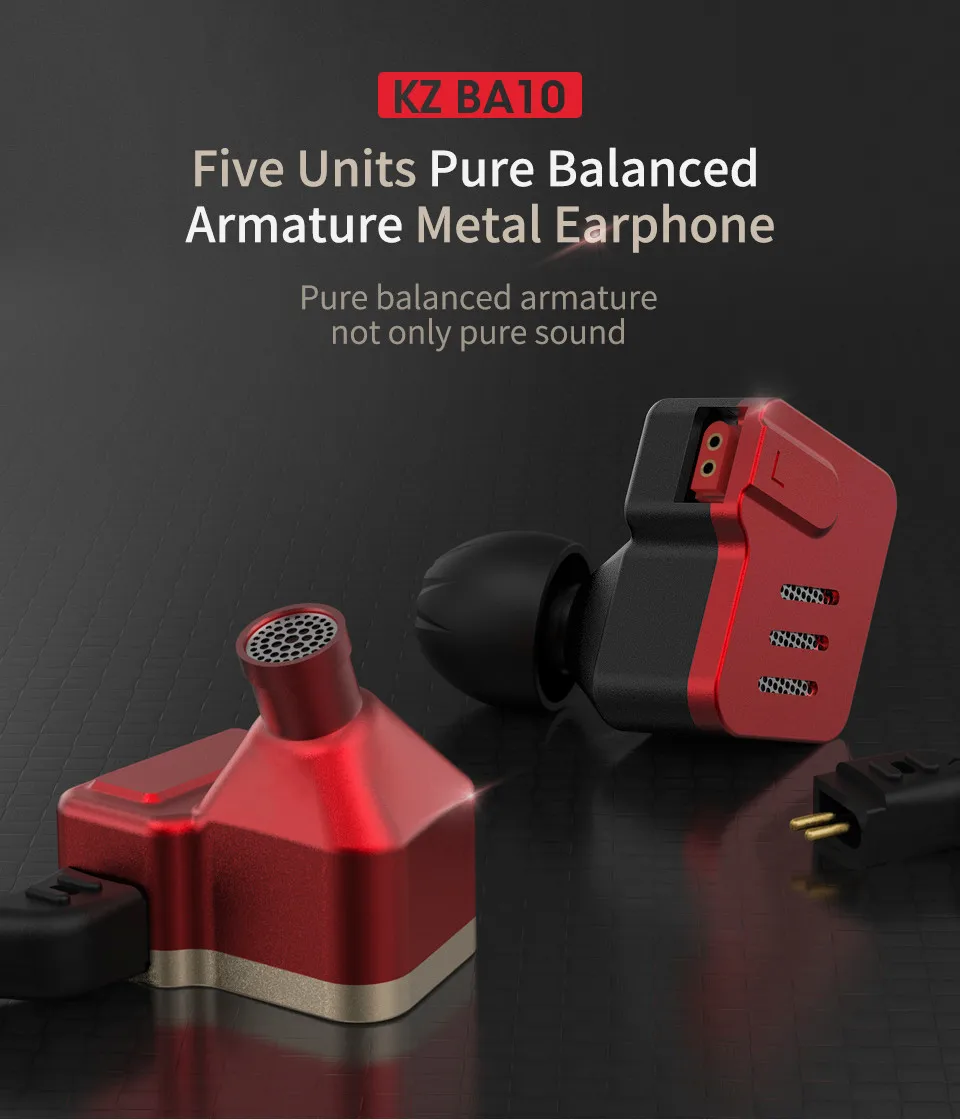 KZ BA10 Metal Earphones 5BA Balanced Armature Driver HIFI Bass Headphones In Ear Monitor Sport Headset Noise Cancelling Earbuds