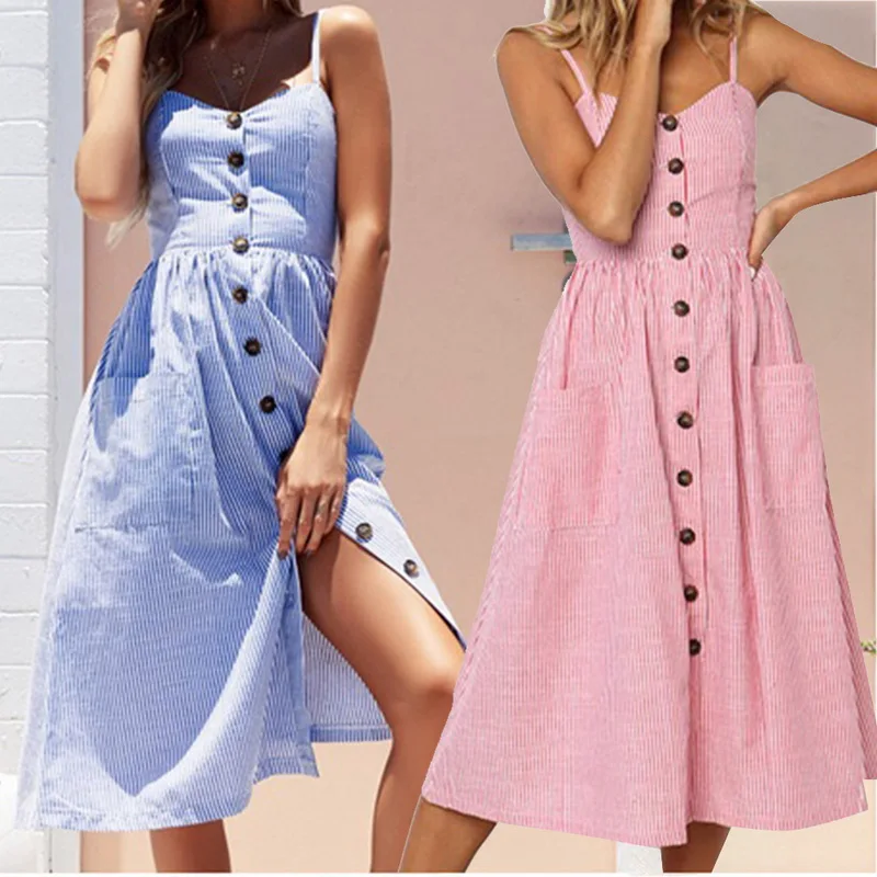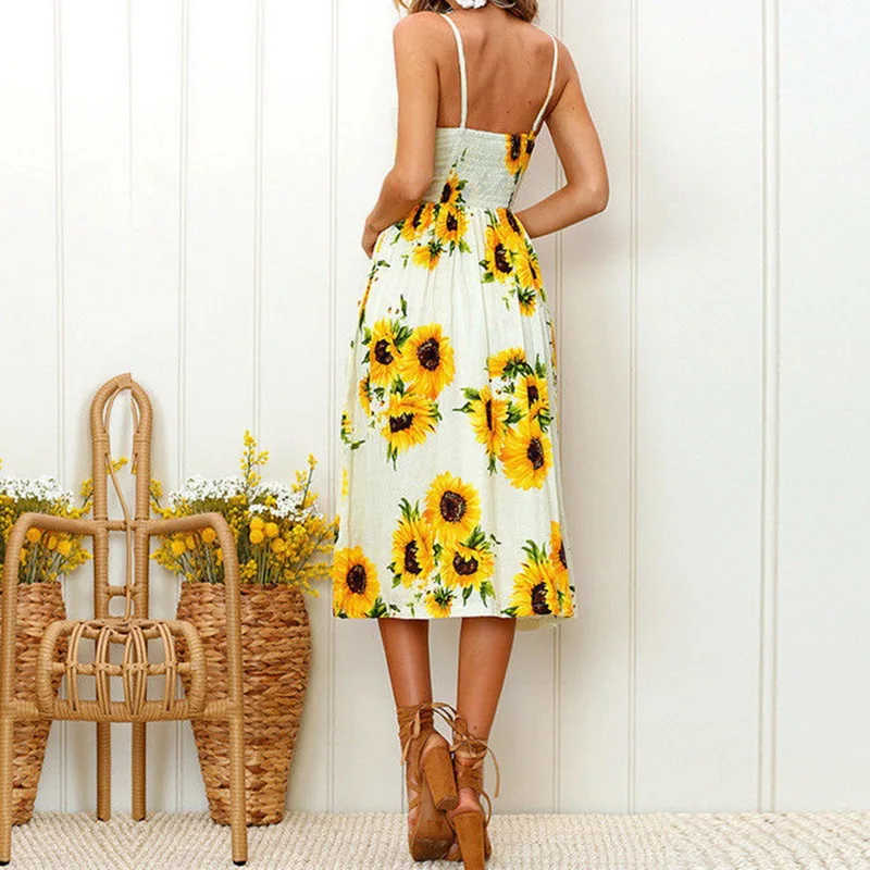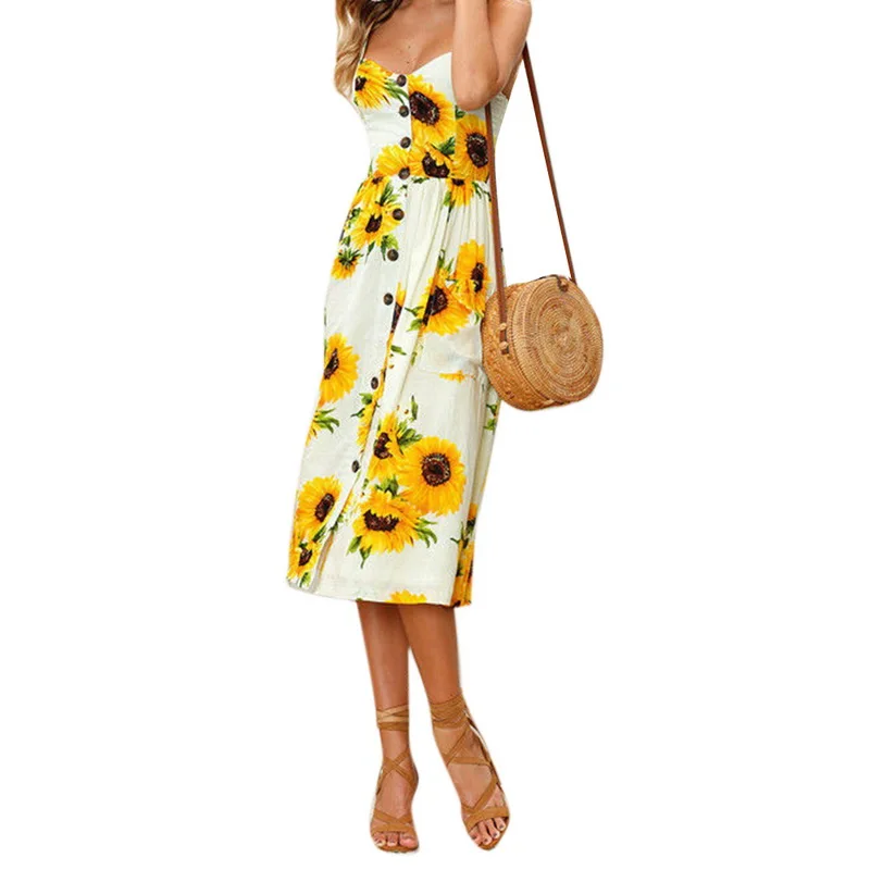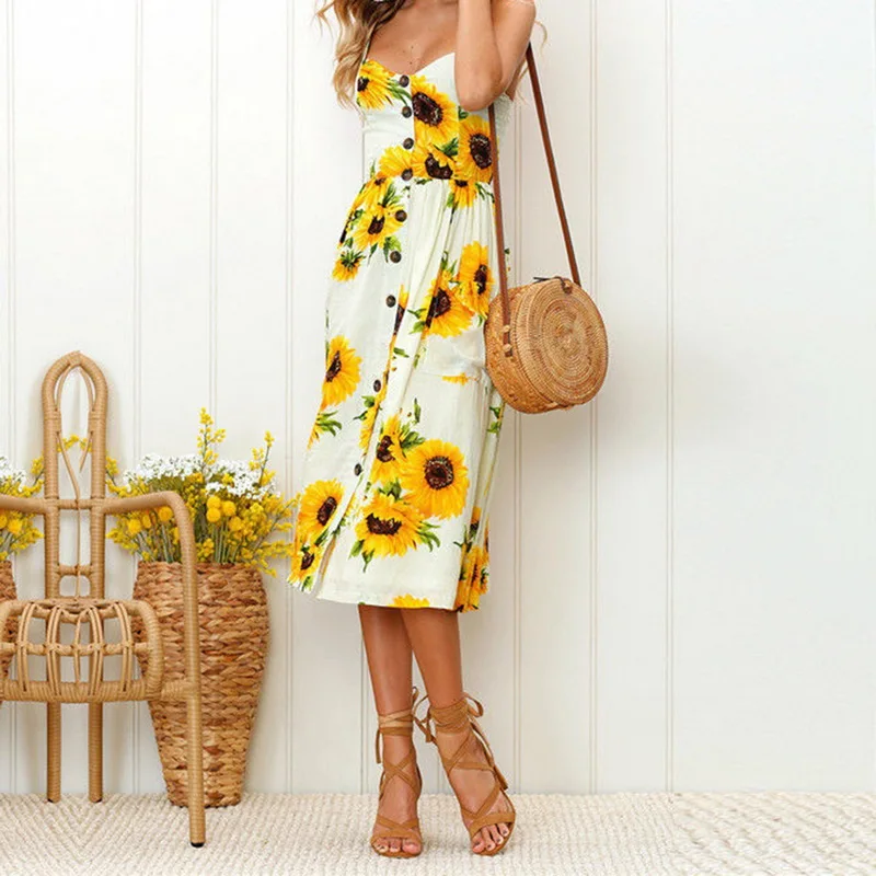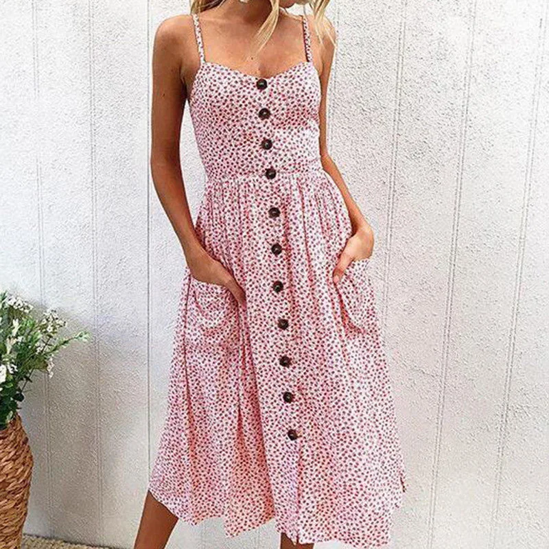 Laamei Floral Sundress Women Beach Dress Vintage Party Long Dress Bohemian Boho Dresses Pockets Button 2018 summer sexy dress