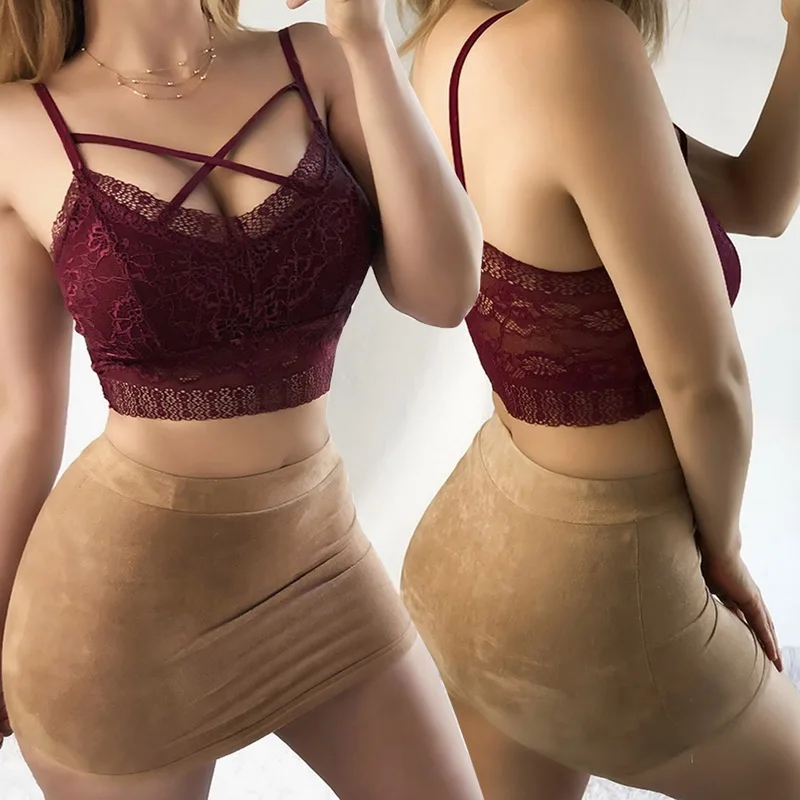 Laamei Lace Cross Bandage Breathable Sling Chest Wrap Sexy Bra Underwear Sexy Bralette Lace Women Lingerie Sling Hollow Bra