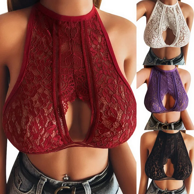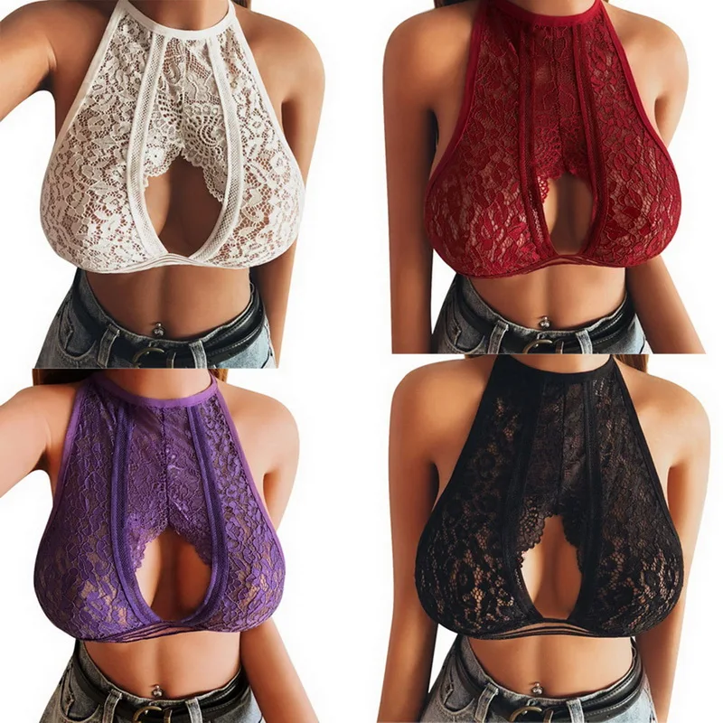 Laamei Lace Hollow Hanging Neck Sexy Lace Bra Women Straps Underwears Breathable Female Bralettes Sexy Hollow Out Women’s Bra