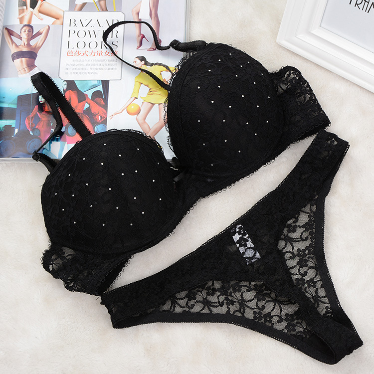 Lace Drill Bra Set Women Plus Size Push Up Underwear Set Bra And Thong Set 34 36 38 40 CD Cup For Female