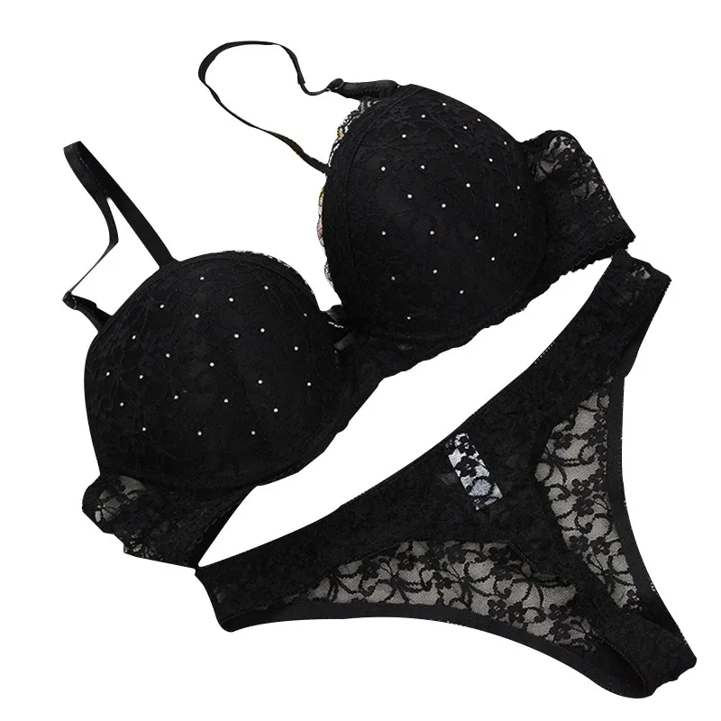 Lace Drill Bra Set Women Plus Size Push Up Underwear Set Bra And Thong Set 34 36 38 40 CD Cup For Female