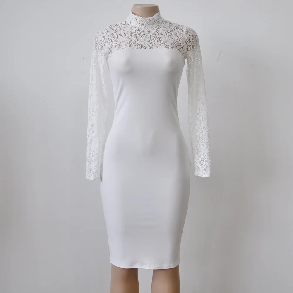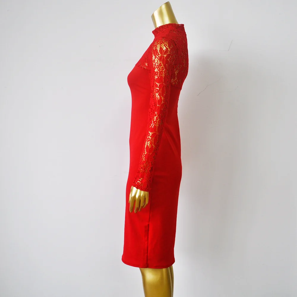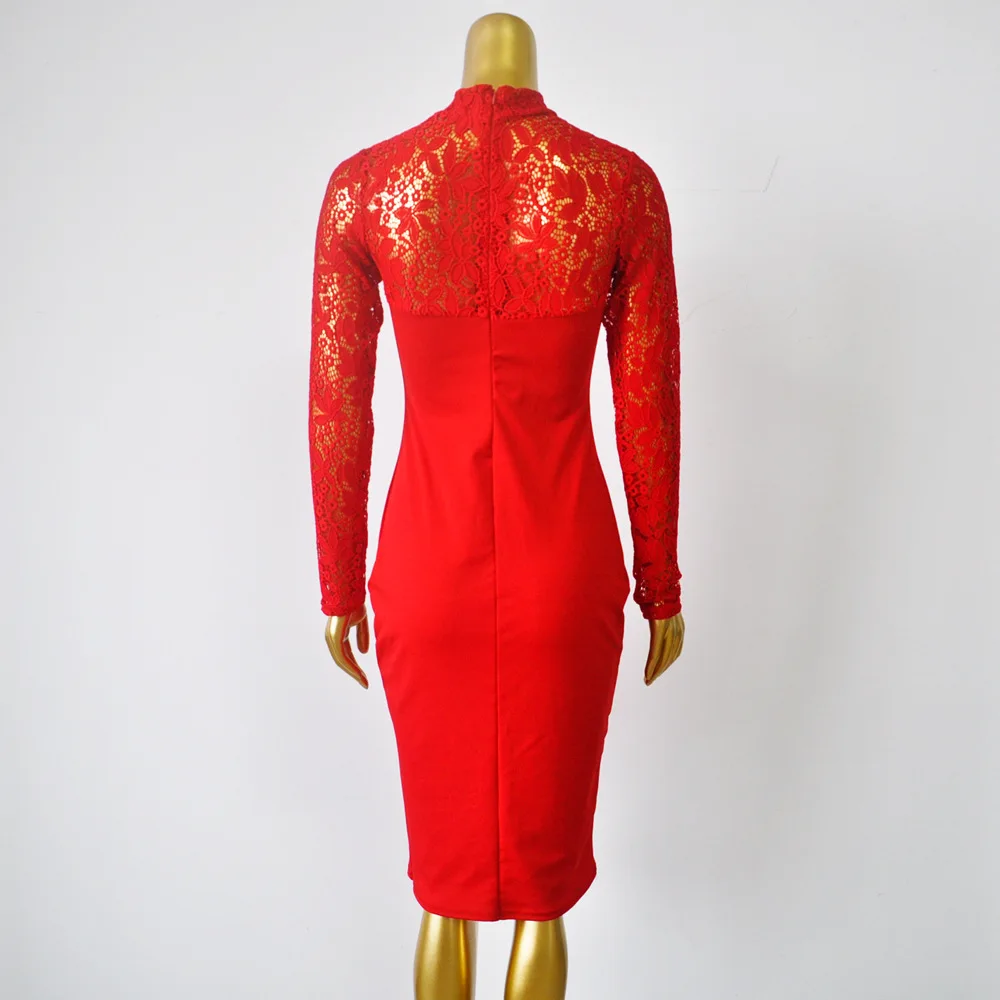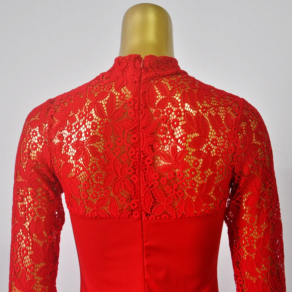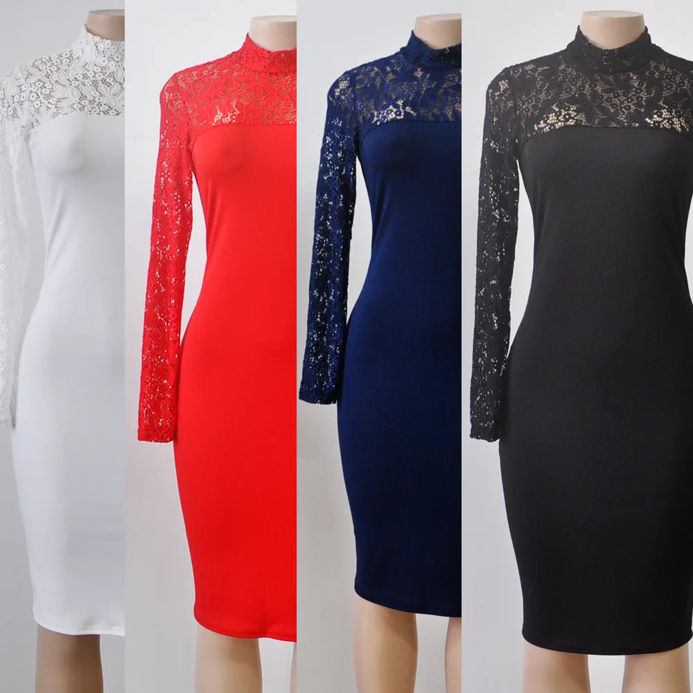 Lace Women Sexy Dress Tunic Maxi Bodycon Female Long Sleeves Spring Autumn Party Slim Dresses Elegant Lady Clothes Pure Colors