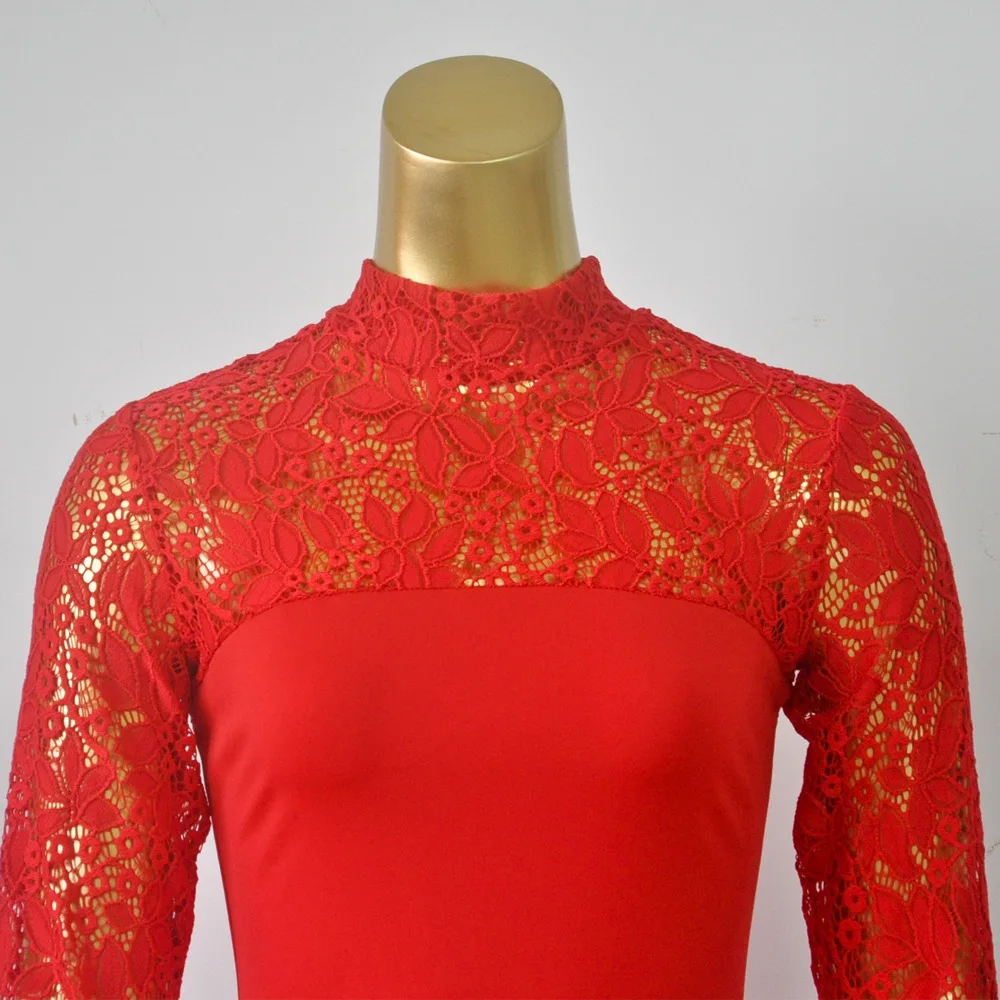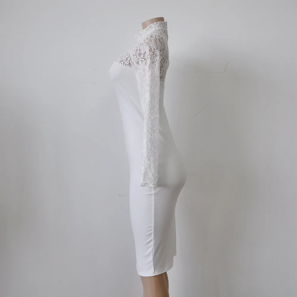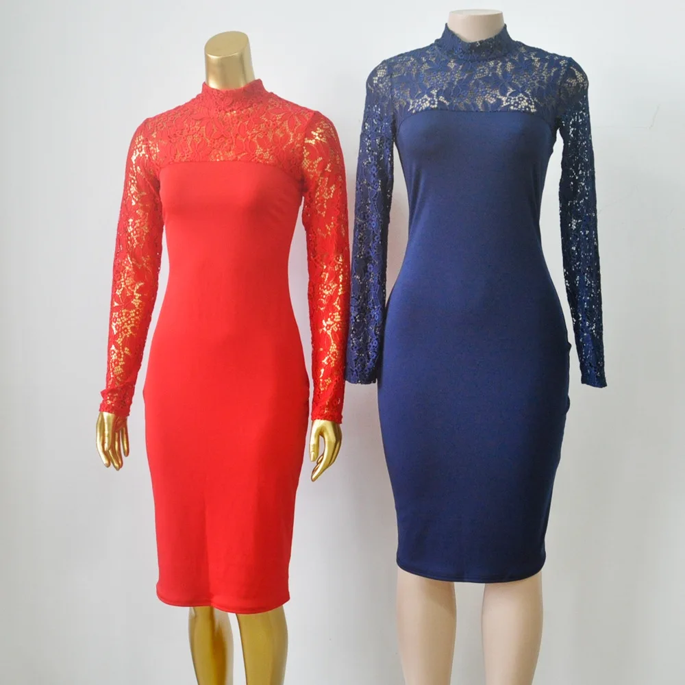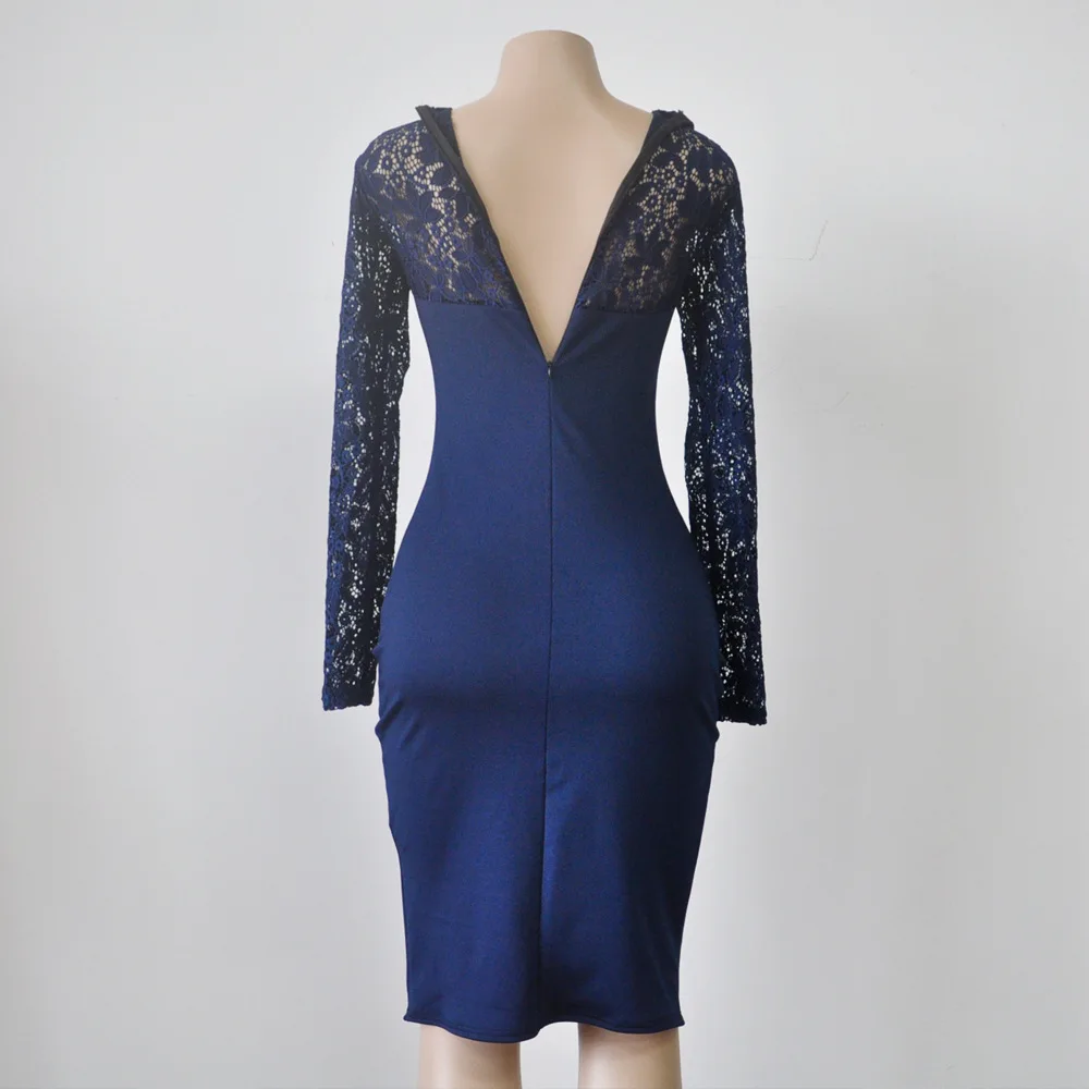 Lace Women Sexy Dress Tunic Maxi Bodycon Female Long Sleeves Spring Autumn Party Slim Dresses Elegant Lady Clothes Pure Colors