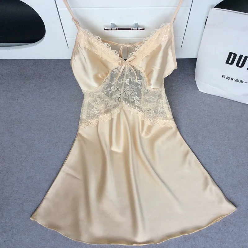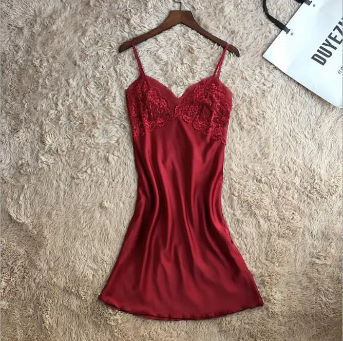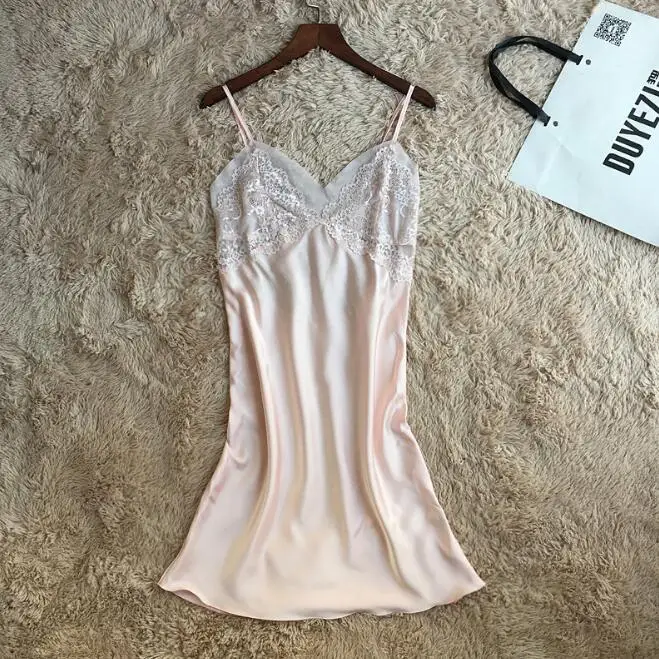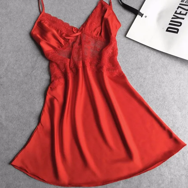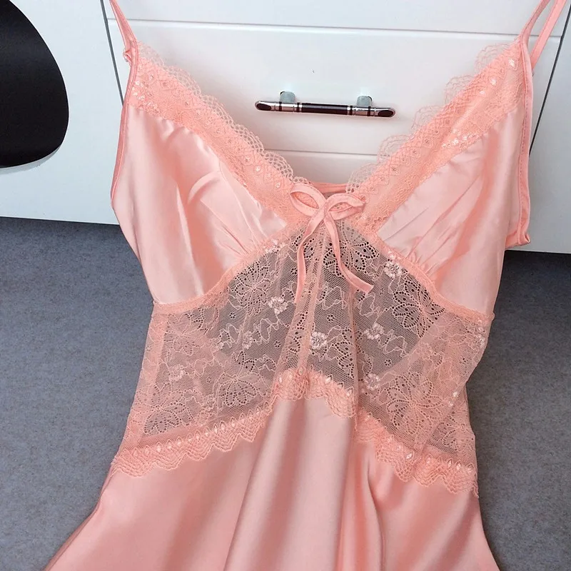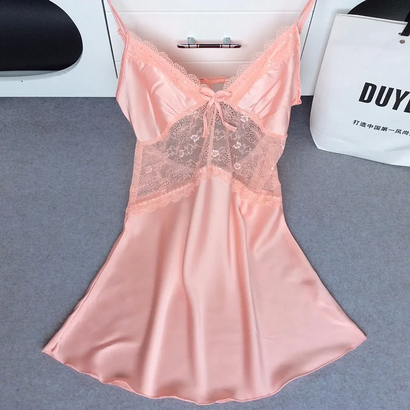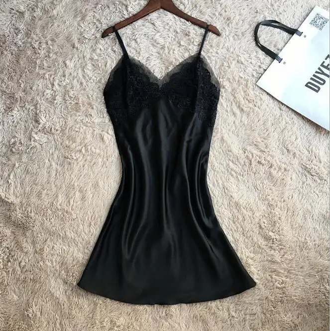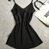 Ladies Sexy Satin Nighties Sleeveless Nightgown V-neck Night Robe Dress Lace Nightdress Women Soft Sleepshirt Nightwear Women