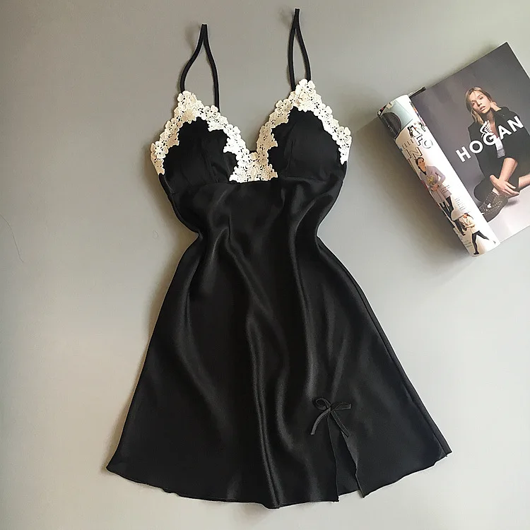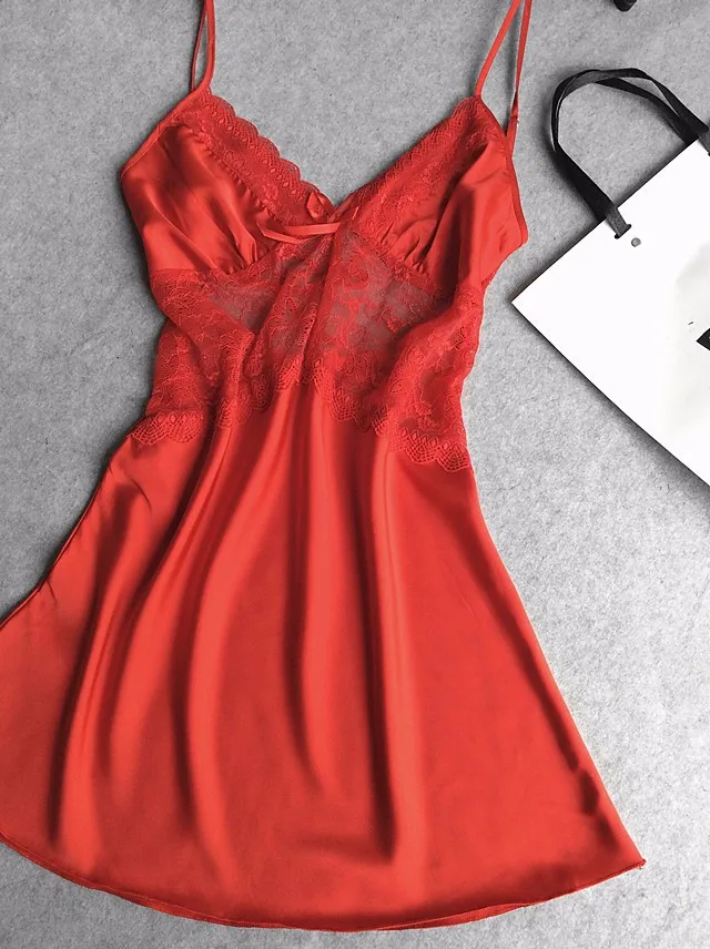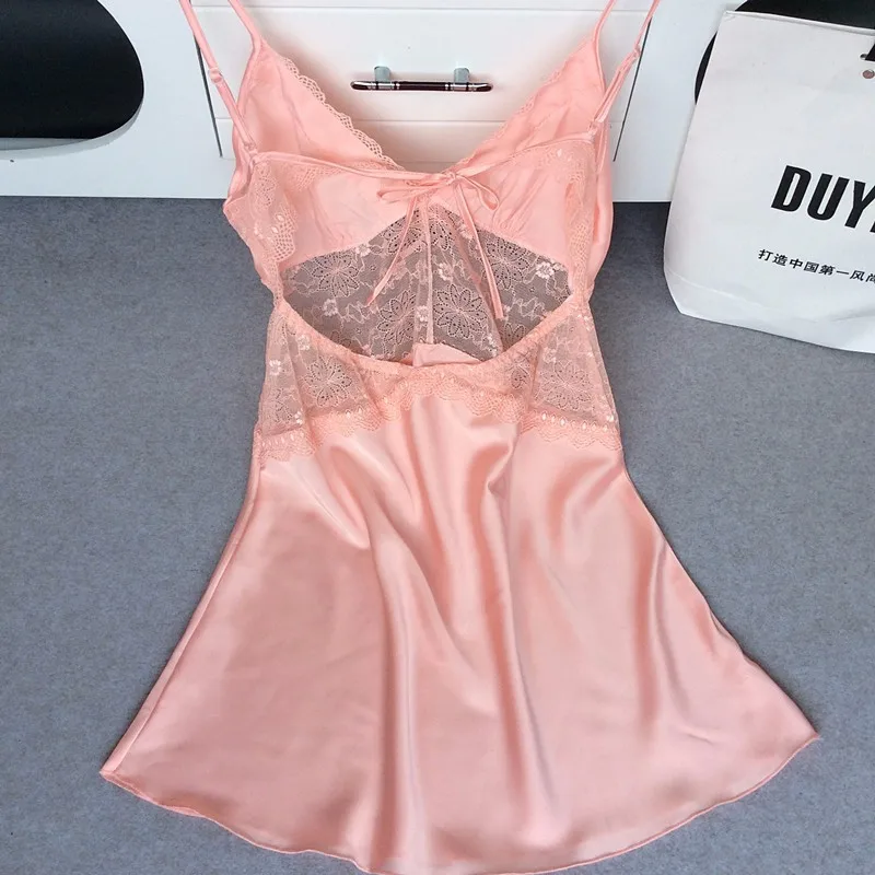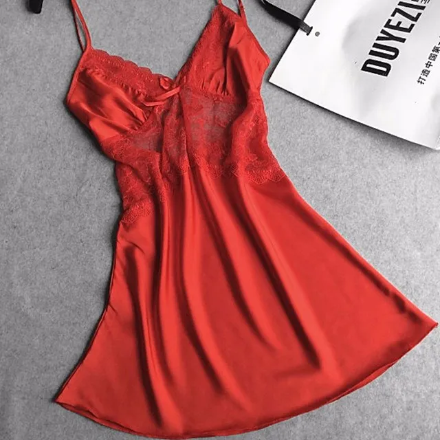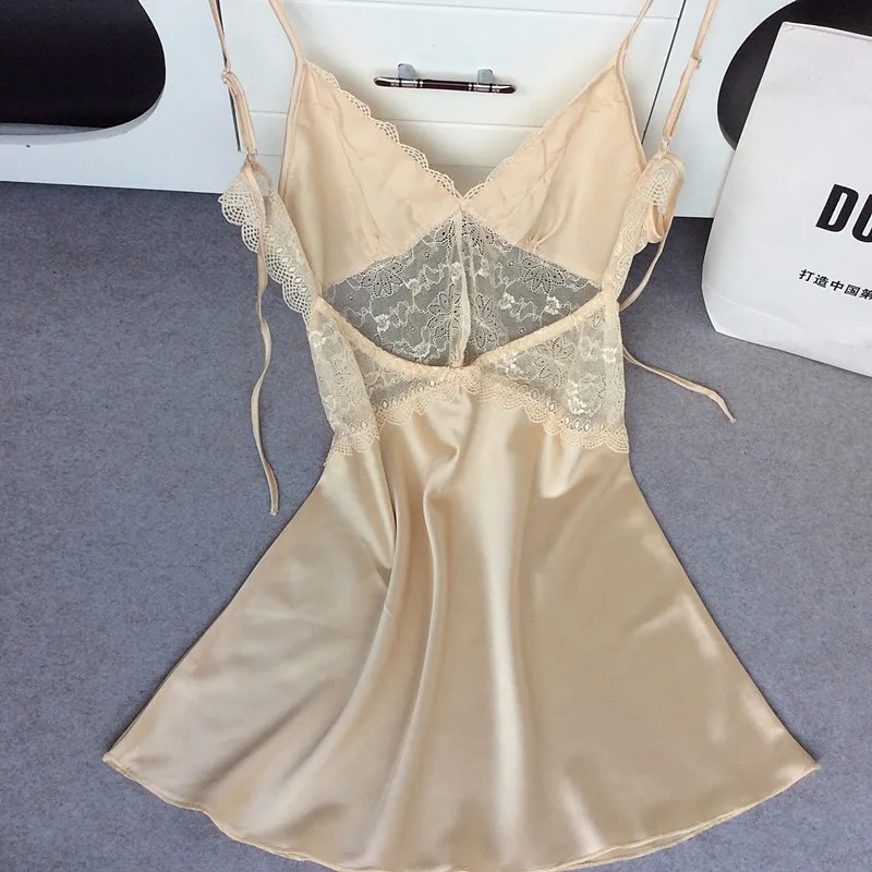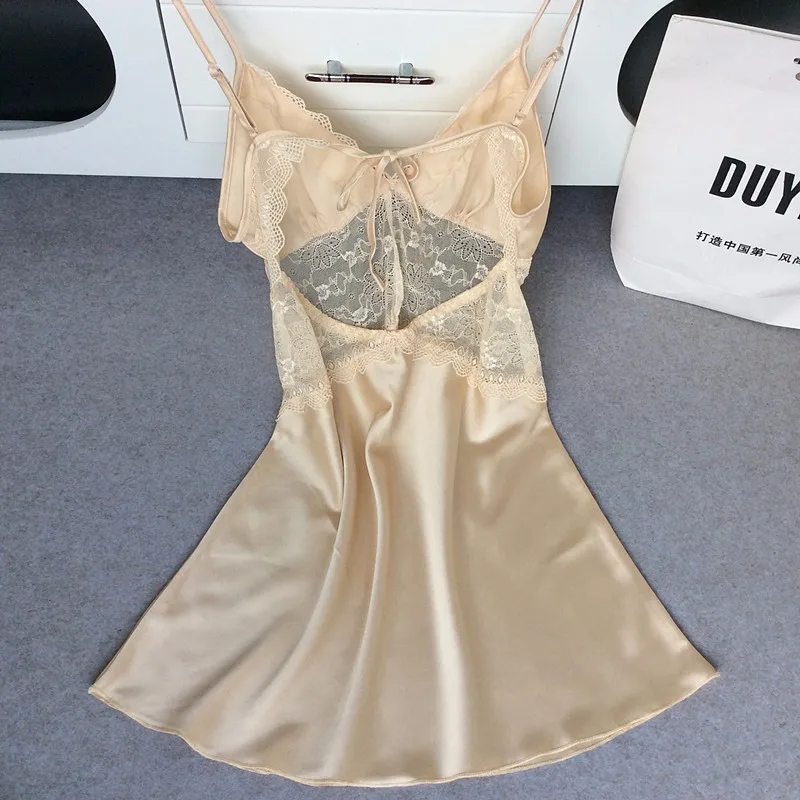 Ladies Sexy Satin Nighties Sleeveless Nightgown V-neck Night Robe Dress Lace Nightdress Women Soft Sleepshirt Nightwear Women