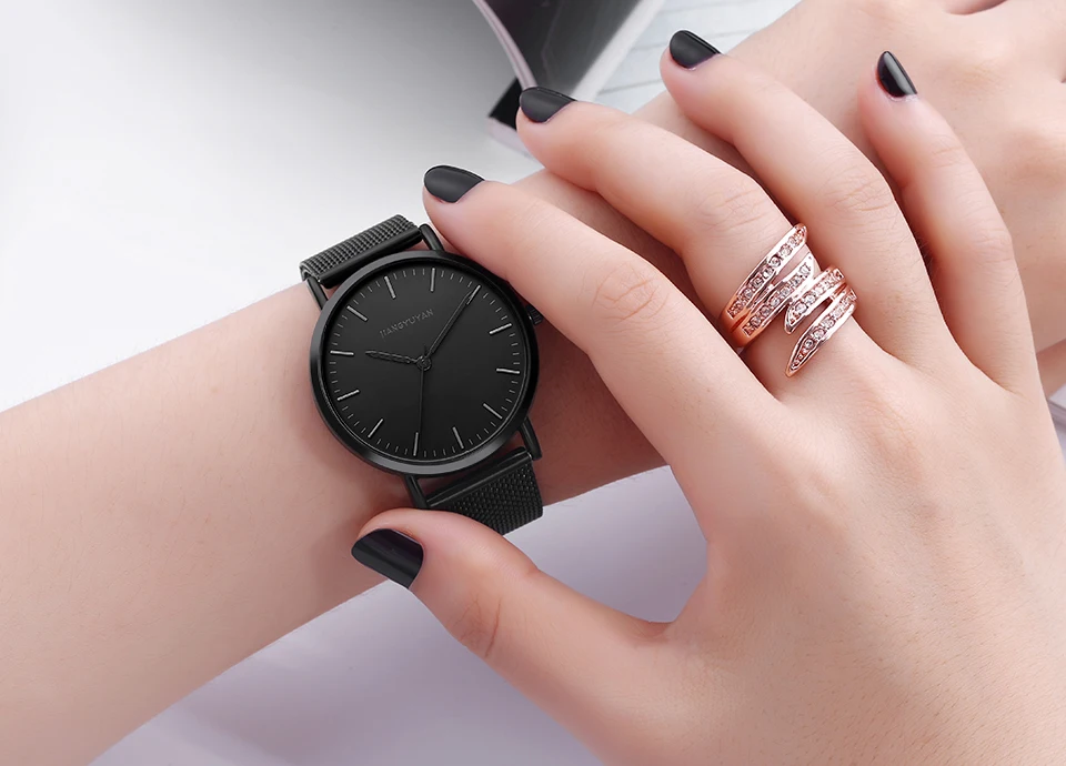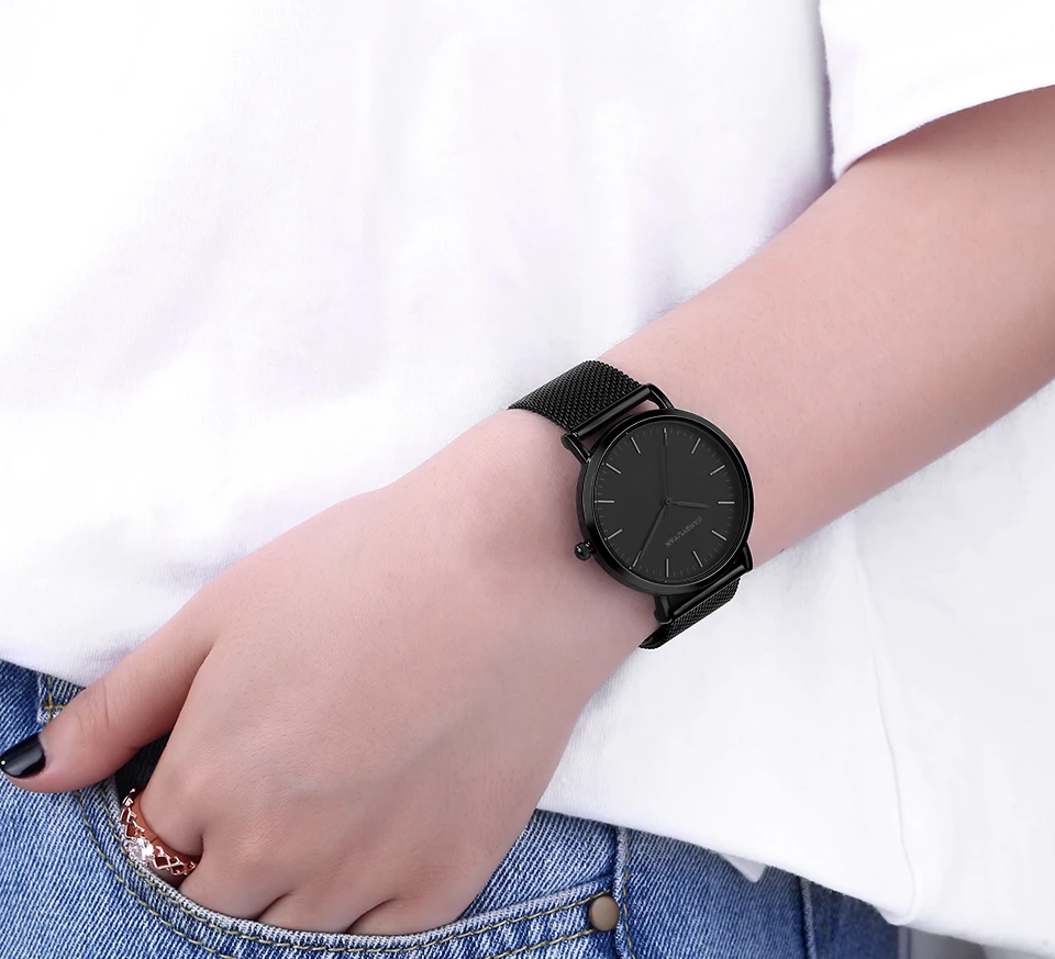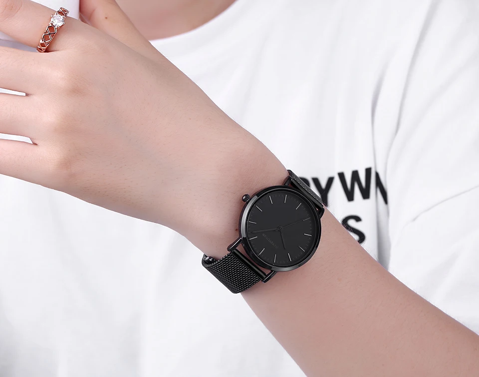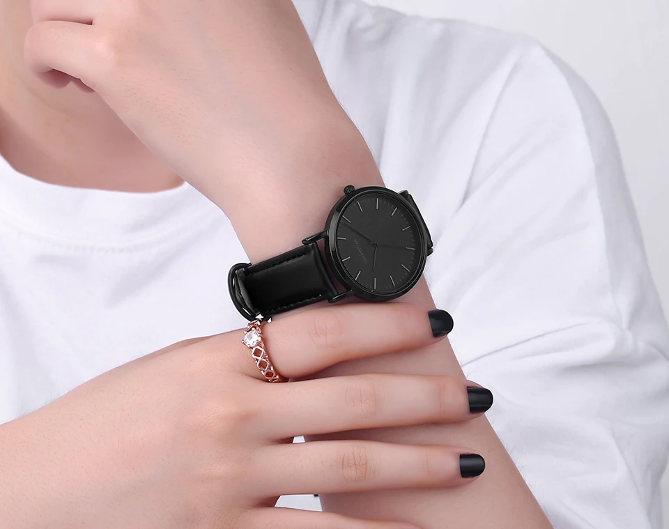 Ladies Wrist Watches Casual Waterproof Female Minimalist Watch Women Leather Bracelet Watch Black Face Whatch reloj mujer Clock