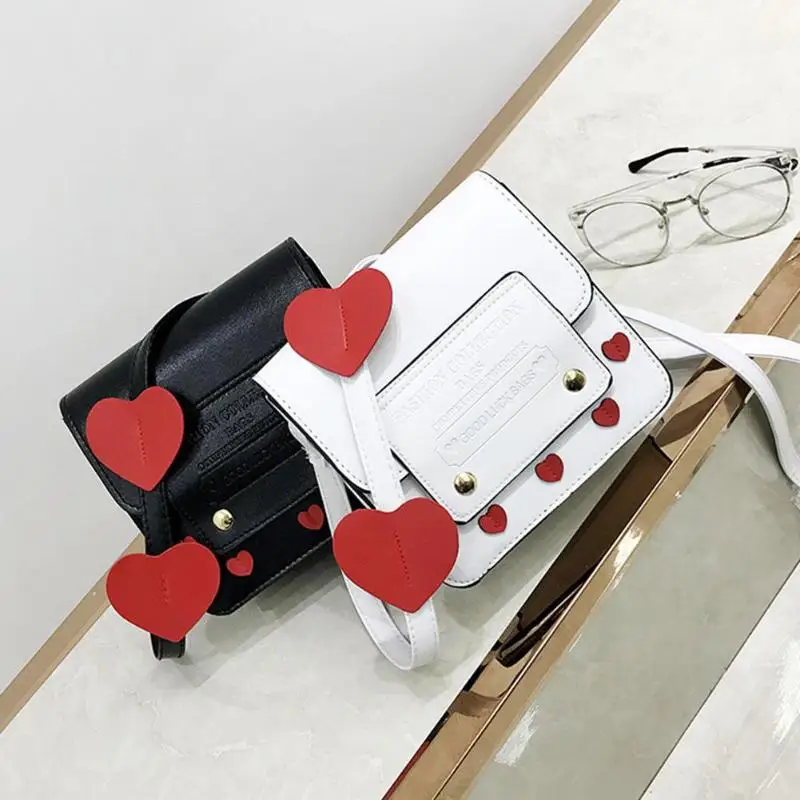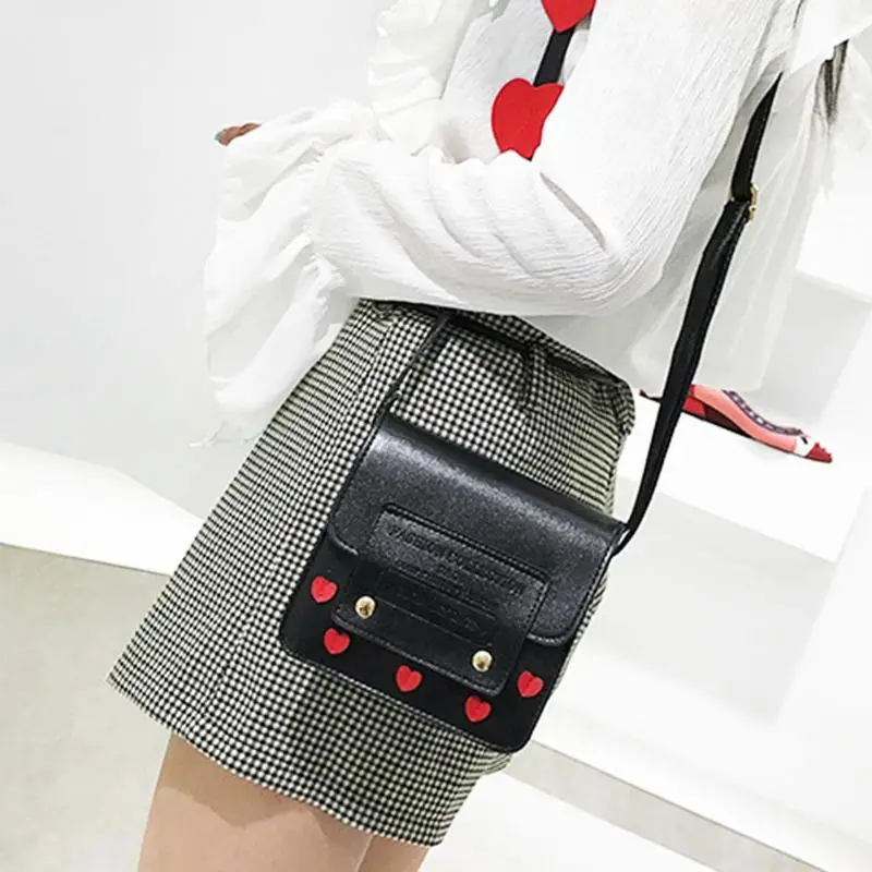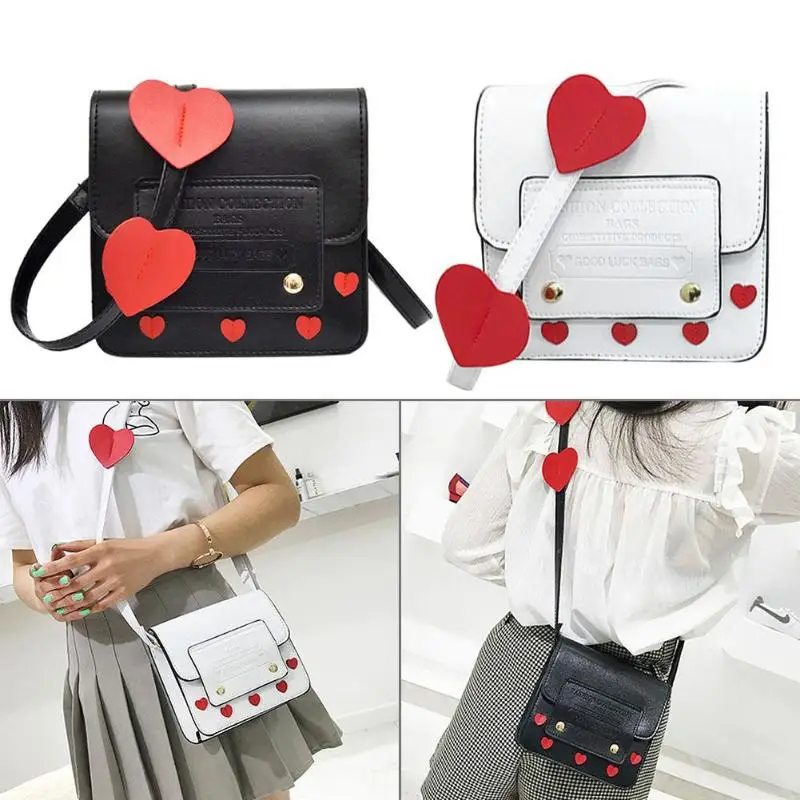 Cute Heart Women Girls Shoulder Casual Bags Simple PU Leather Sling Messenger Crossbody Bags