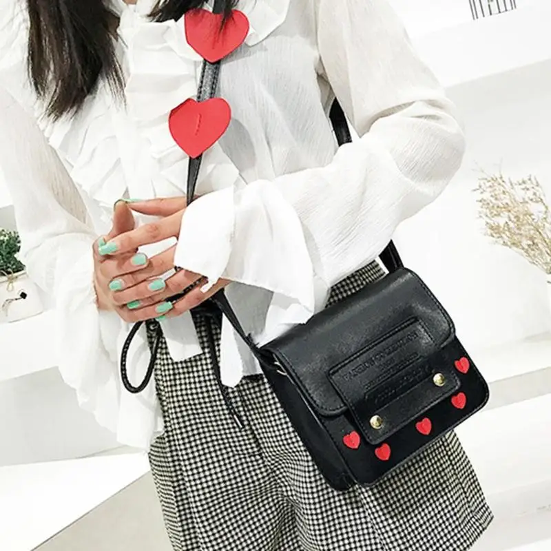 Lady Cute Heart Shoulder Bags PU Leather Crossbody Messenger Bag Women Handbag bolsos mujer