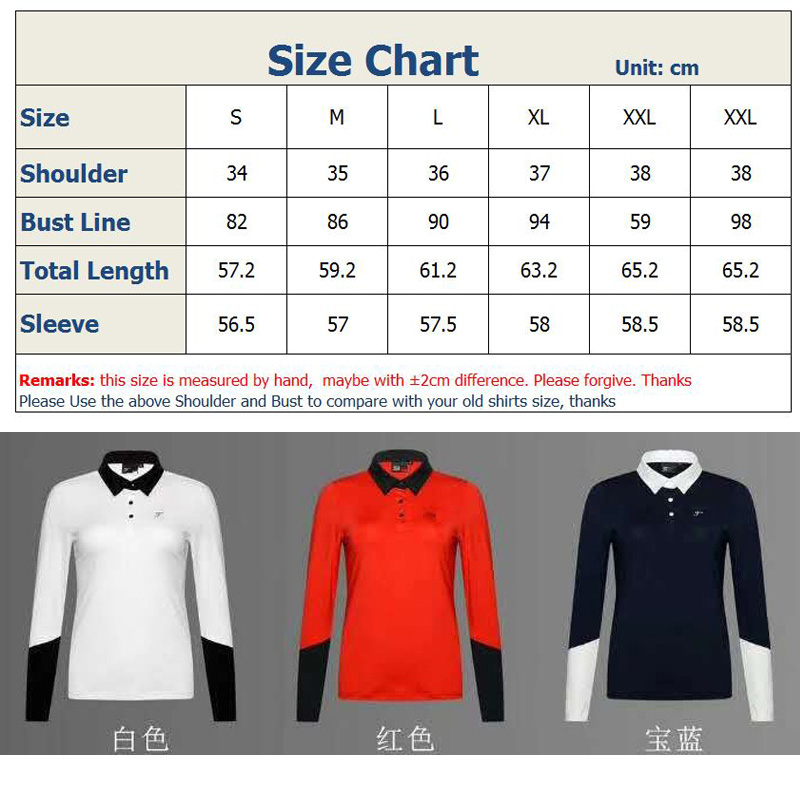 2018 Golf shirts Newest Autumn Long Sleeve Golf Aparrel Men Breathable Sport Golf Clothes Women’S Polo Shirts Tops Navy , Red, White