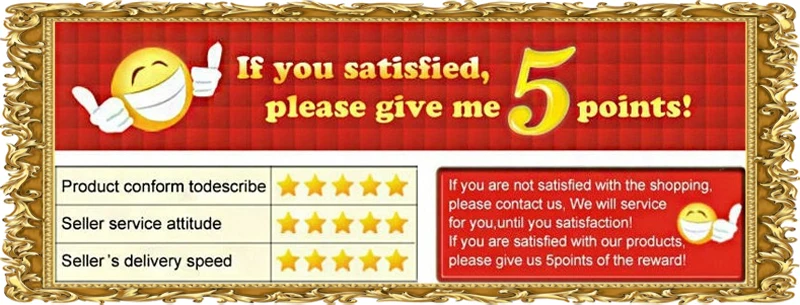 Your comment is very important in our business success. If you are satisfied with your purchase and our service, please take a minute to leave us a positive feedback with an overall Detailed Selling Rating (DSR) of 5 Star .