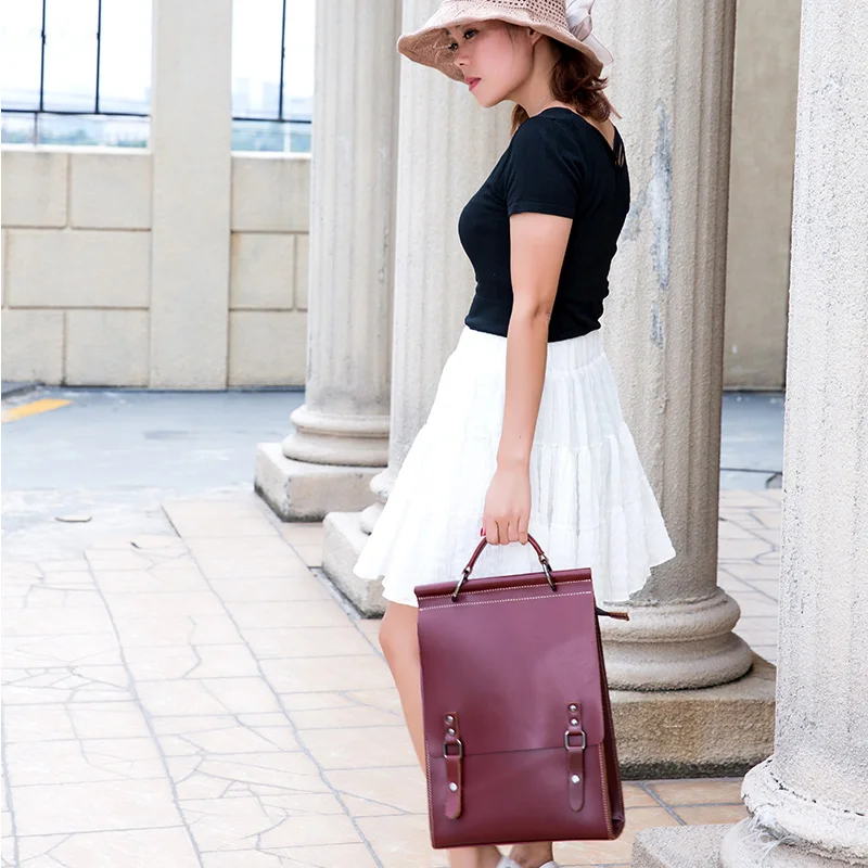 Mens leather Backpack Vintage Crazy Horse Genuine Leather Daypack High Quality cowhide Travel Rucksack School Book Bag for male fashion women Laptop Shoulder Bag