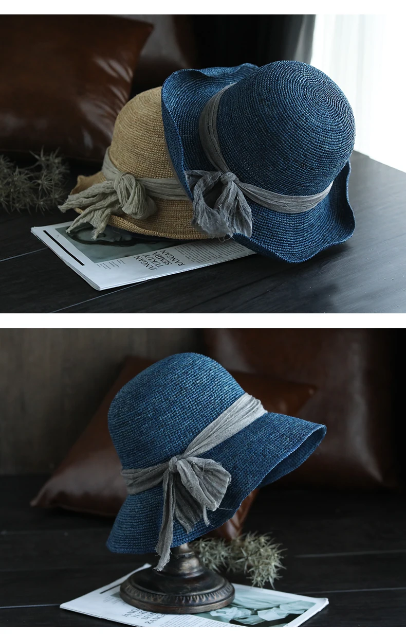 Lafite straw hat female summer sun visor Korean version of the personality retro sun hat collapsible fisherman hat wild tide 186
