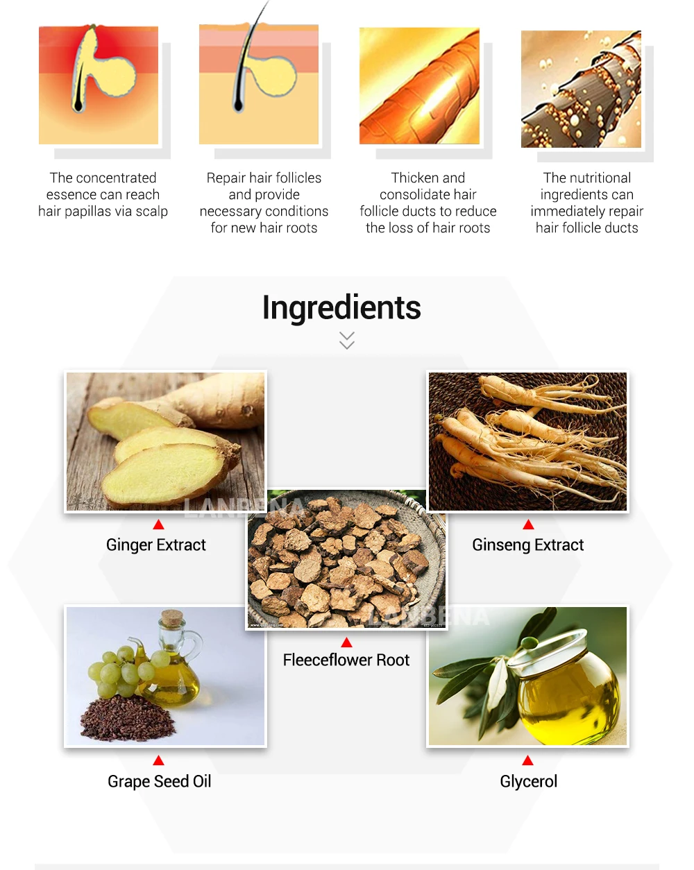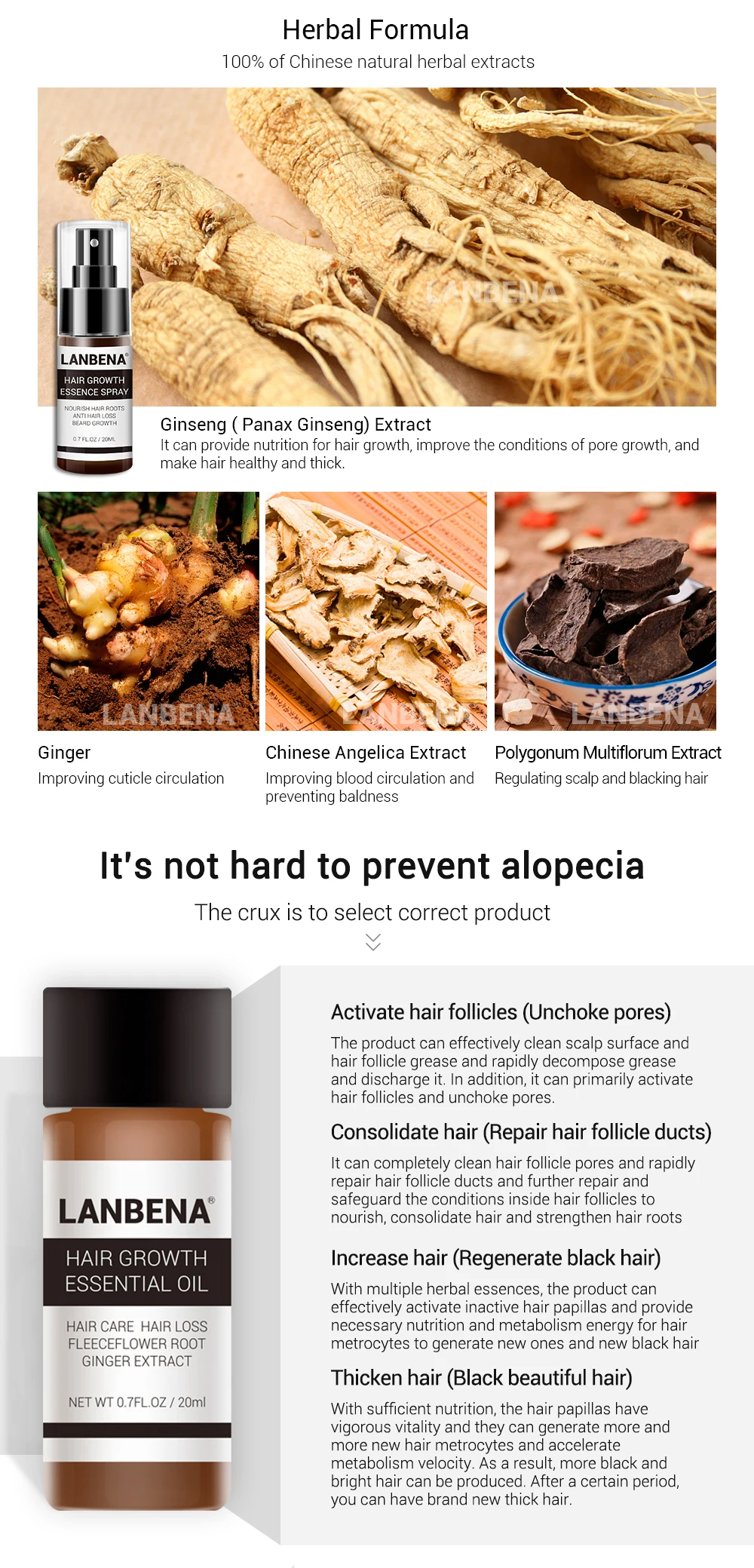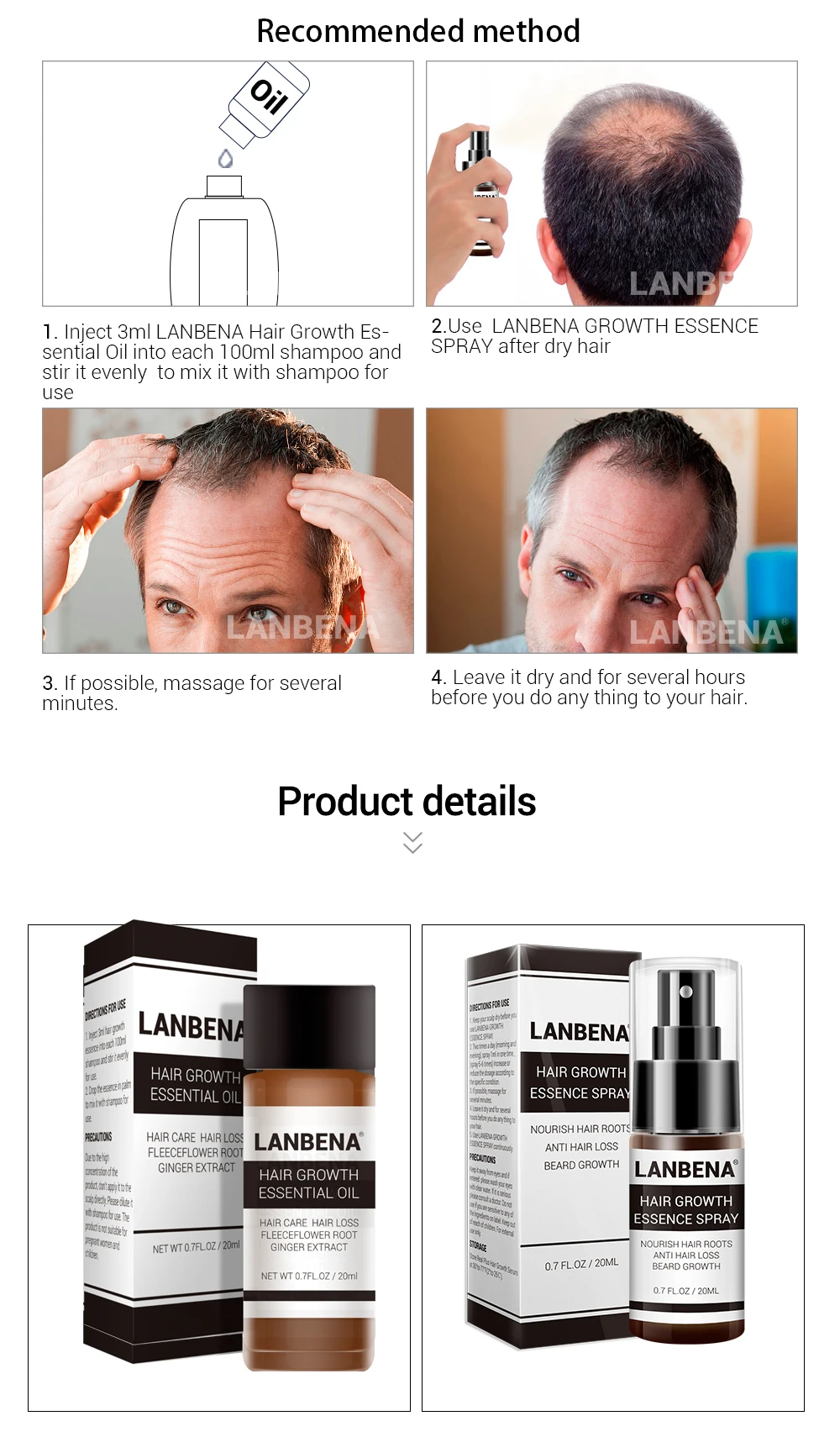 LANBENA Fast Powerful Hair Growth Essence+Spray 2PCS Preventing Baldness Consolidating Anti Hair Loss Nourish Roots Hair Care