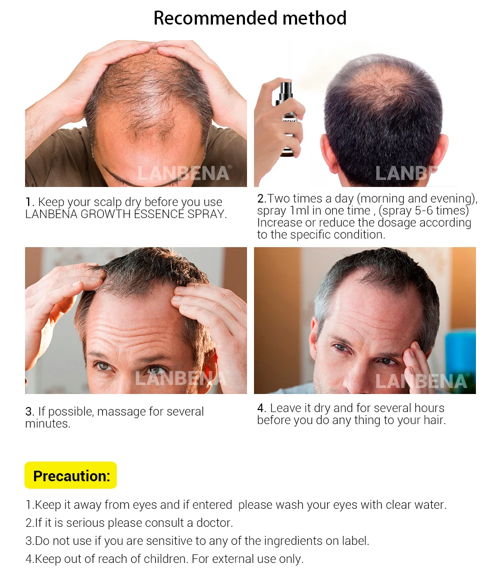 1. Keep your scalp dry before you use LANBENA GROWTH ESSENCE SPRAY.