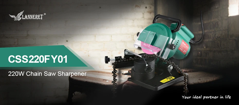 220W Chain Saw Sharpener The LANNERET CSS220FY01 Chain Saw Sharpener , It has strong filing capacities and the time to grind is shorter. Its long lifespan reduces the quantity for file needed.Its normal grinding work can be finished just only slightly file twice or three ties which protects saw and extends lifespan.