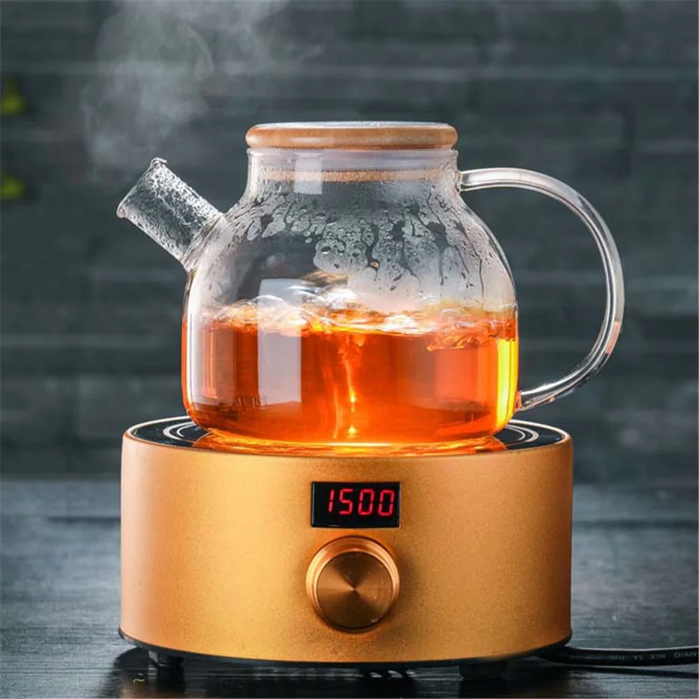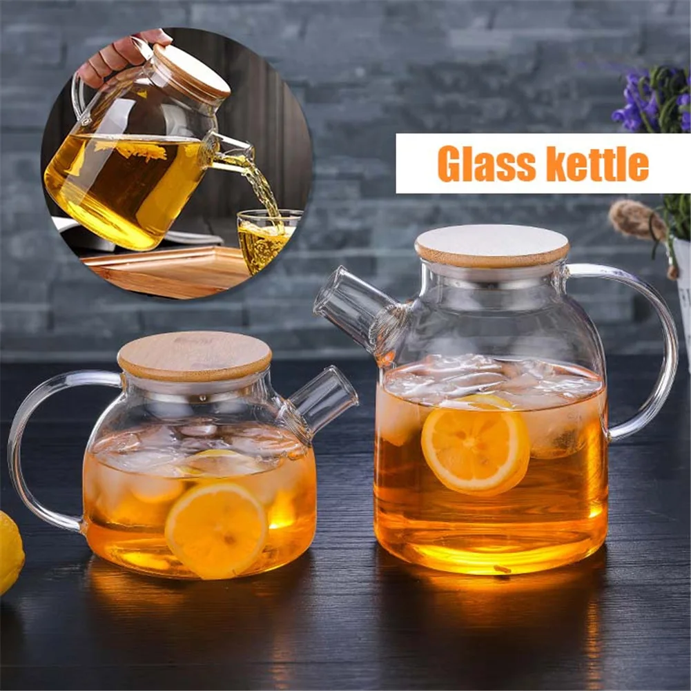 Heat-Resistant Borosilicate Glass Tea Kettle Hot & Cold Resistant Dual Use Bamboo Tea Pot