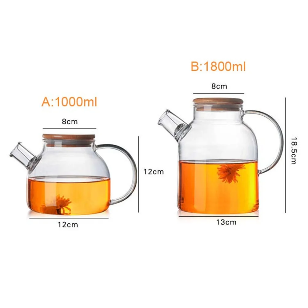 Large Capacity Drinkware 1000ml/1800ml Glass Teapot Flower Tea Pot Kettle With Bamboo Lid
