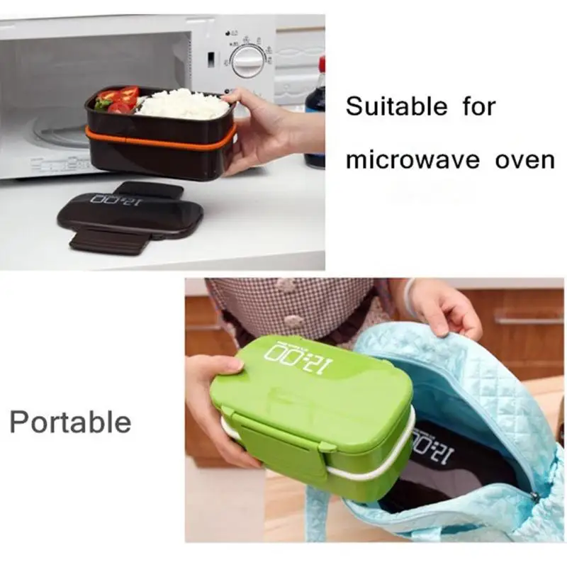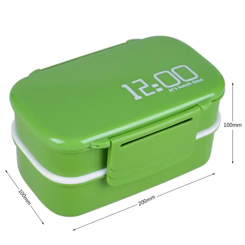 1400ml Double Layer Portable Food Containers Microwave Lunch Box with Spoon Fork