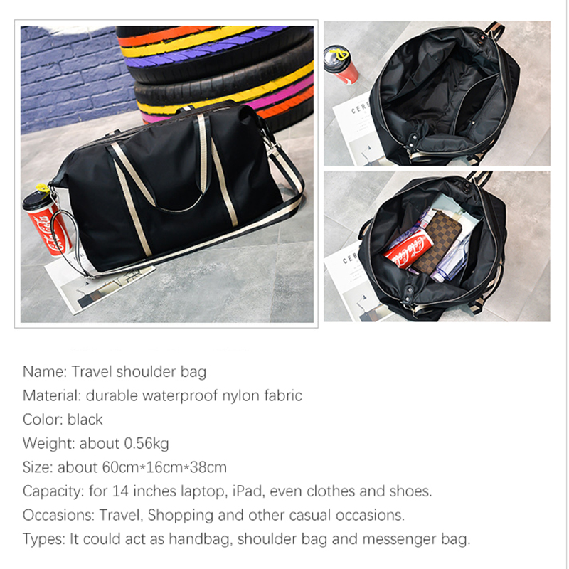 Name: Large Capacity Travel shoulder Bag Waterproof Nylon Unisex Messenger Bag with Adjustable Belt Portable Black Handbag Durable Tote Bags