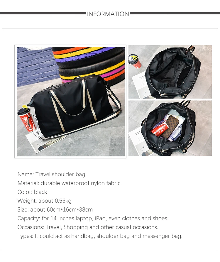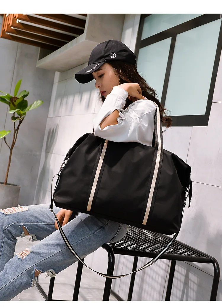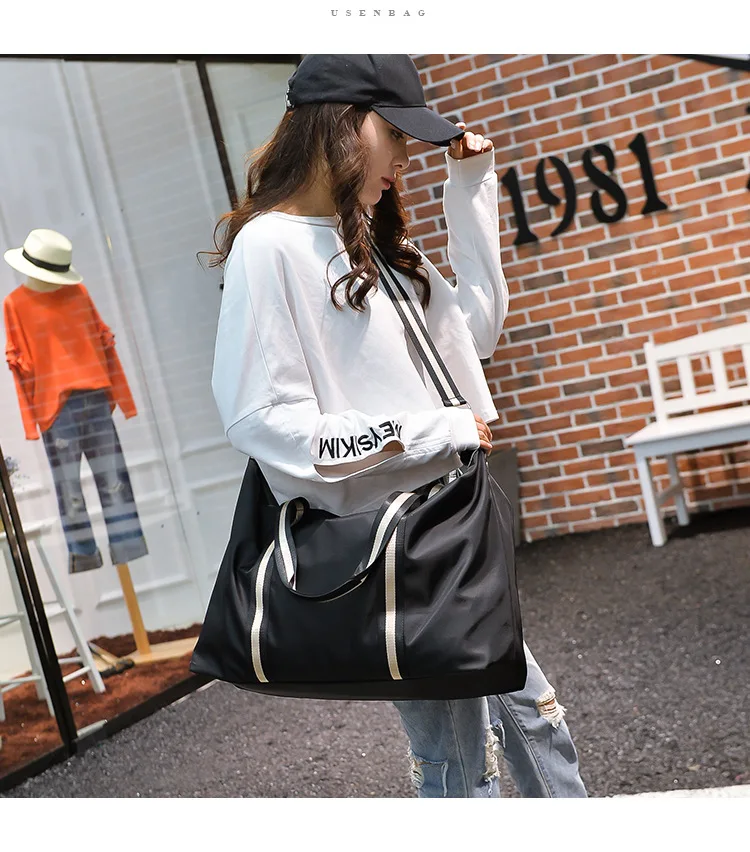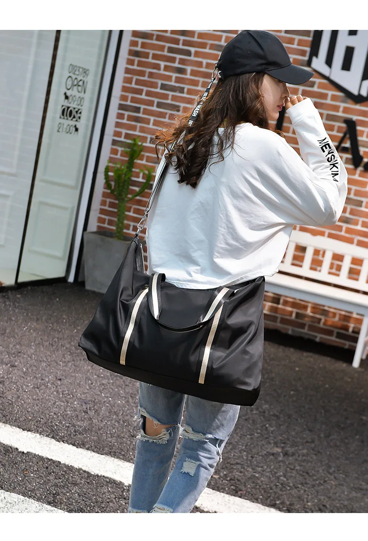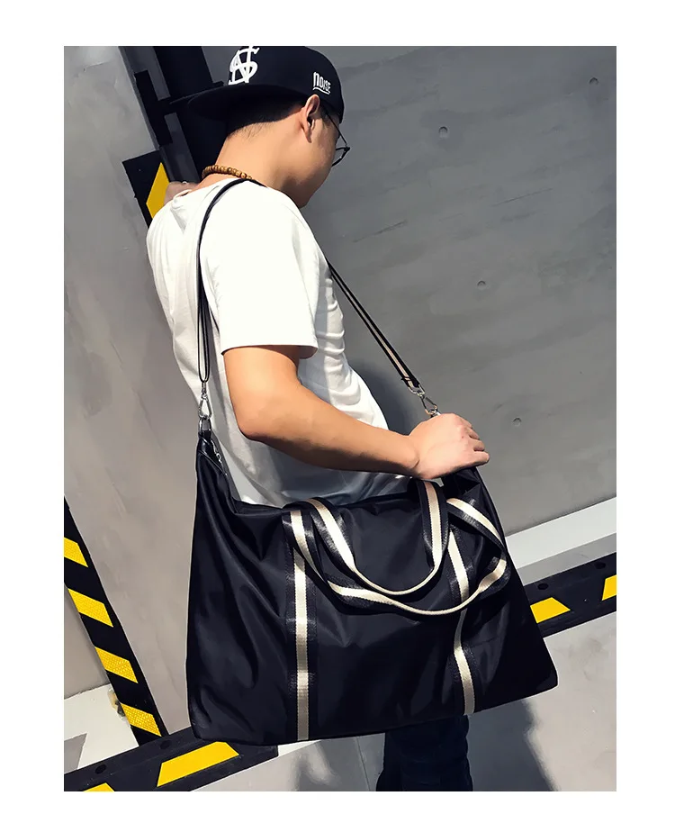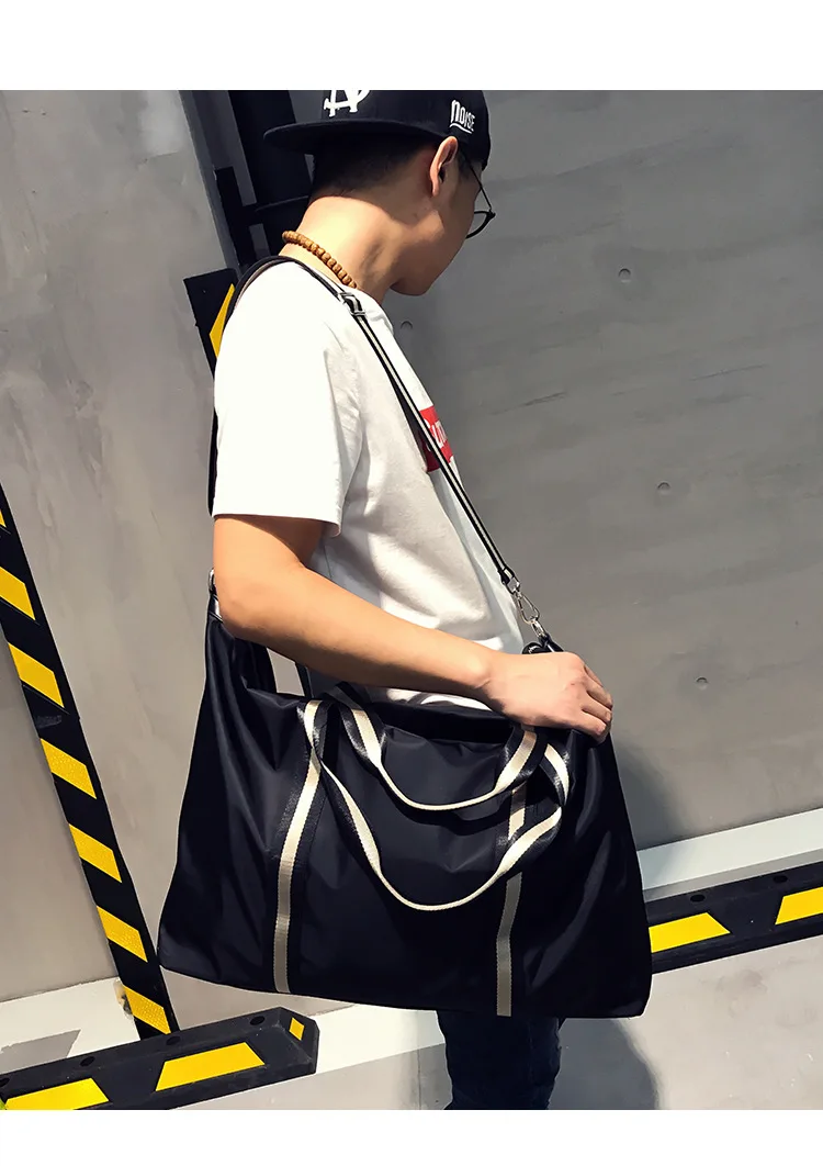 Name: Large Capacity Travel shoulder Bag Waterproof Nylon Unisex Messenger Bag with Adjustable Belt Portable Black Handbag Durable Tote Bags