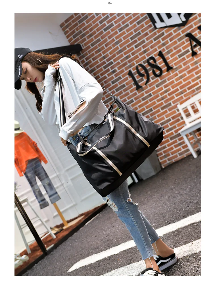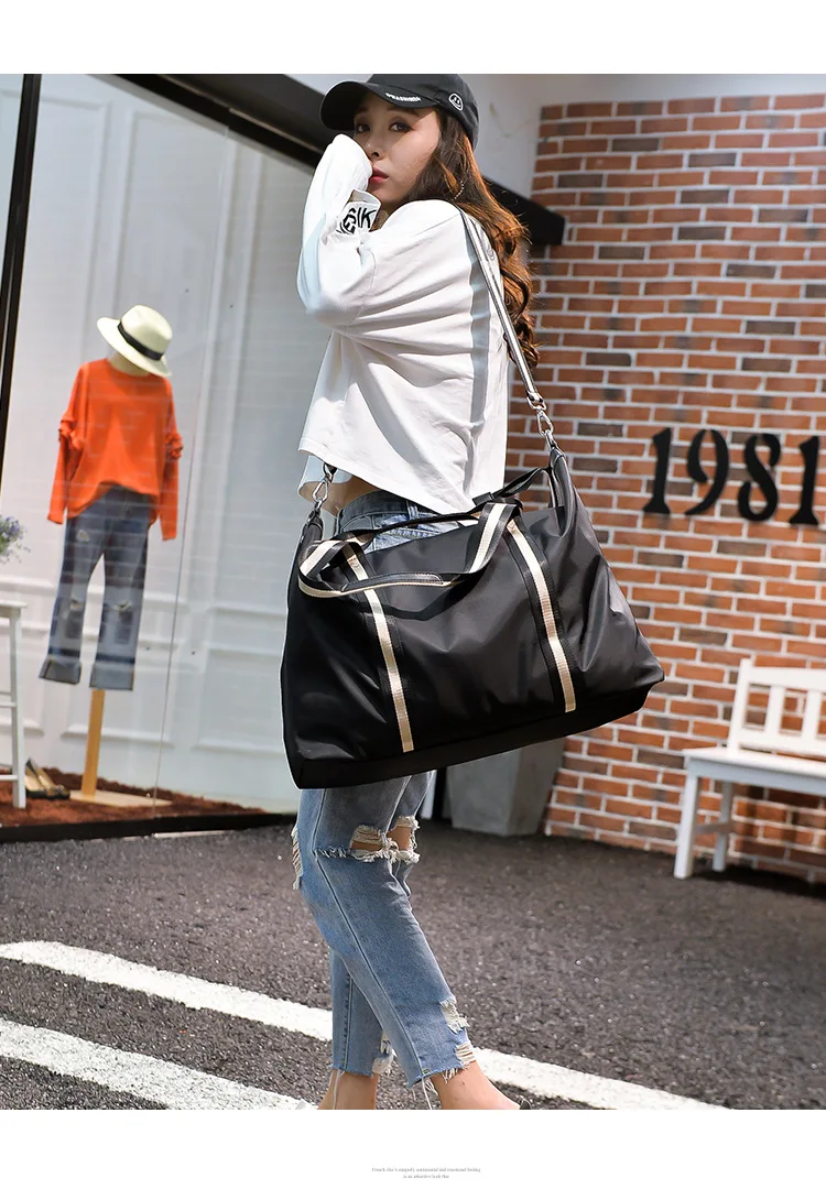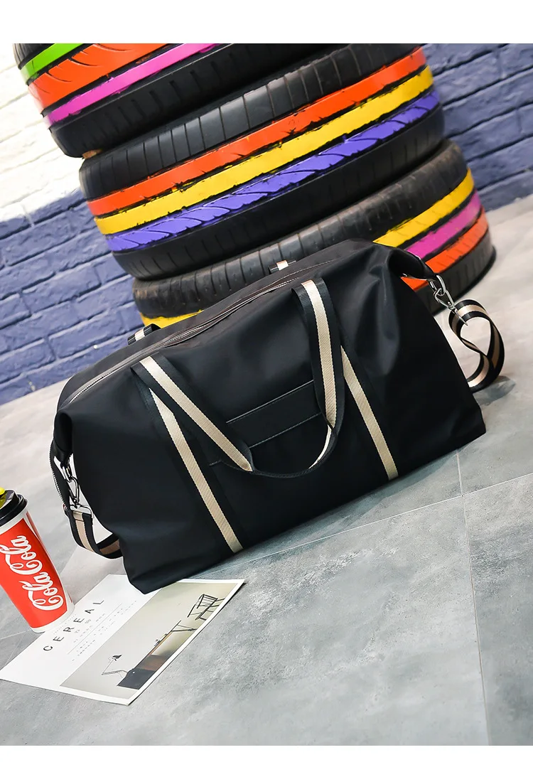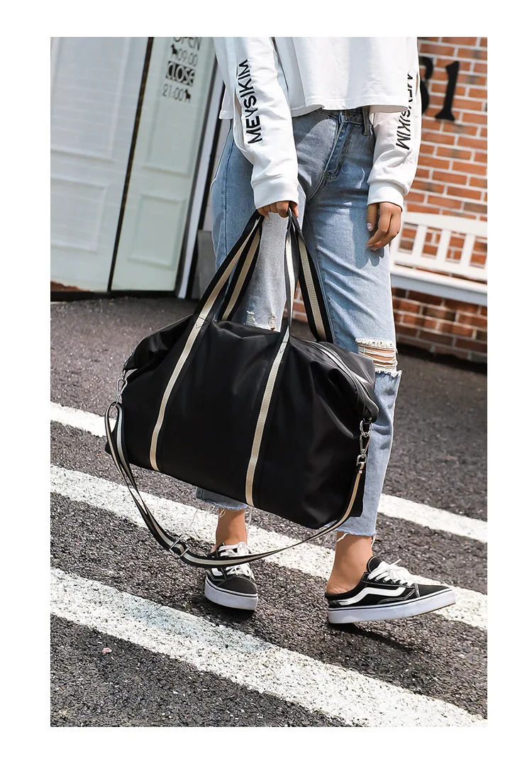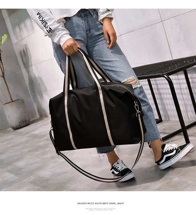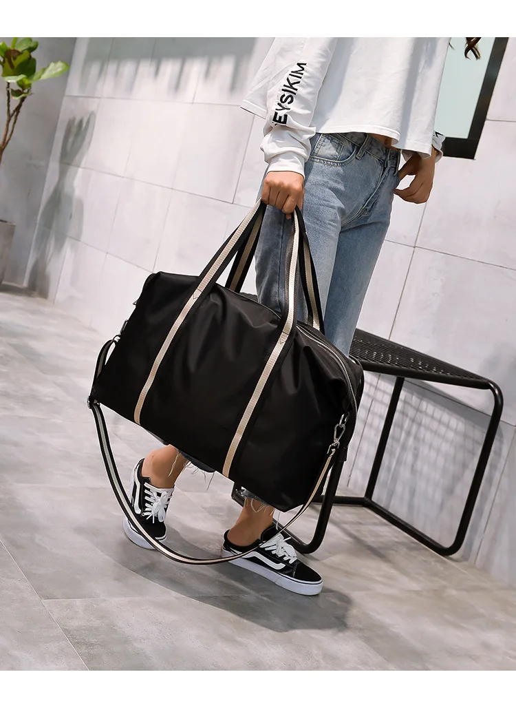 Name: Large Capacity Travel shoulder Bag Waterproof Nylon Unisex Messenger Bag with Adjustable Belt Portable Black Handbag Durable Tote Bags