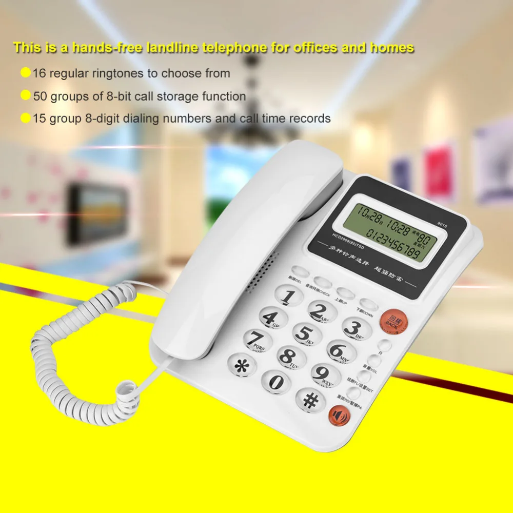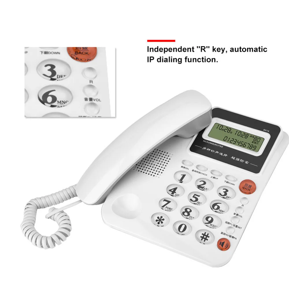 2. 50 groups of 8-bit call storage function. Turn up and down the key to check the incoming and outgoing calls, convenient life is a necessary telephone for home office.