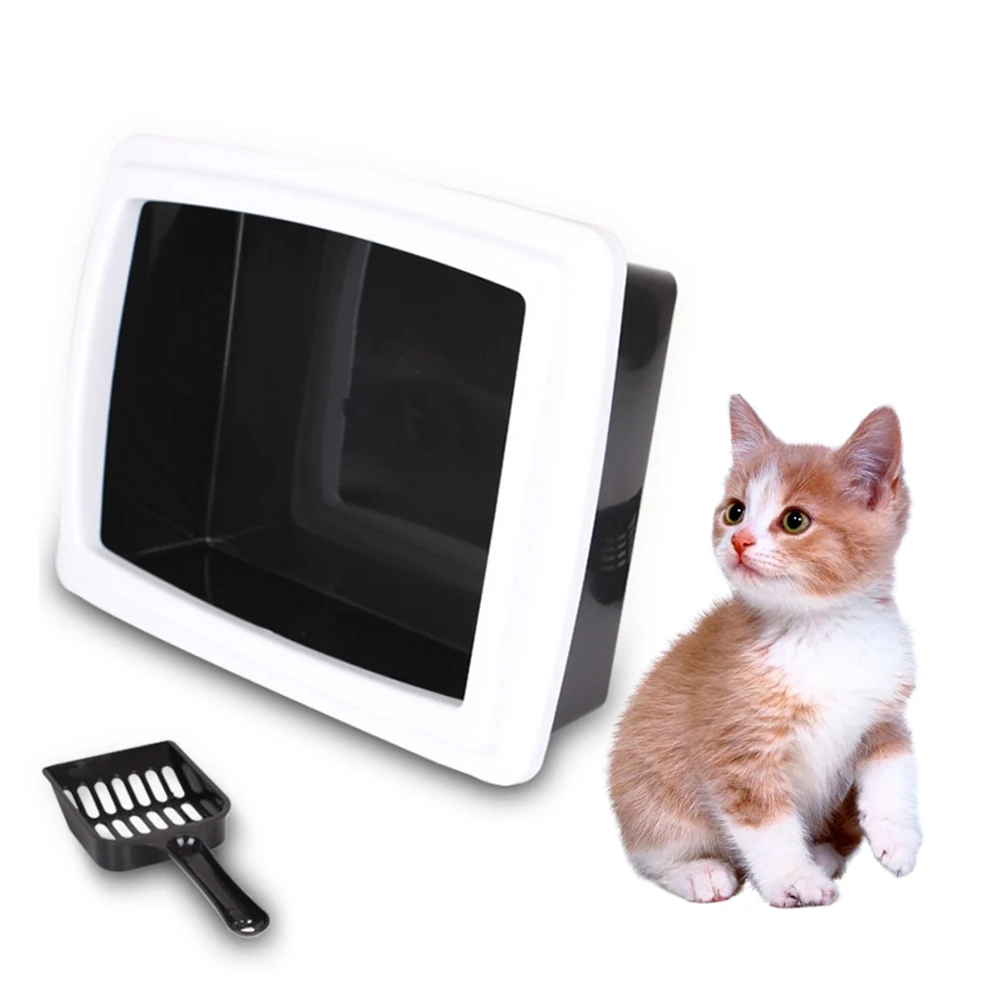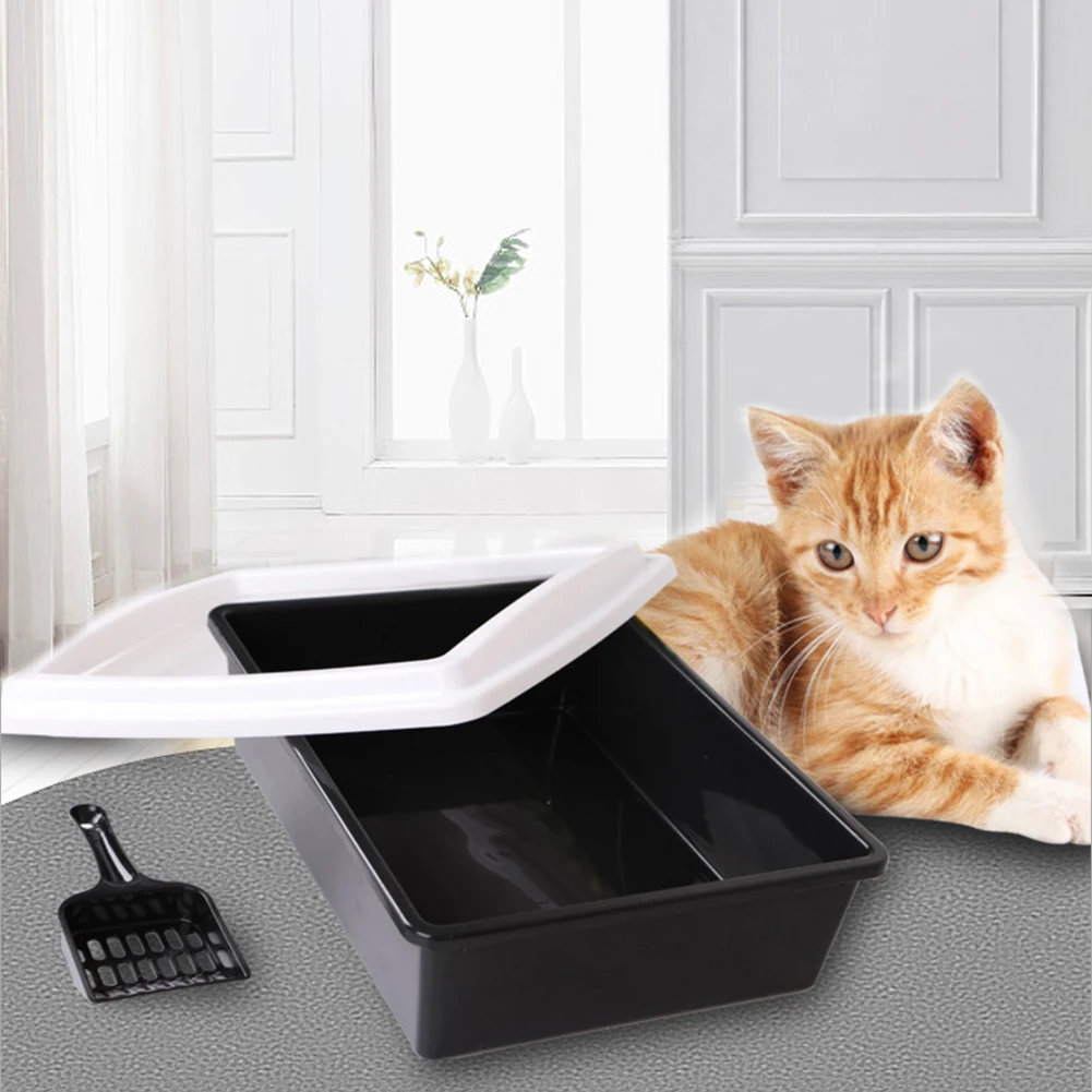 large space cat litter tray: removable and can be washed, equipped with cat litter shovel for free.