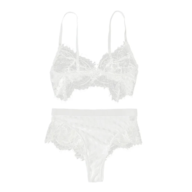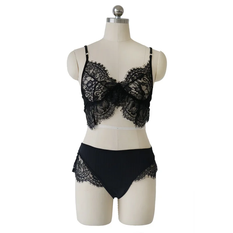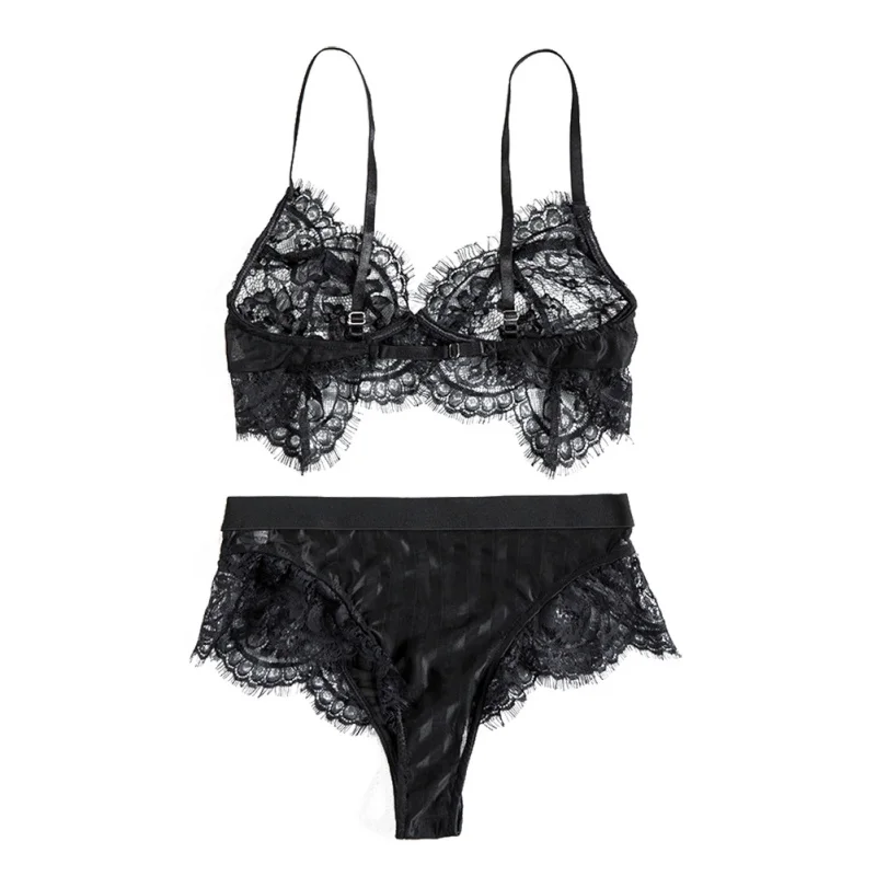 Lash Lace Perspective Sexy Bra Set Plus Size Solid Transparent Push Up Bra Sets Women Underwear Lingerie Set Striped Briefs