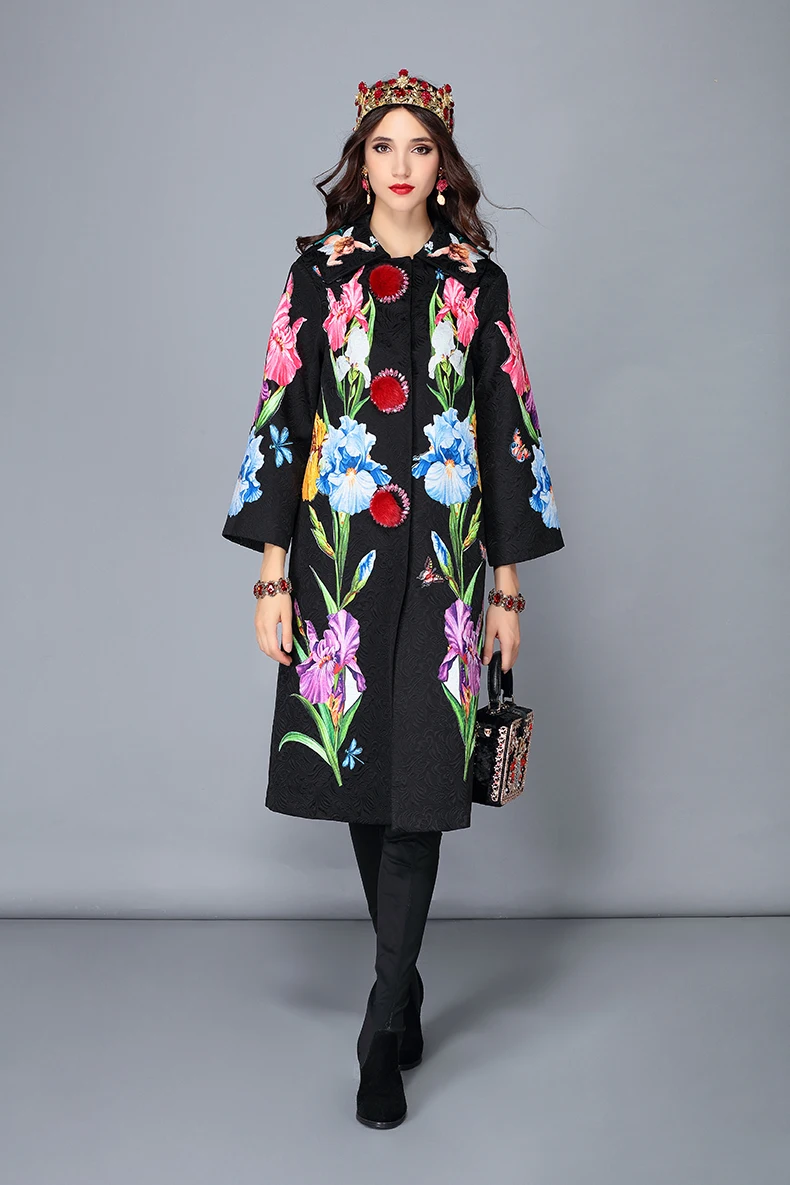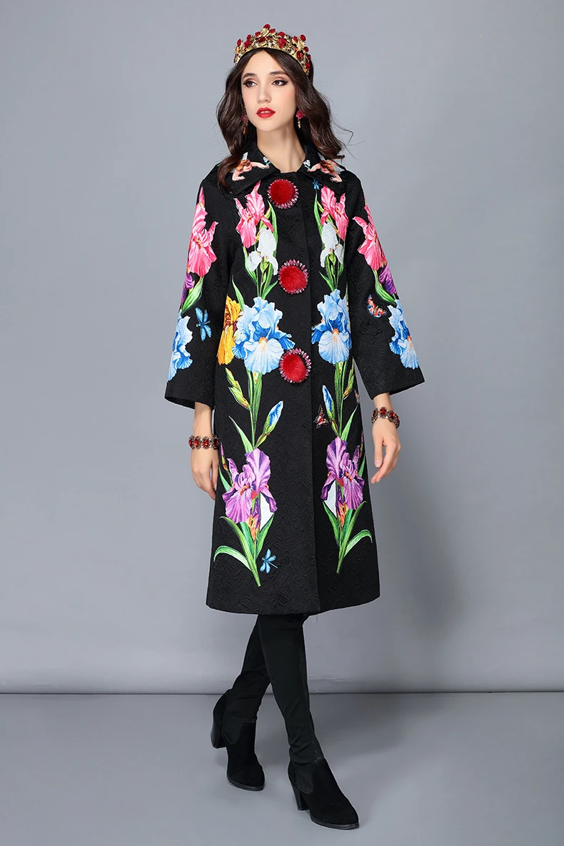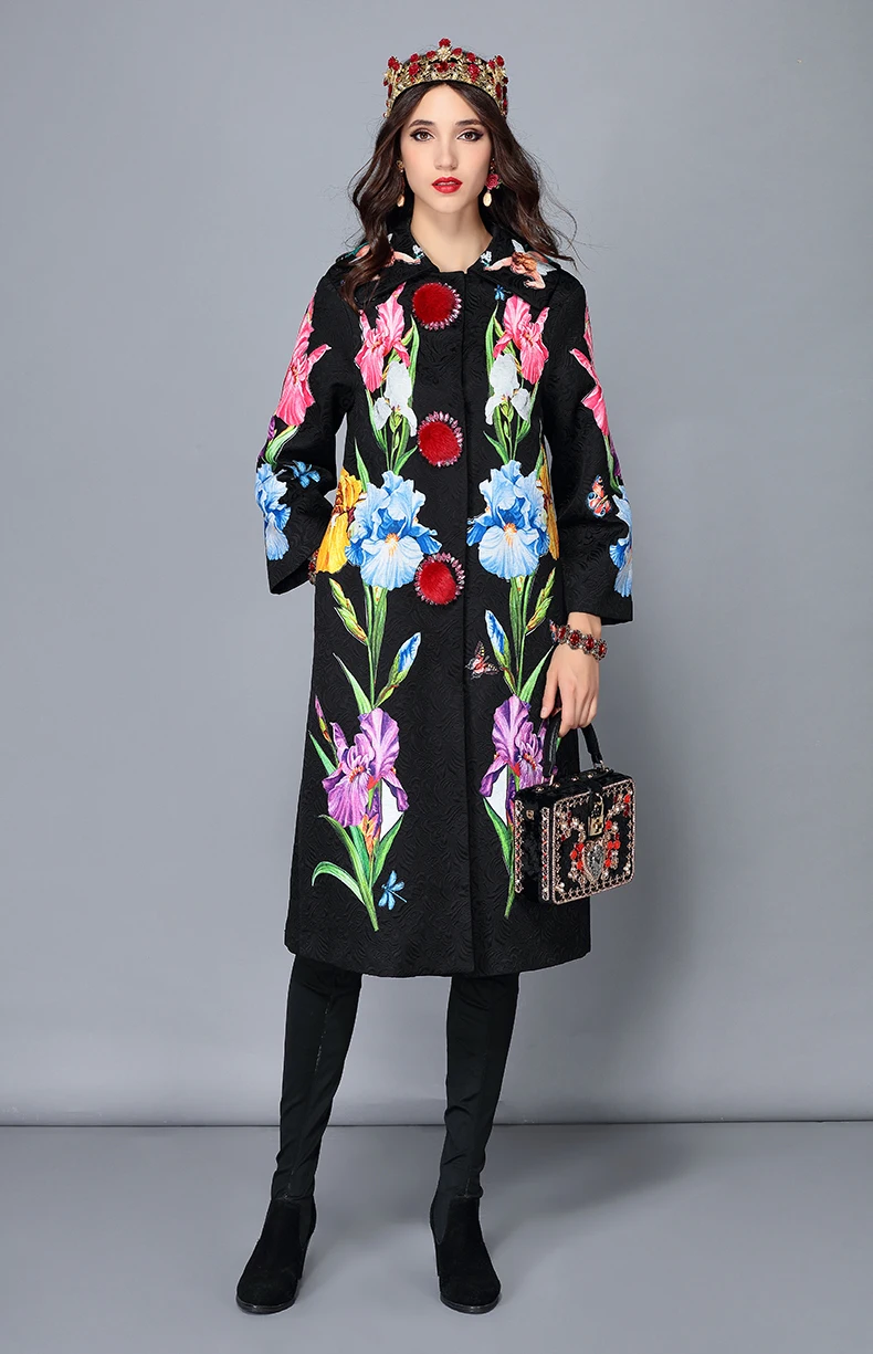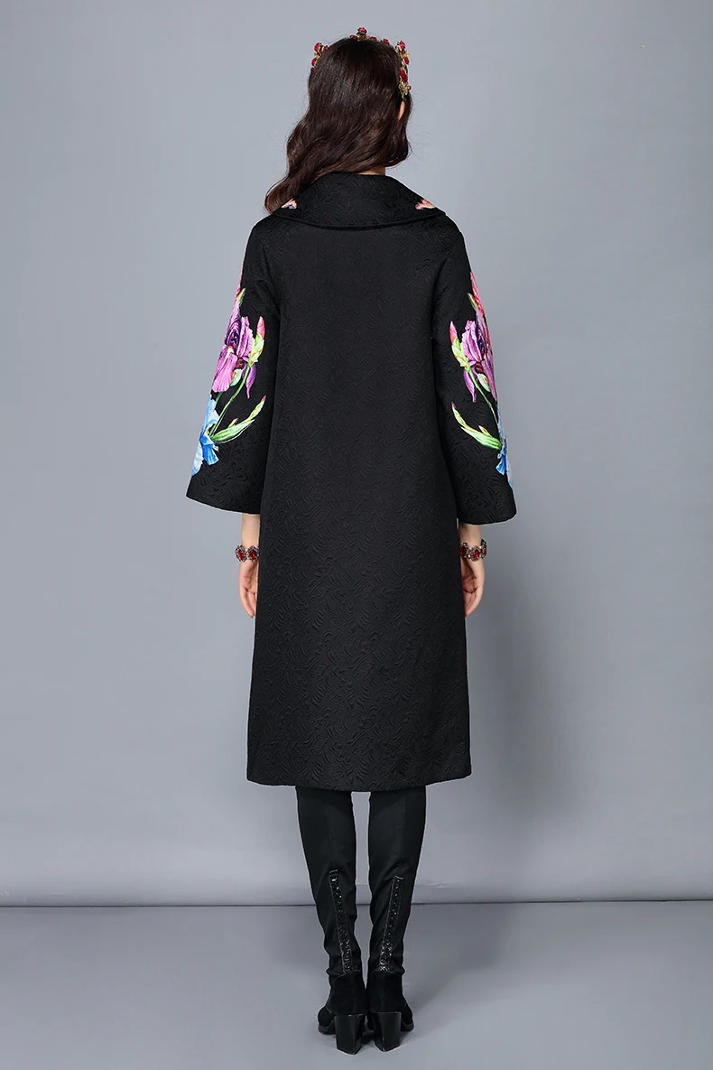 LD LINDA DELLA 2018 New Autumn Winter Coats female Women’s Flower Floral Jacquard Vintage Warm Long Coat Outerwear overcoat